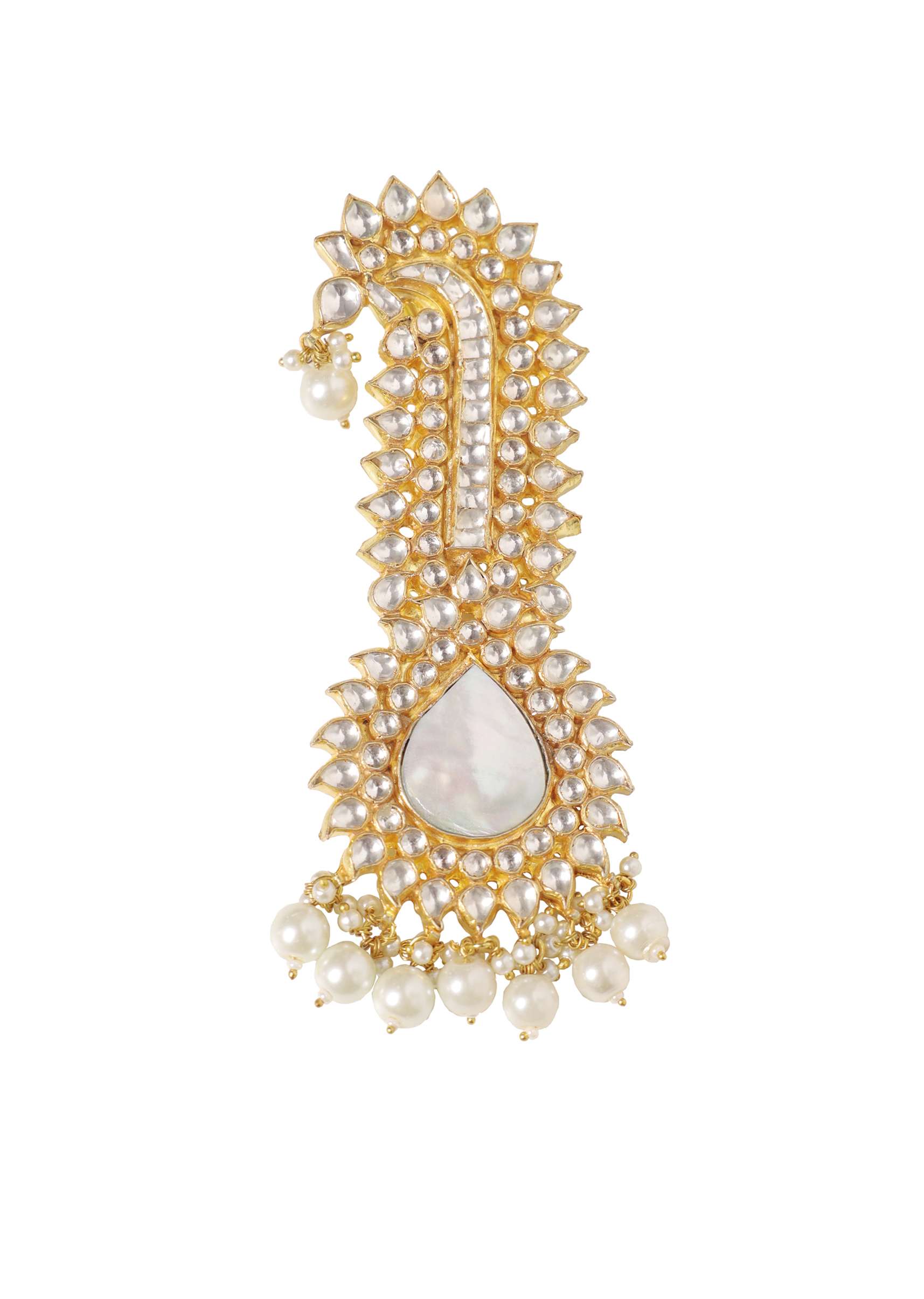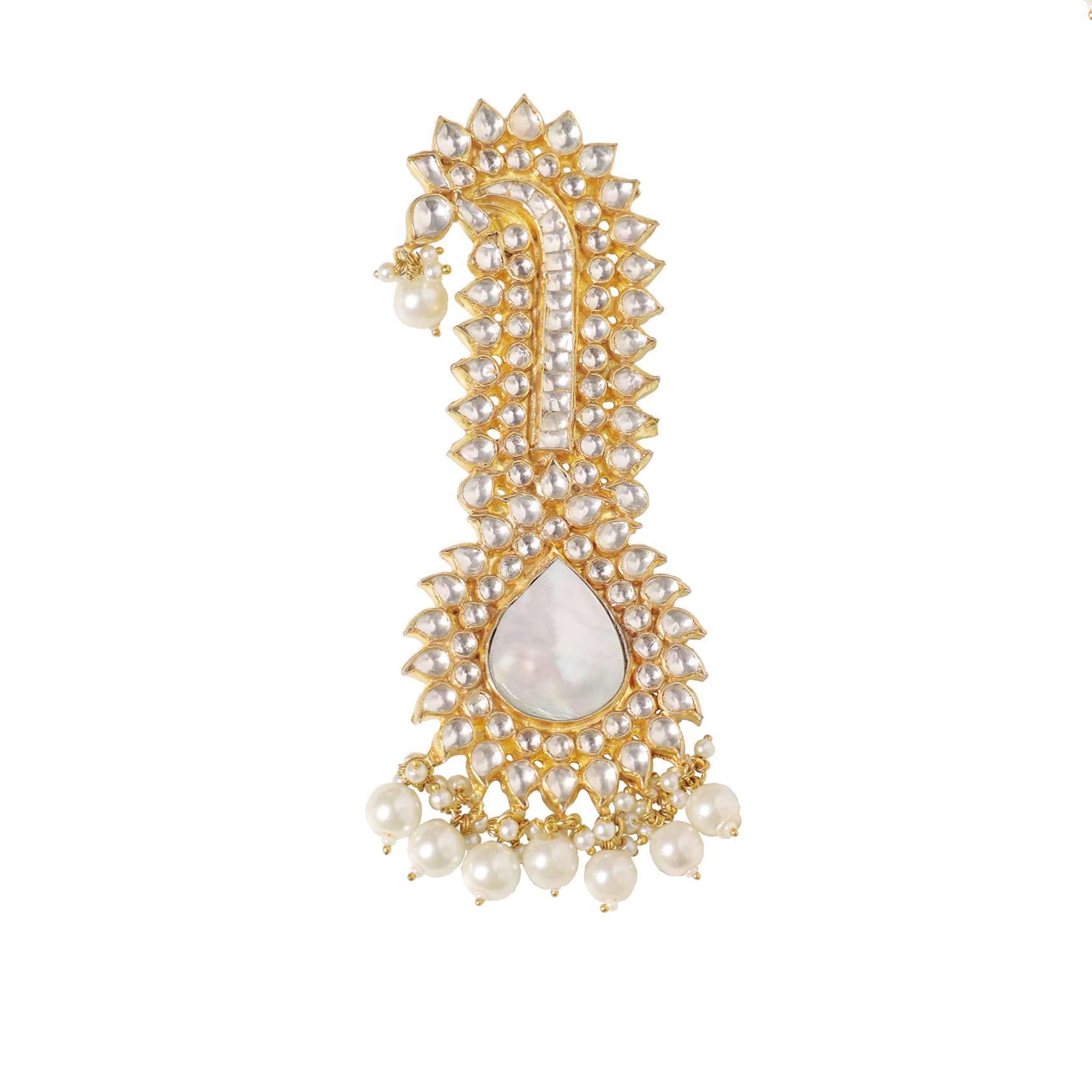 Gold Finish Kundan Kalgi In Mix Metal With A White Stone