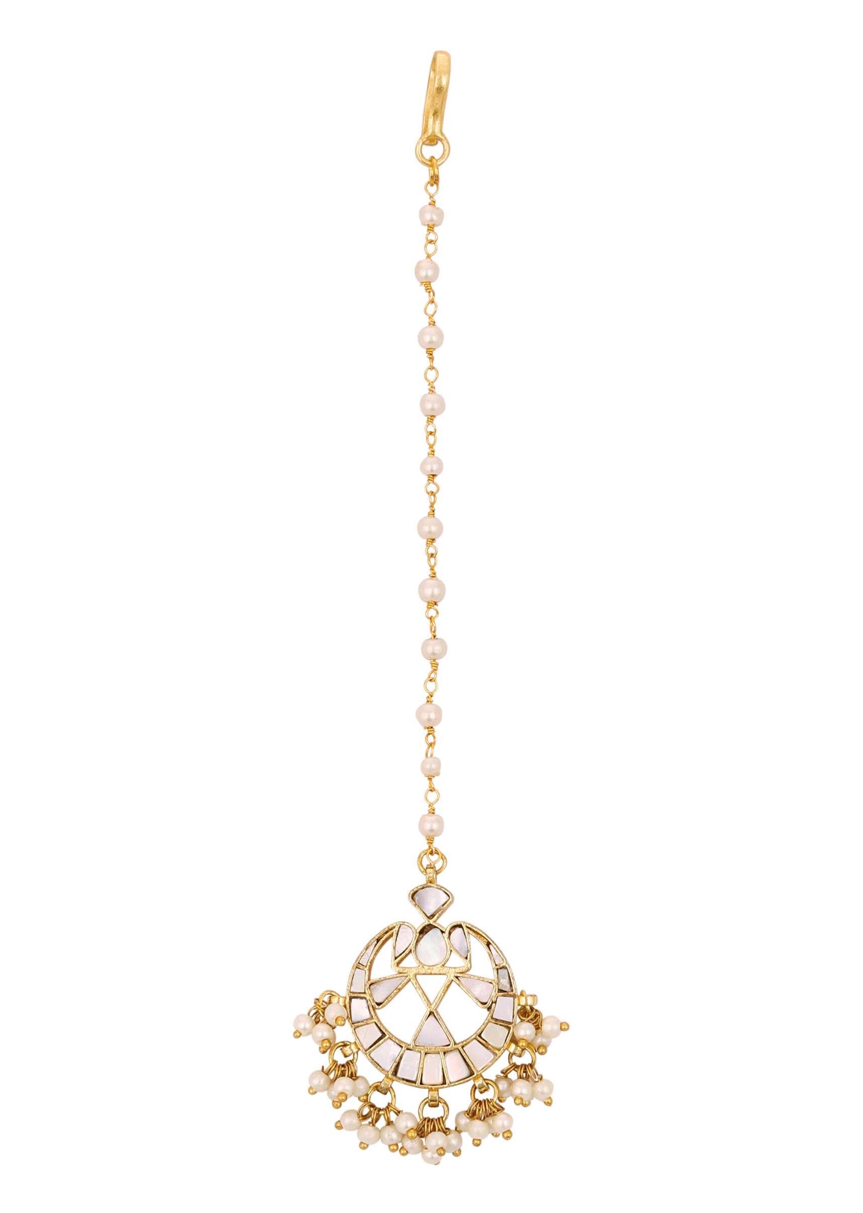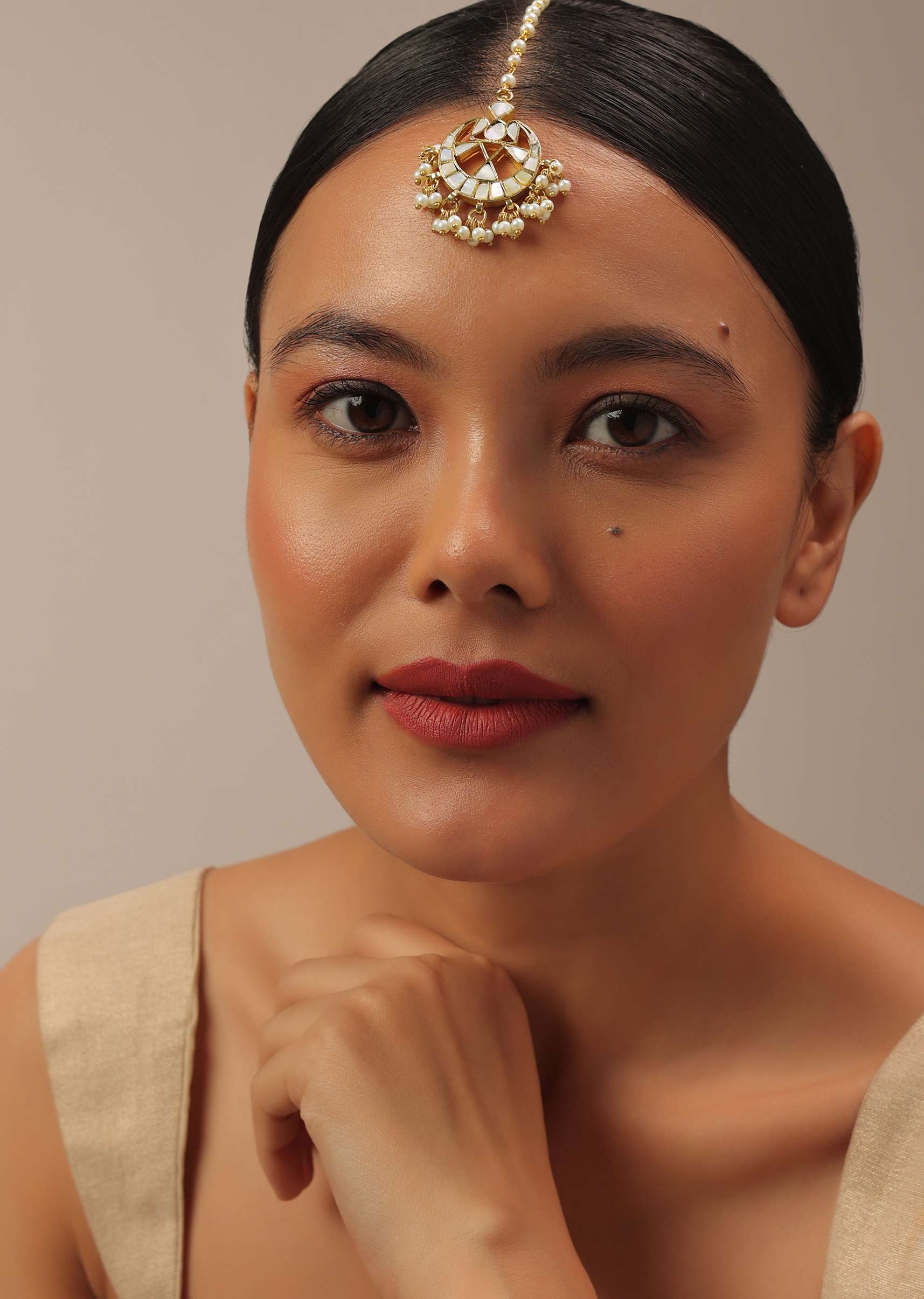 Gold Finish Kundan Maangteeka With Synthetic Stones And Beads