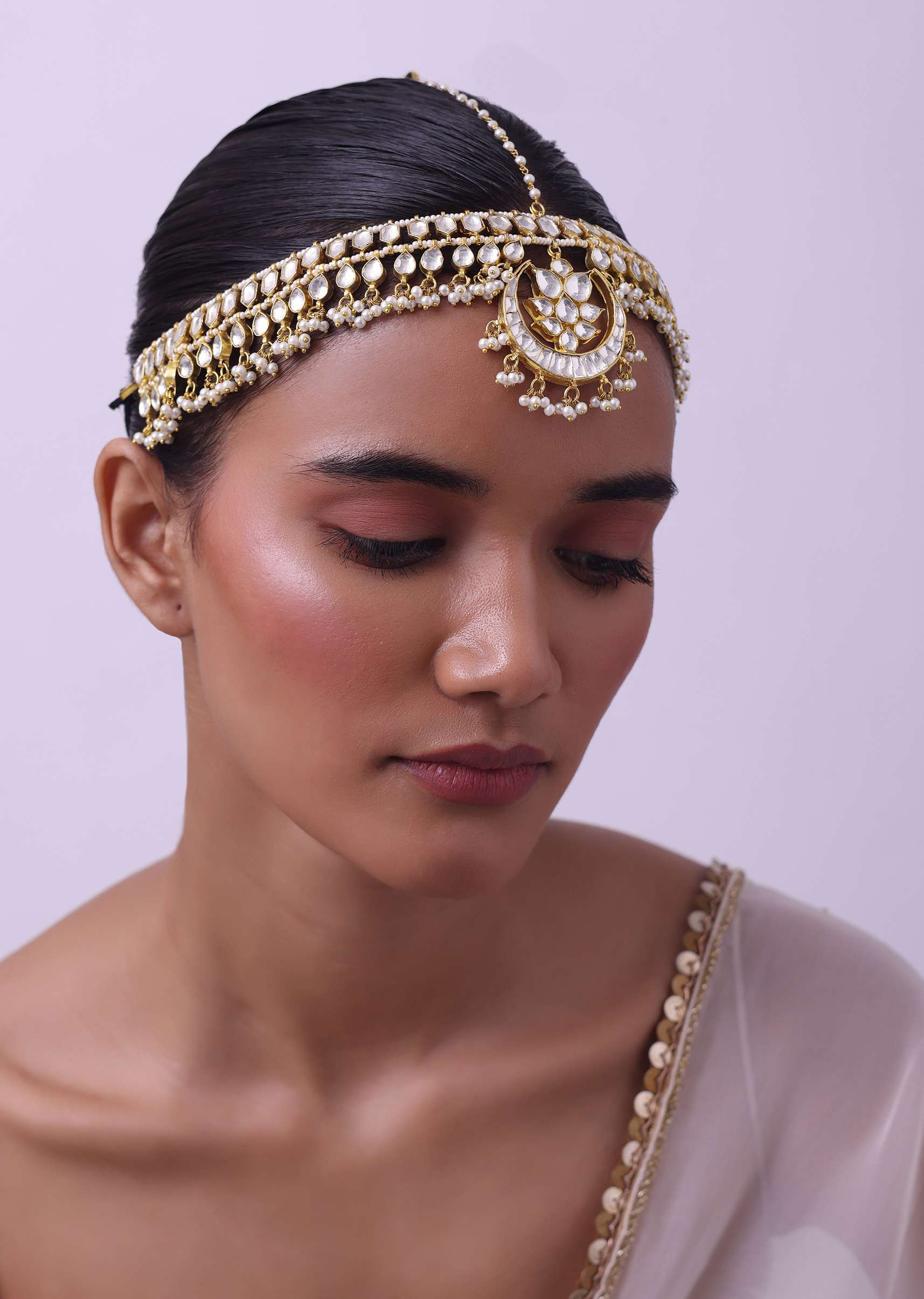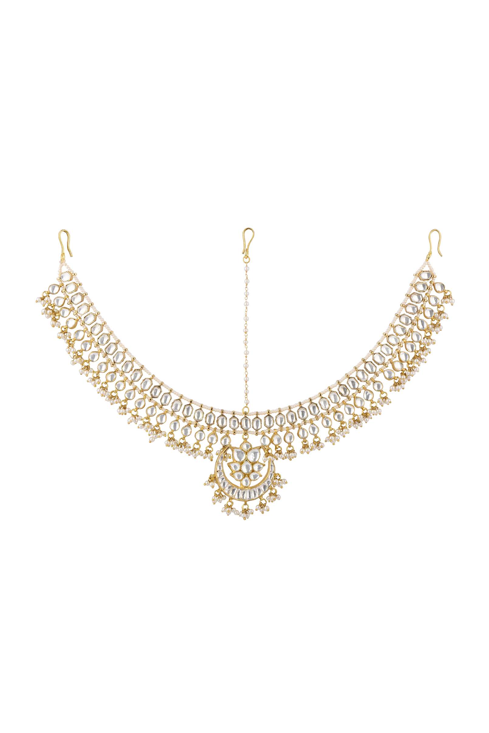 Gold Finish Kundan Mathapatti Adorned With Pearls