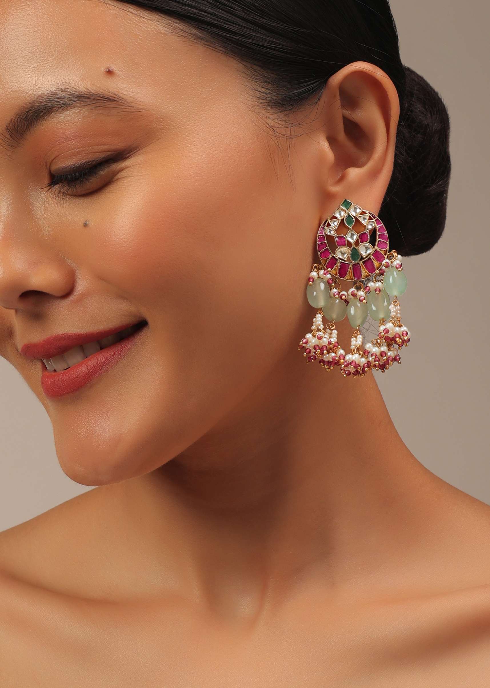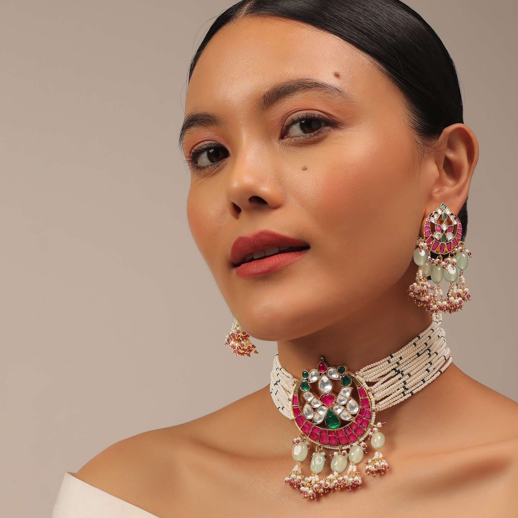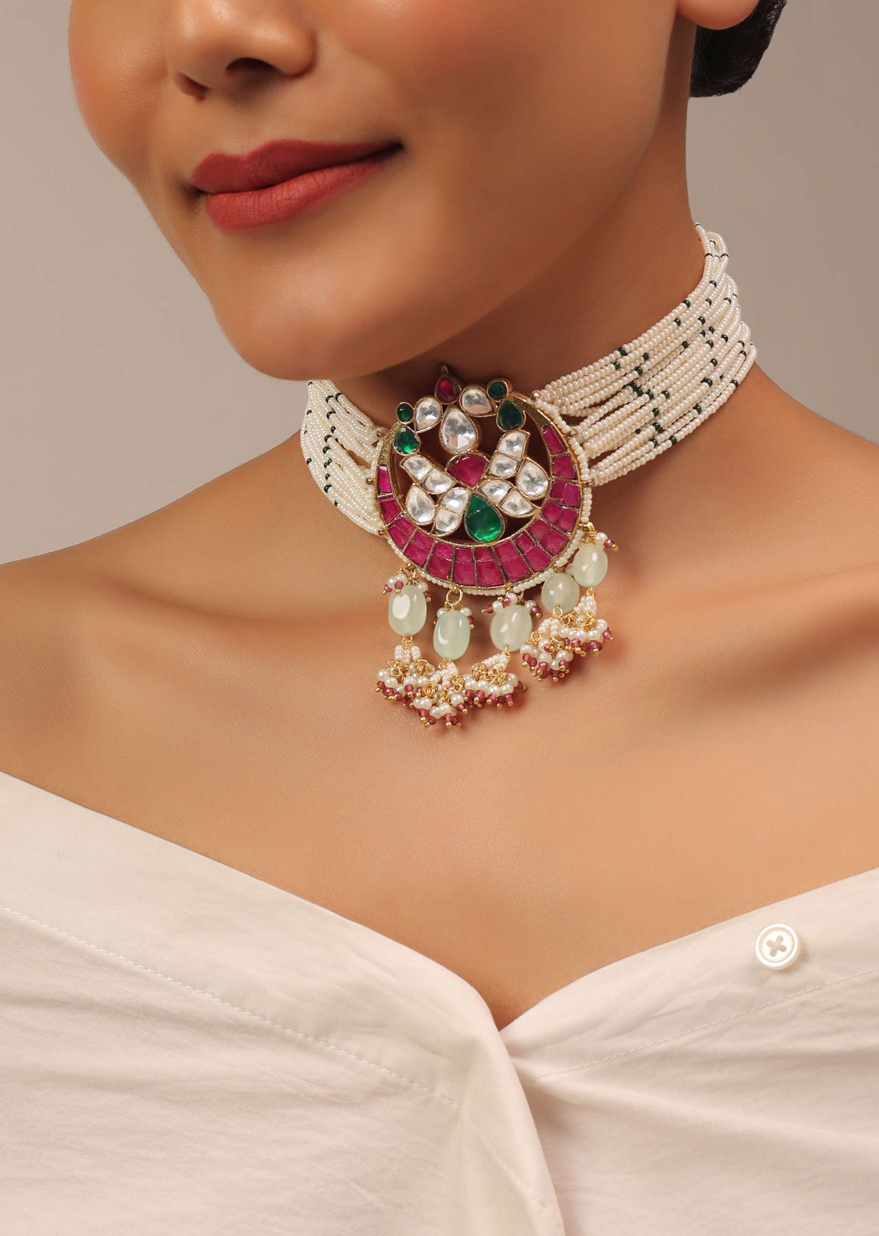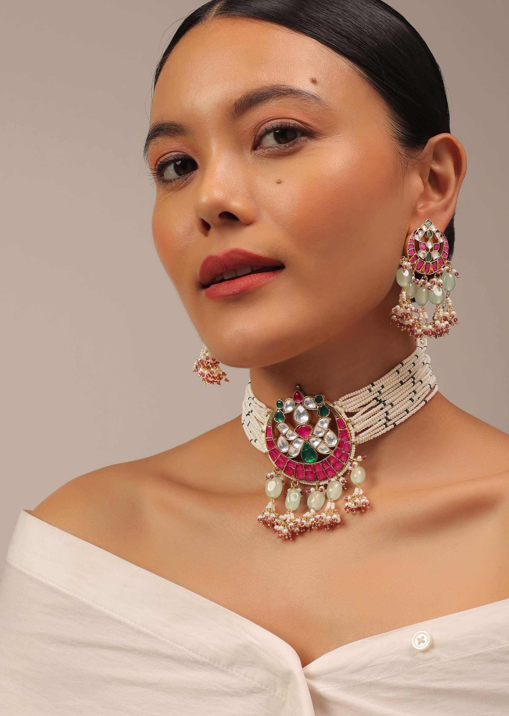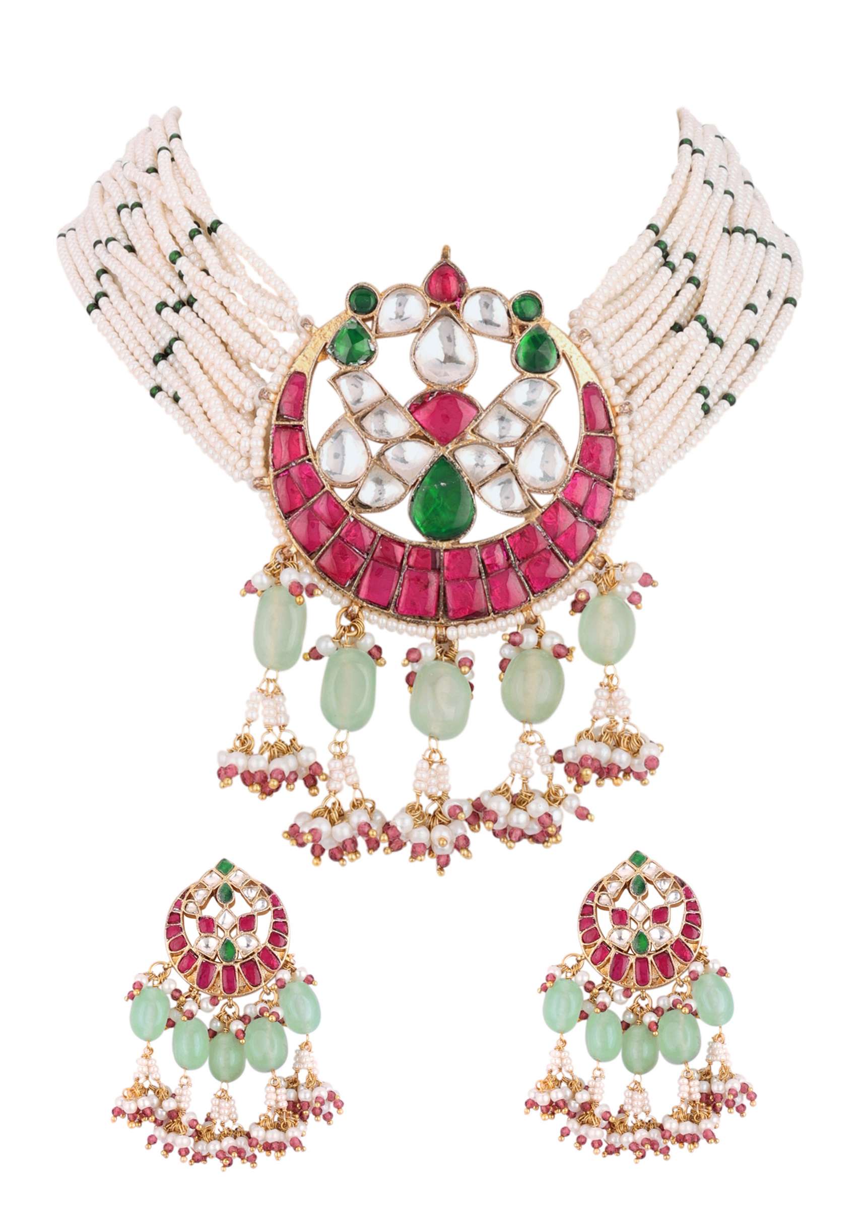 A jewellery piece that will uplift your entire look. Pair it with any matching traditional or indo-western outfit for the perfect glam look. The jewellery is ideal for weddings and festivities.
