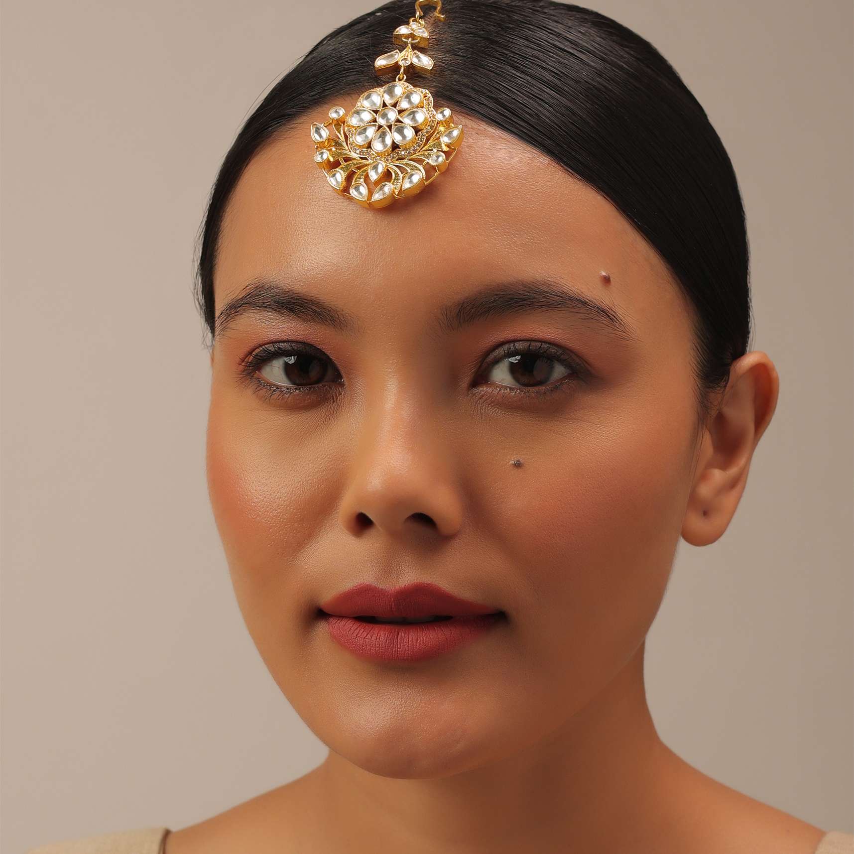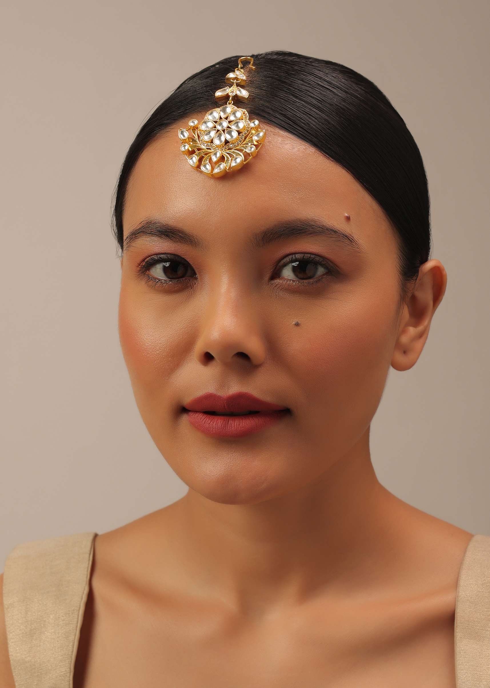 Gold Finish Kundan Polki Maangteeka