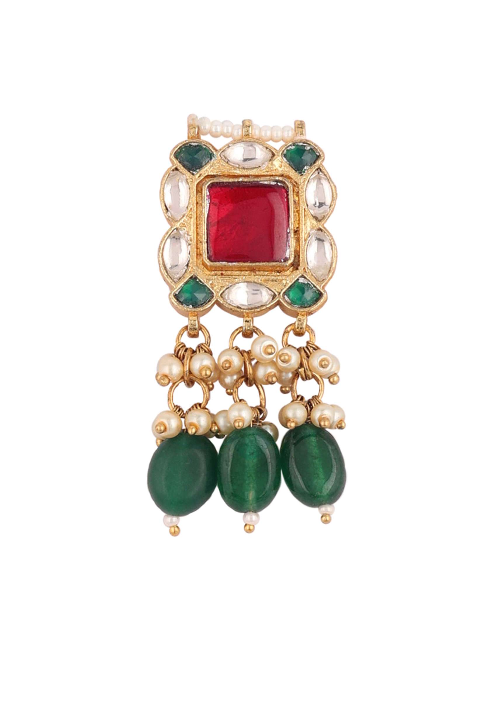 A traditional kundan piece that's sure to take your entire look a notch higher. The jewelry piece is perfect when paired with some traditional and festive outfits, for an ecstatic Indian look with minimal makeup, traditional sarees, or suits to create a breathtaking ethnic look for your upcoming festivities.
