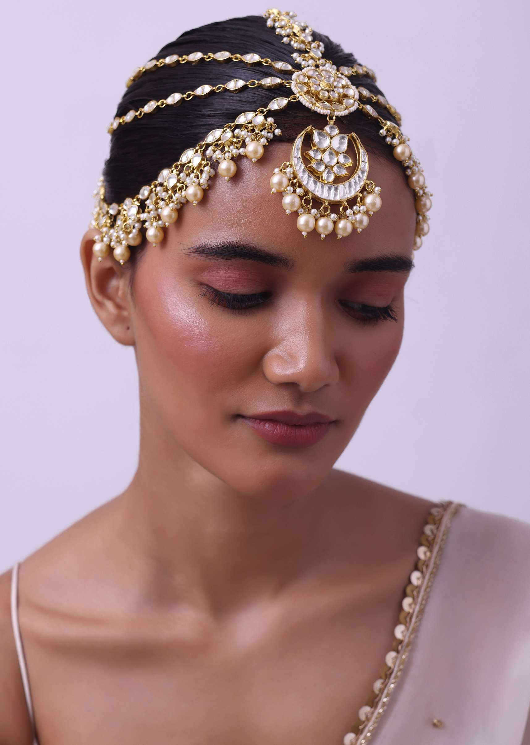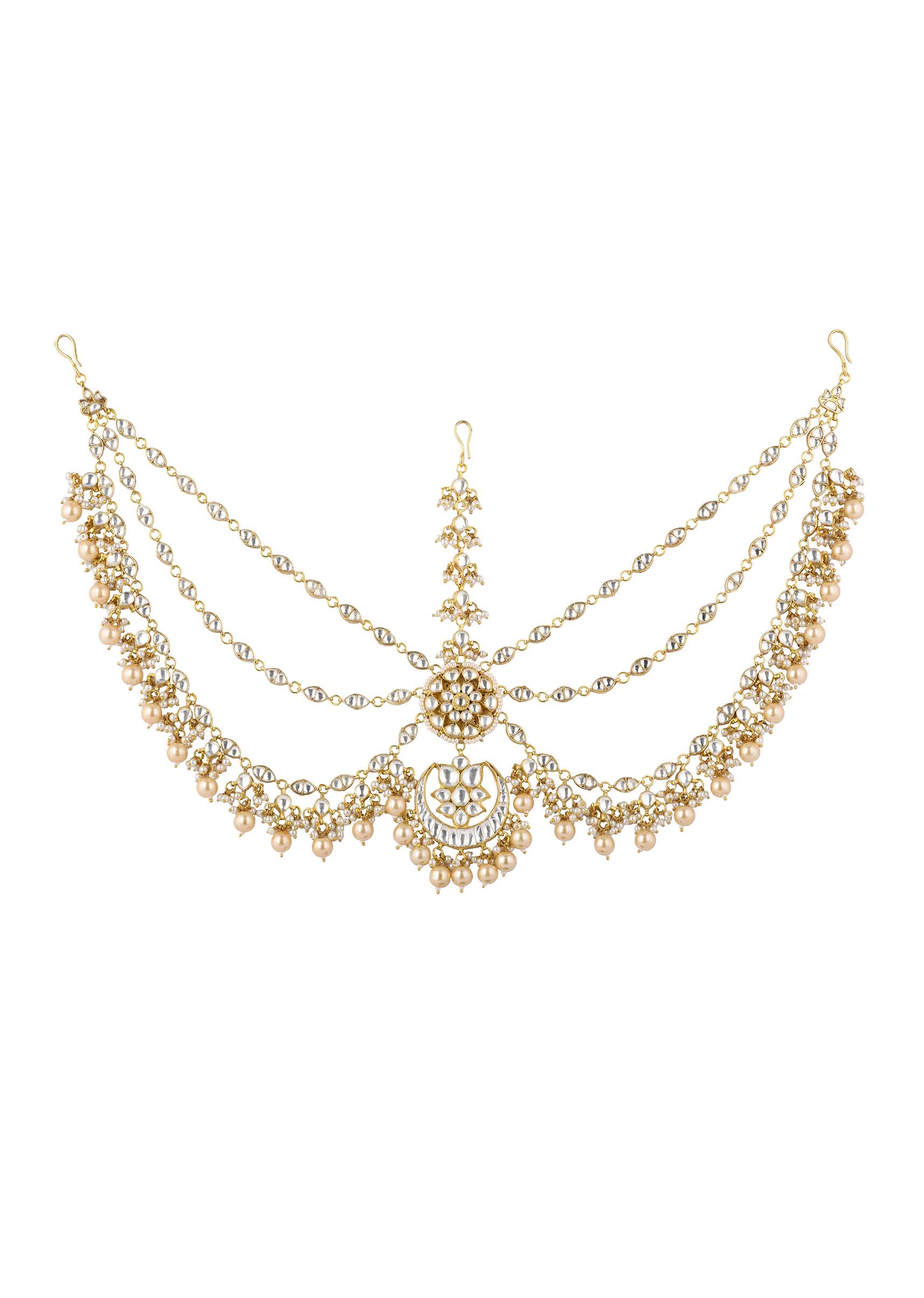 Gold Finish Kundan Sheeshphool In Mix Metal With Pearls