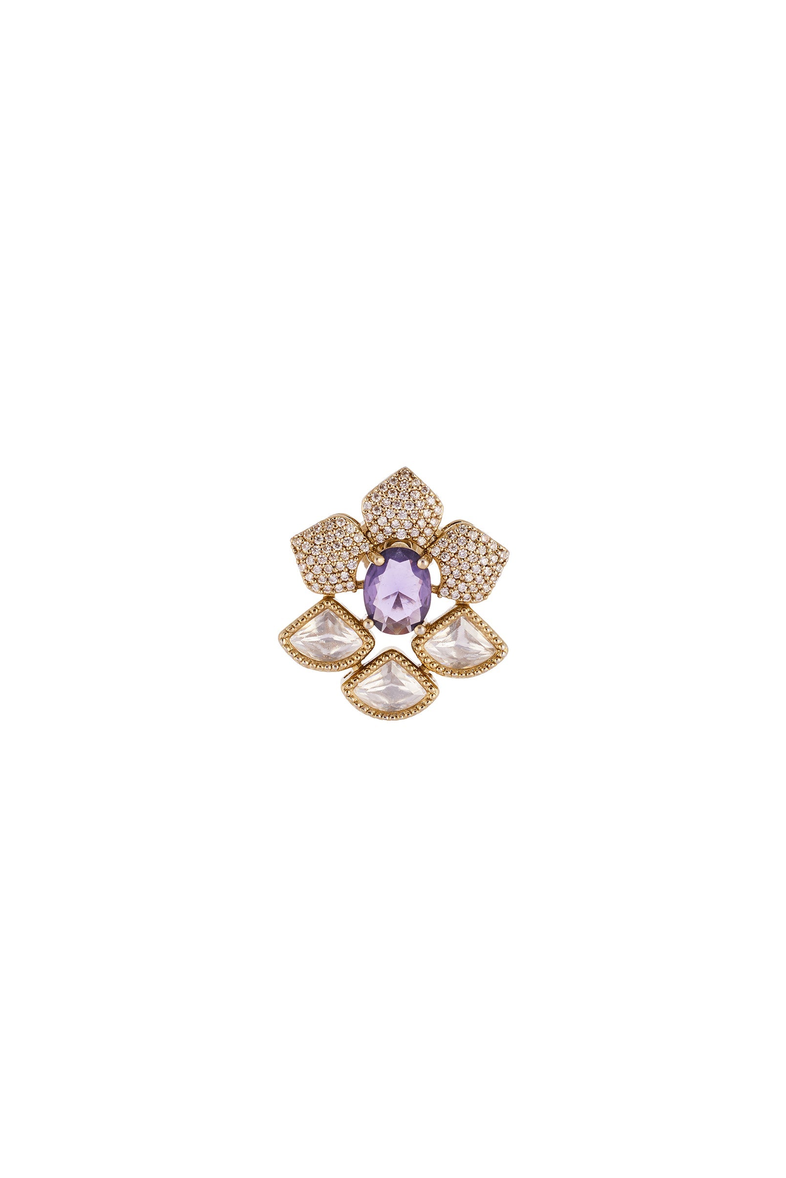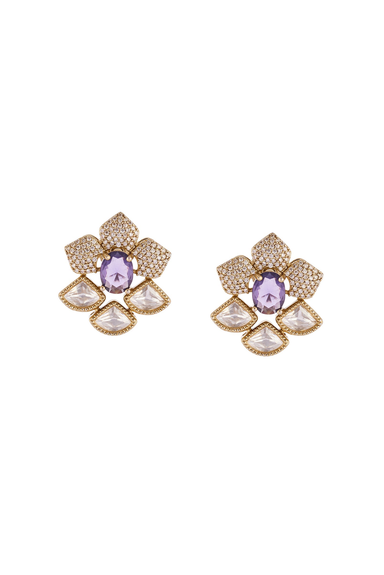 An exquisite blend of regal hues, this gold finish necklace set features uncut Polki set in the traditional Kundan Jadau technique. Handcrafted by skilled artisans, the necklace highlights striking tanzanite accents that bring a refined purple glow to the design. The harmony of warm gold tones, radiant Polki, and rich tanzanite creates a luxurious statement that beautifully complements festive and wedding ensembles. Coordinating earrings complete the set for an elegant, cohesive look.