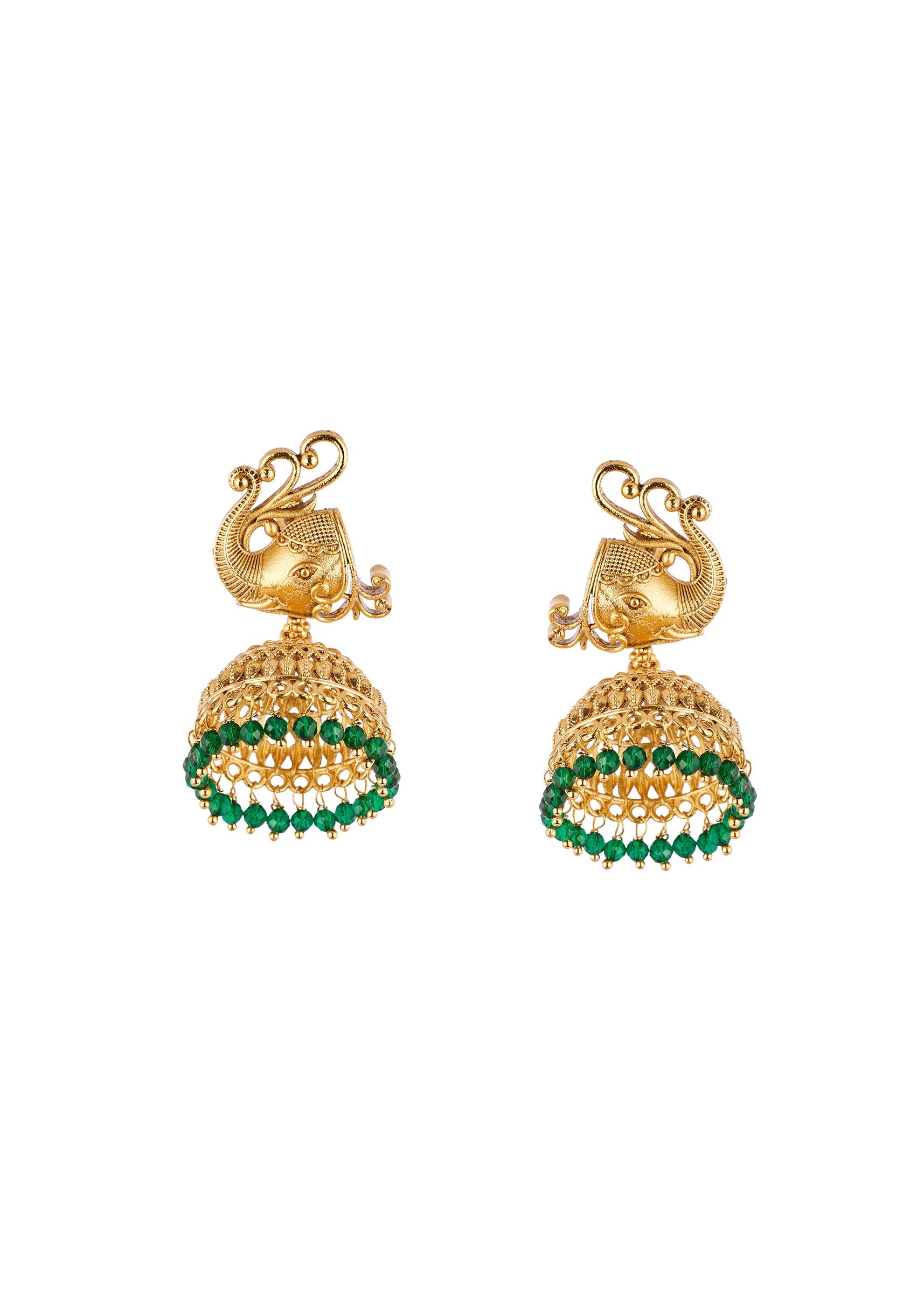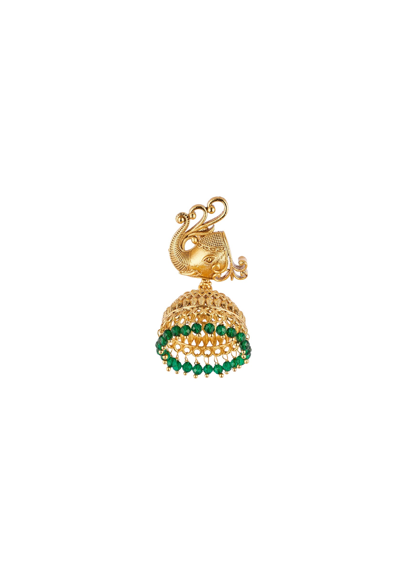 Pair it with a silk saree or a jewel toned lehenga to highlight the green stone accents beautifully.