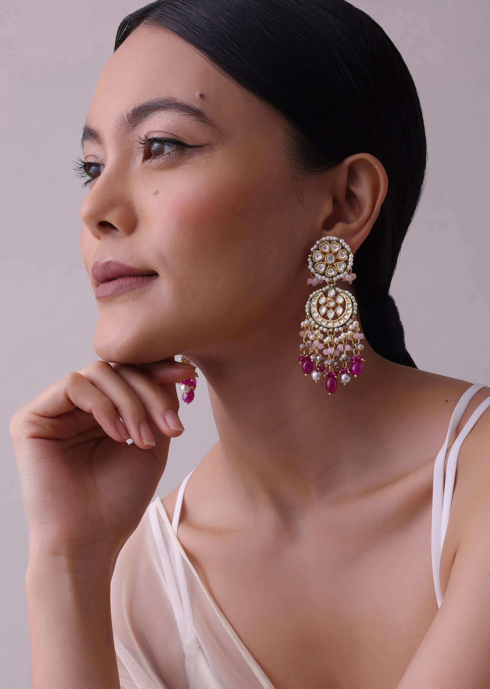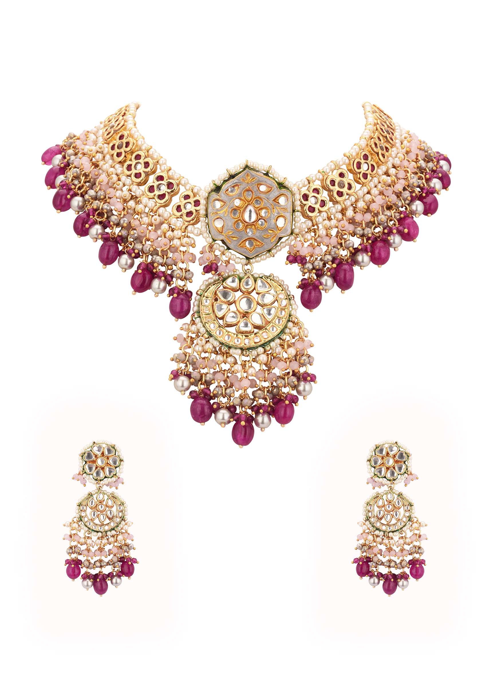 Introducing the breathtaking necklace and earring set, a masterpiece of Indian jewelry design that exudes elegance. This exquisite necklace set features a radiant gold finish and is adorned with stunning ruby stones, intricate kundan work, and colorful meenakari detailing in mixed metal.EVENT - Perfect for special occasions, festive celebrations, or as a luxurious addition to your everyday wardrobe.Avoid contact with water, chemicals, harsh liquids, perfumes, etc.Do not wear this piece of jewelry while showering, gymming, swimming, etc.Hard contact must be avoided completely.Please keep the product away from moisture and humidity when not in use.Baroque pearls and Natural stones can range from minor aberrations to distinctly ovoid, curved, pinched, or lumpy shapes.Slight variations in design may vary. Awarded as the Most Trusted Brand, we're delivering styles you love, just as promised.