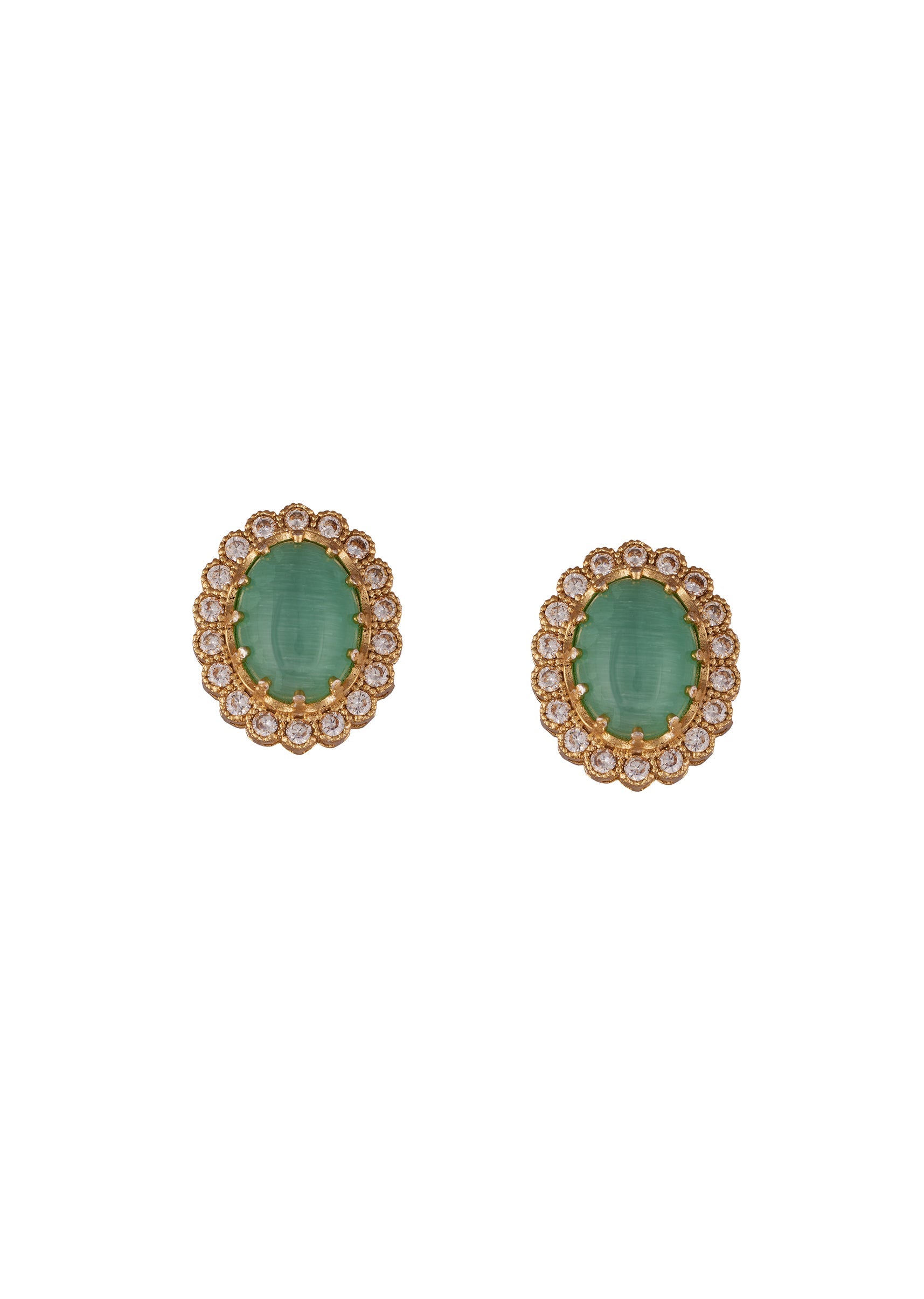 Gold Finish Statement Earrings With Green Stone And Cubic Zirconia Detailing