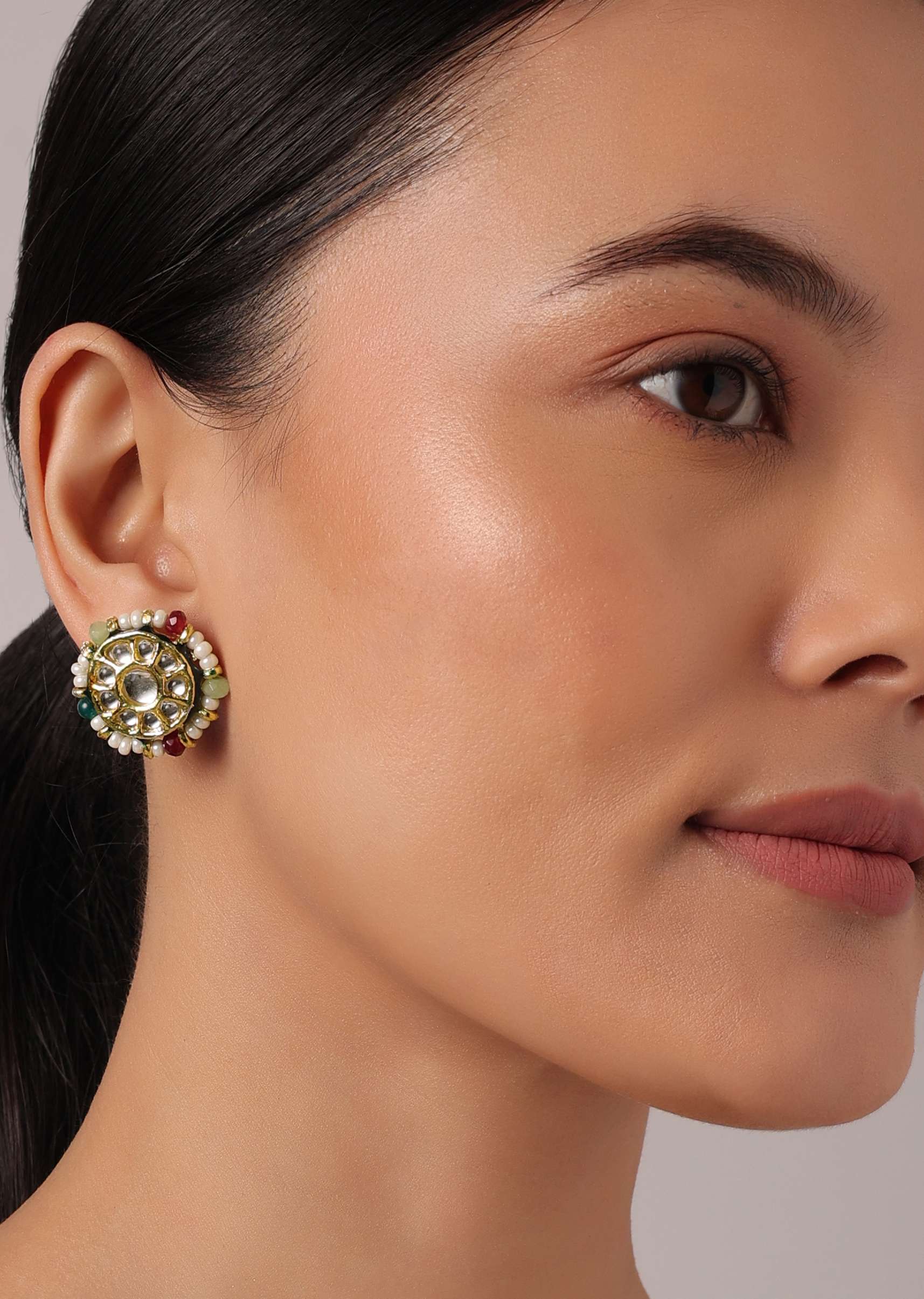 Gold Finish Temple Choker with Circular Motif And Studs
