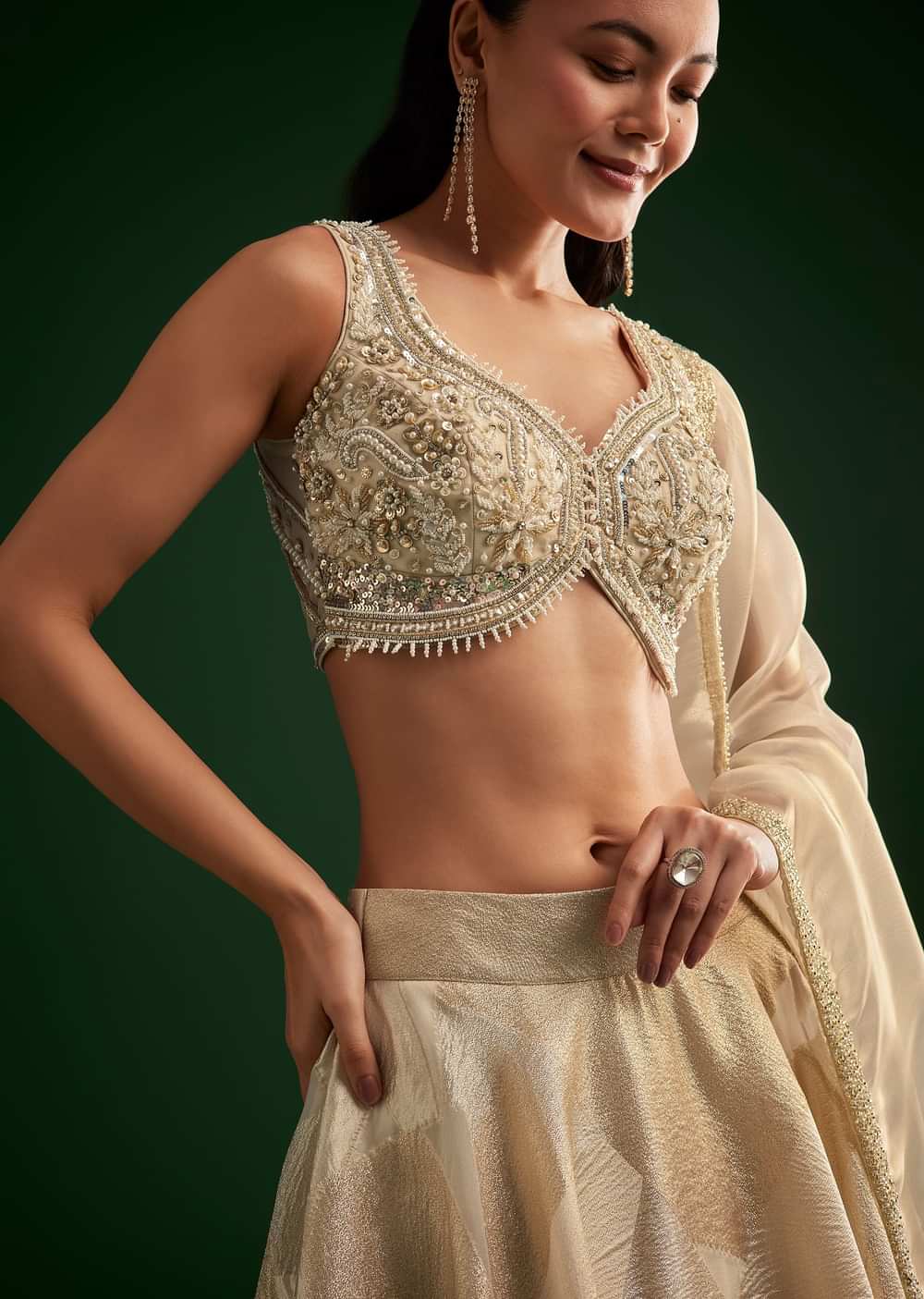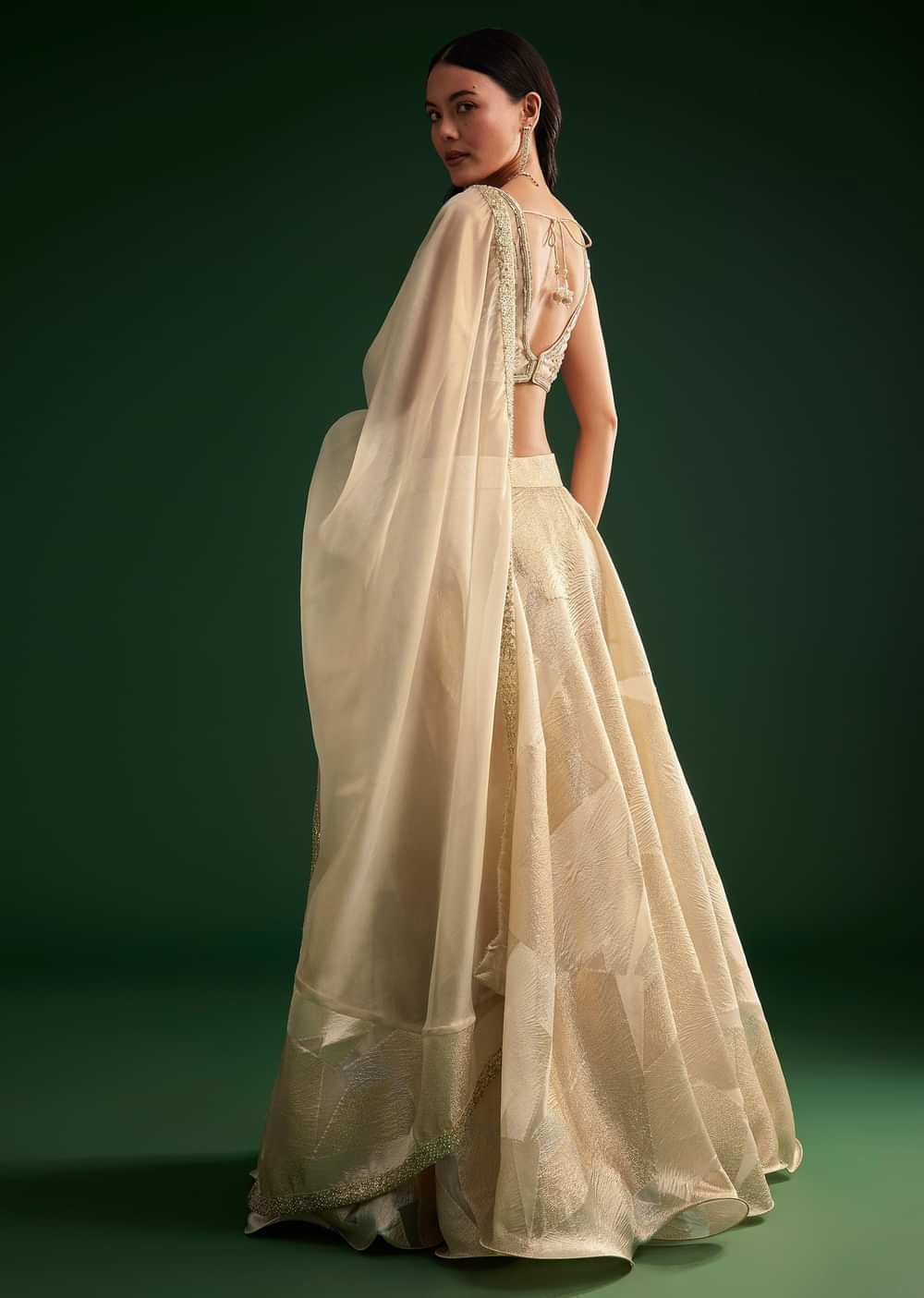 Gold Ivory Sequin Stone Work Choli Lehenga