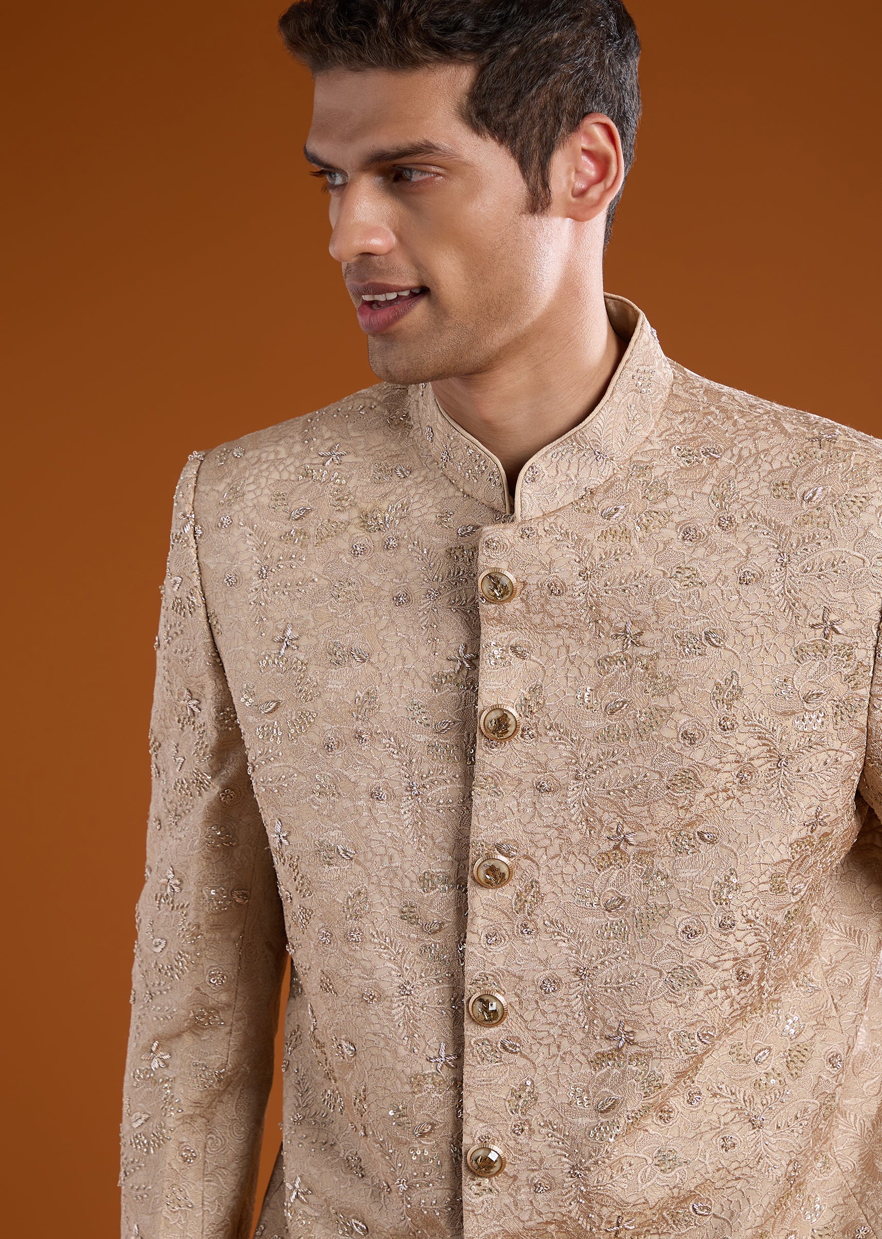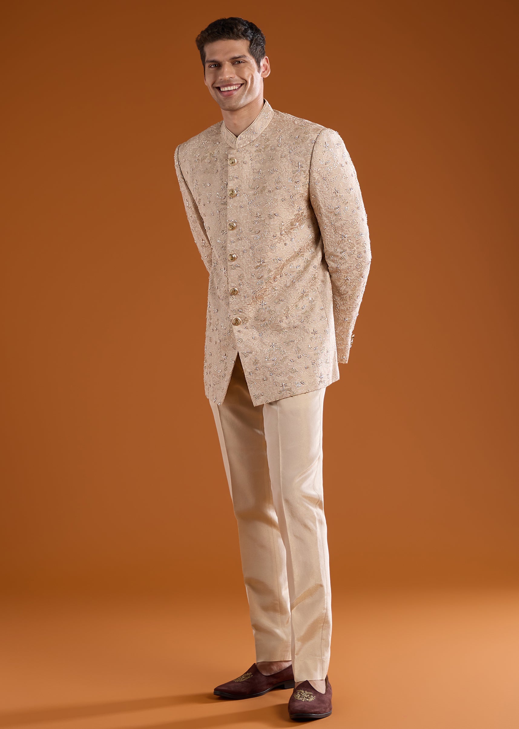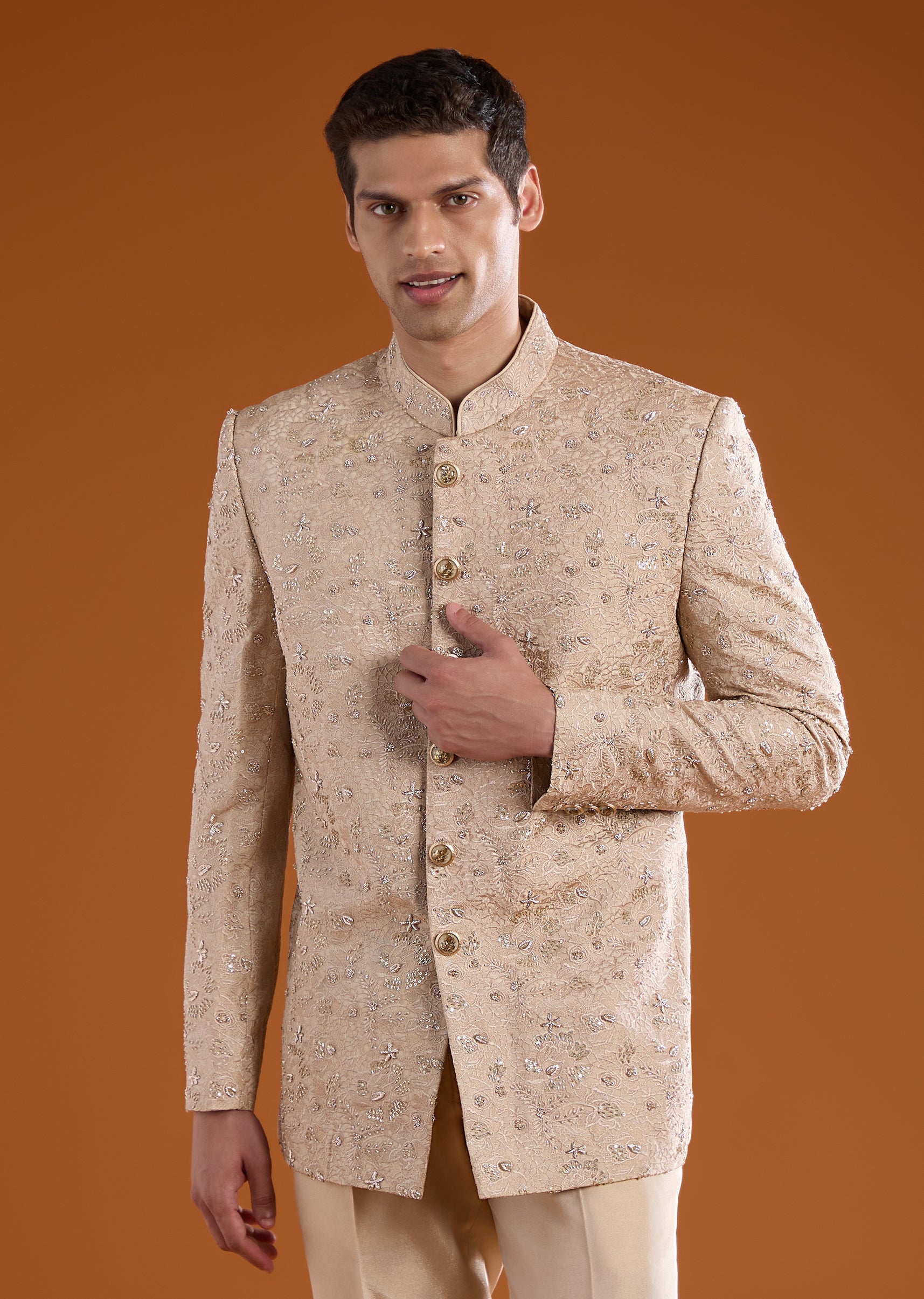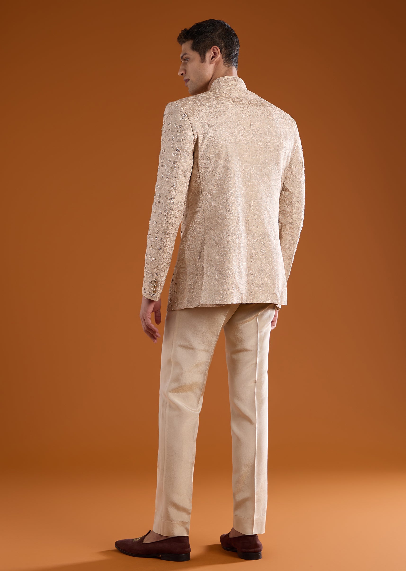 Gold Jacquard Jodhpuri Set with Cutdana Work