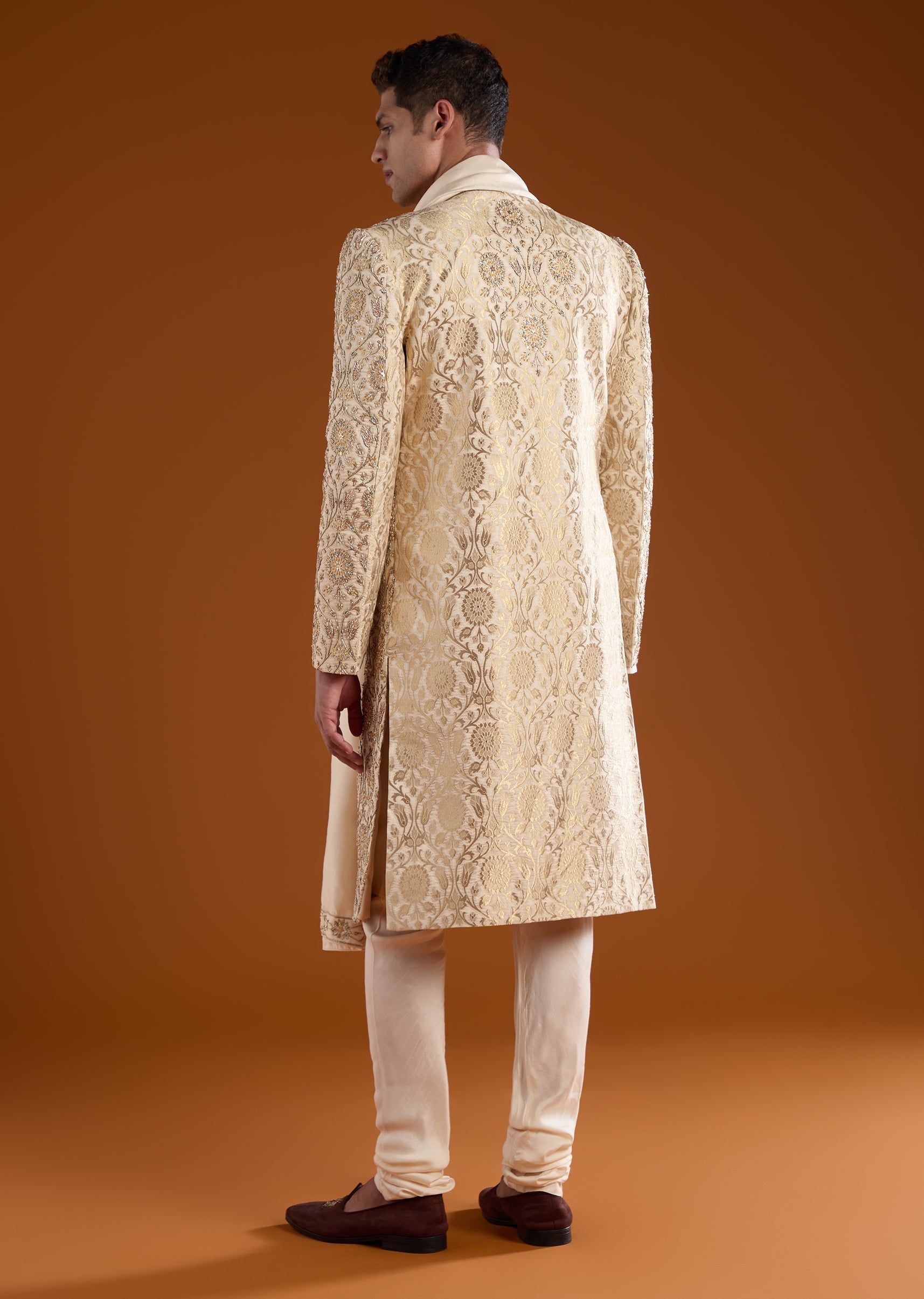 Gold Jacquard Sherwani Kurta Set