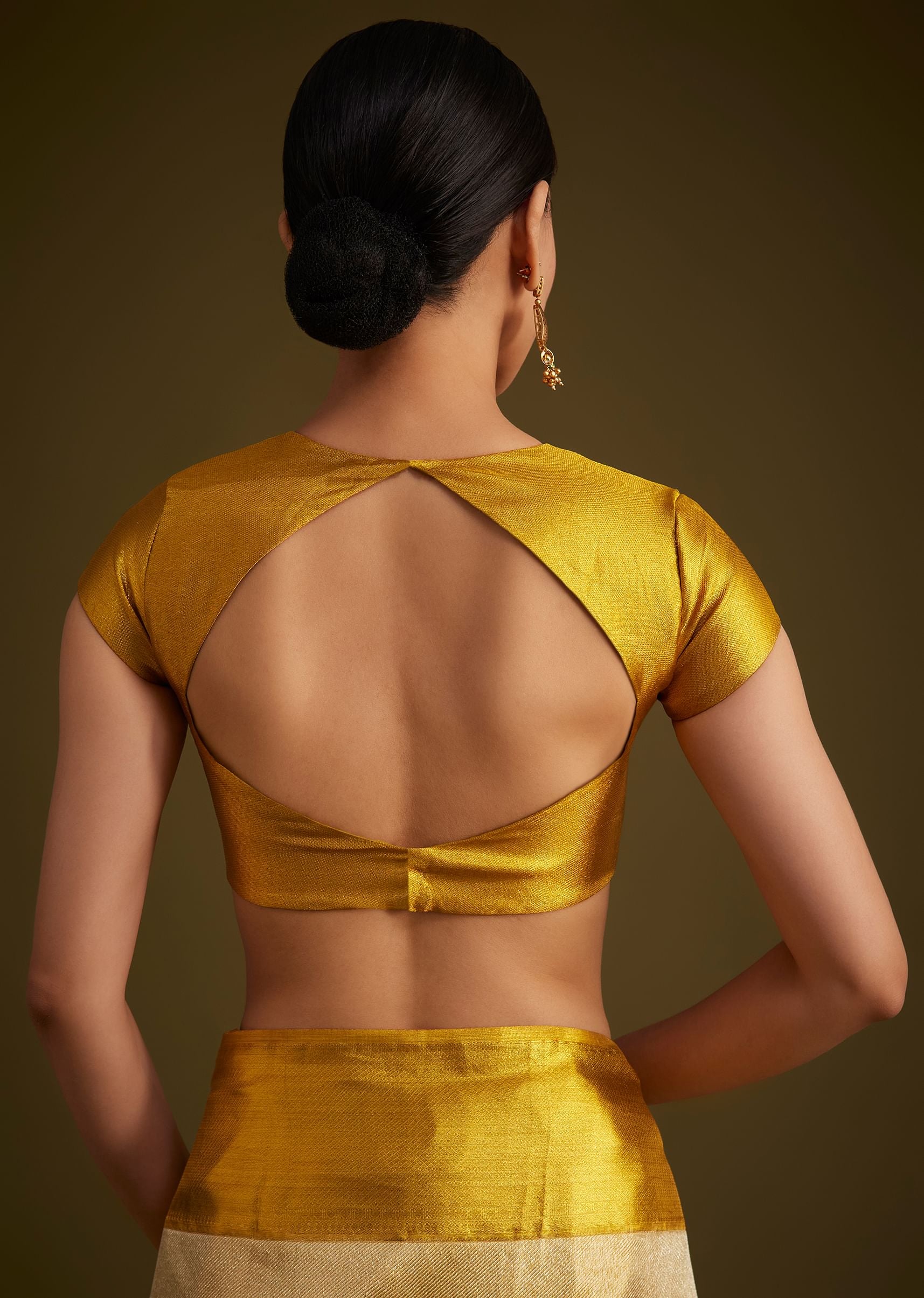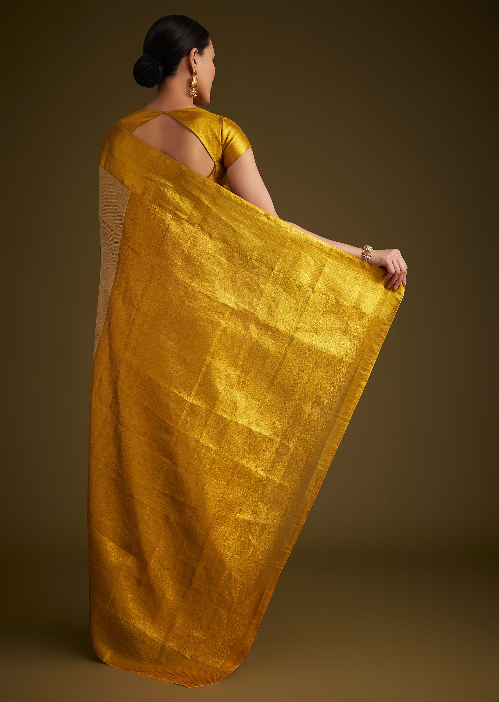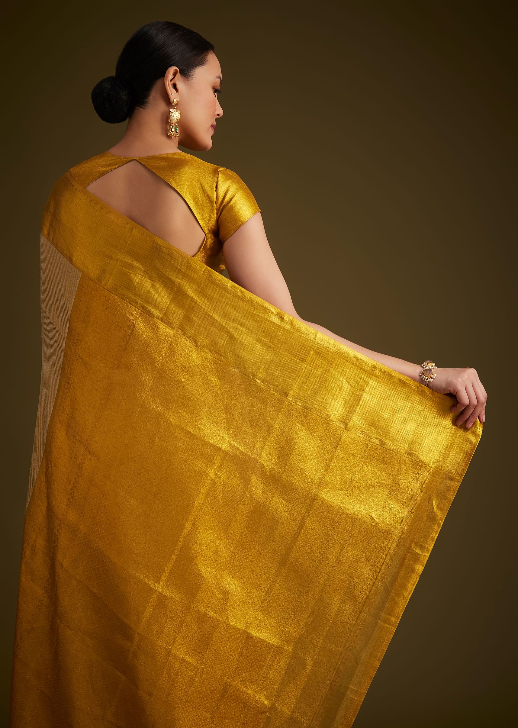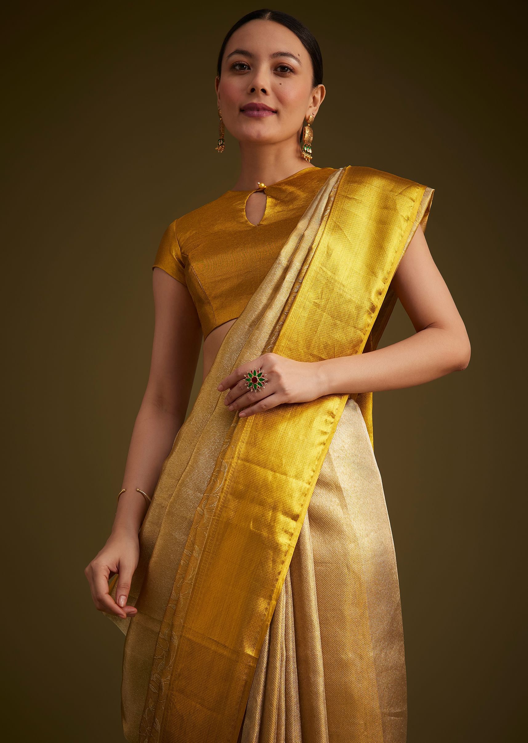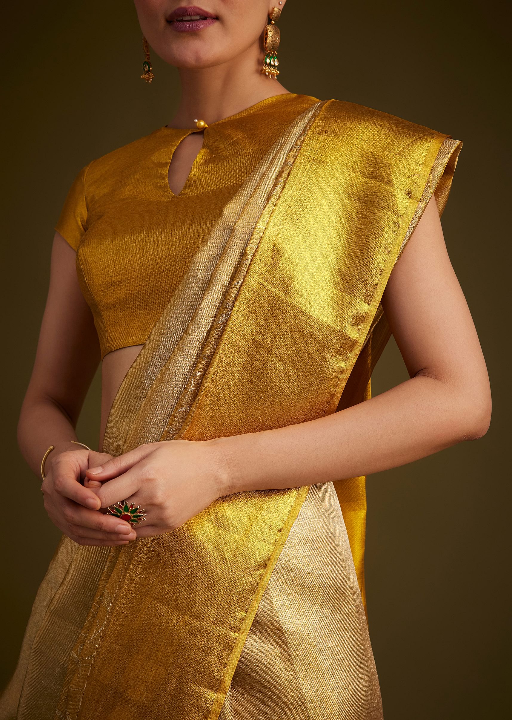 Gold Kanjivaram Silk Saree With Golden Zari Detailing