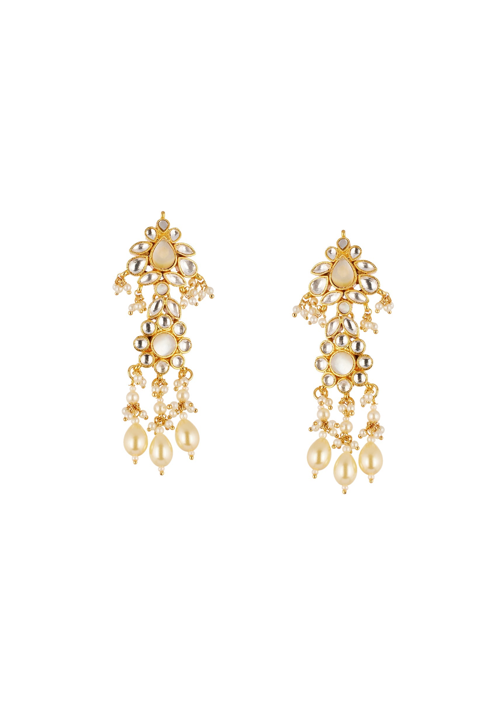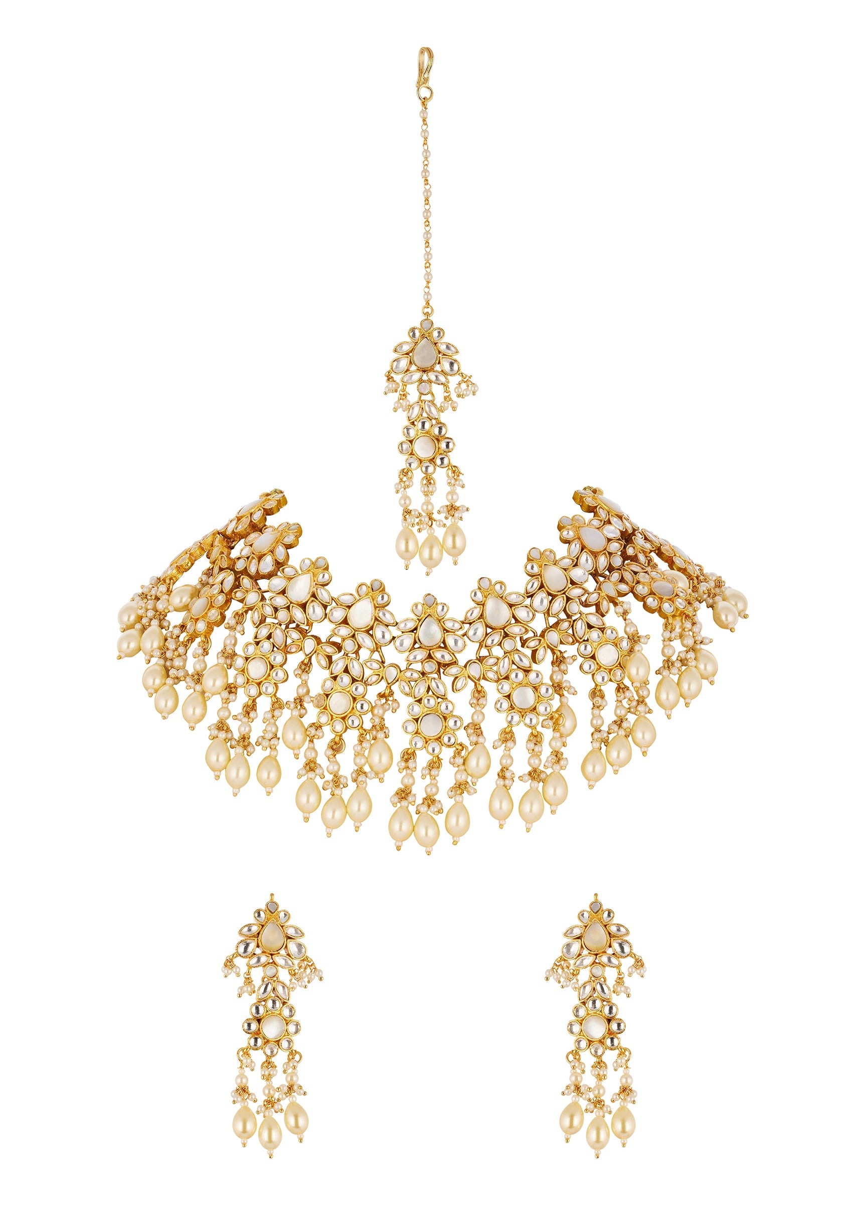 Gold Kundan Necklace Set with Faux Pearls