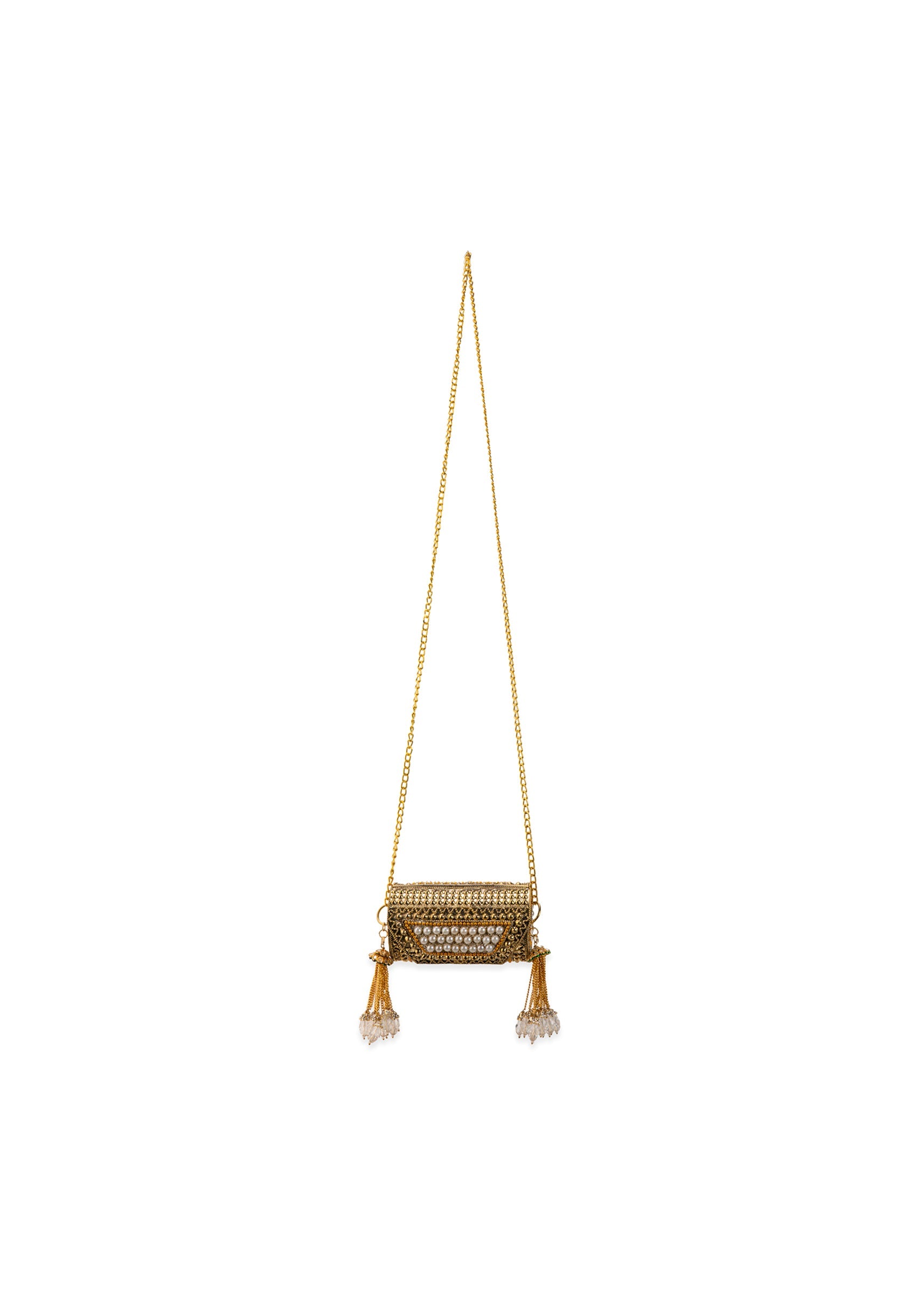 A pearl encrusted design paired with antique gold detailing gives this bag a rich, vintage inspired elegance. Its radiant finish and ornate craftsmanship make it perfect for weddings, festive soirees,... More Product Details
