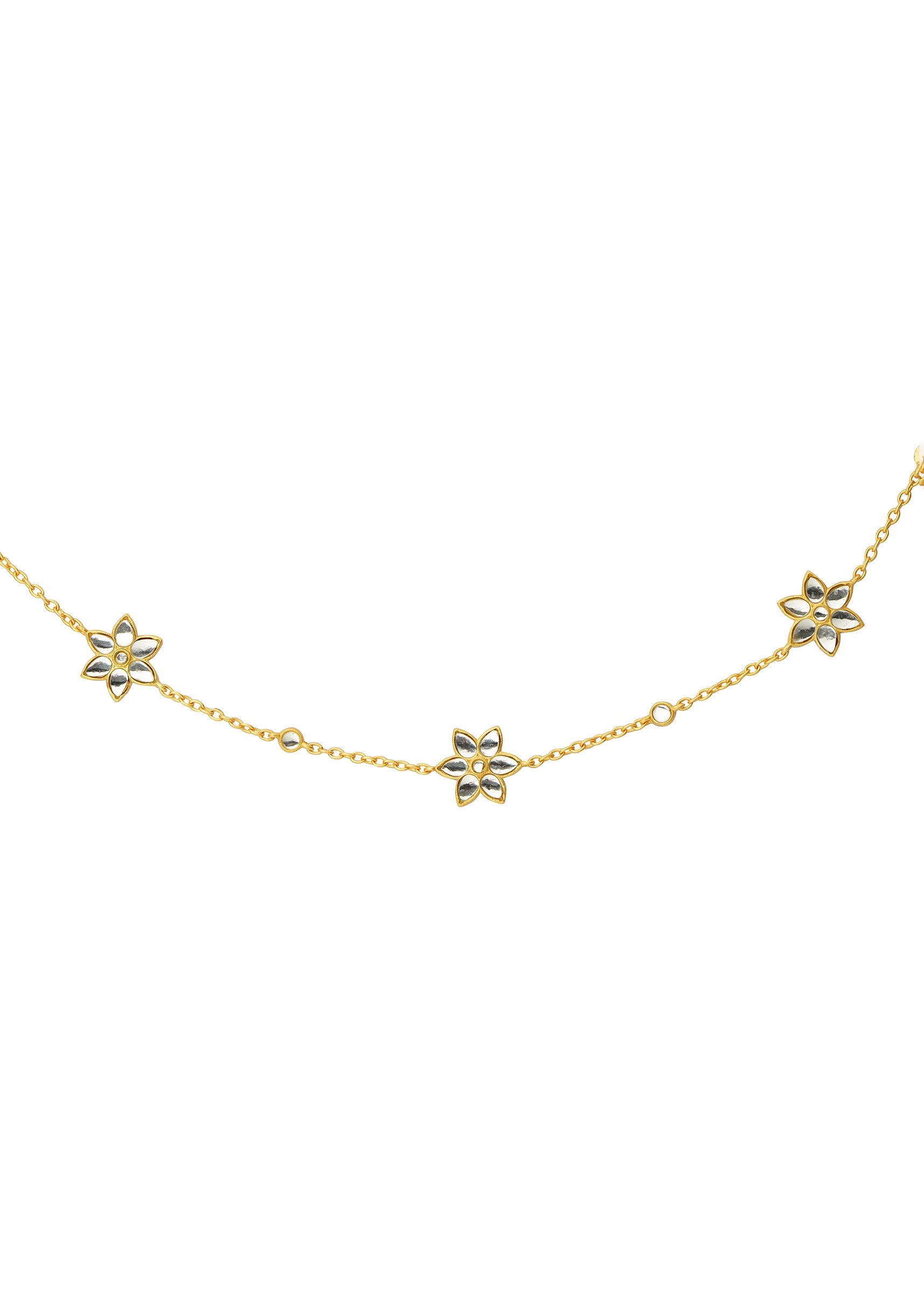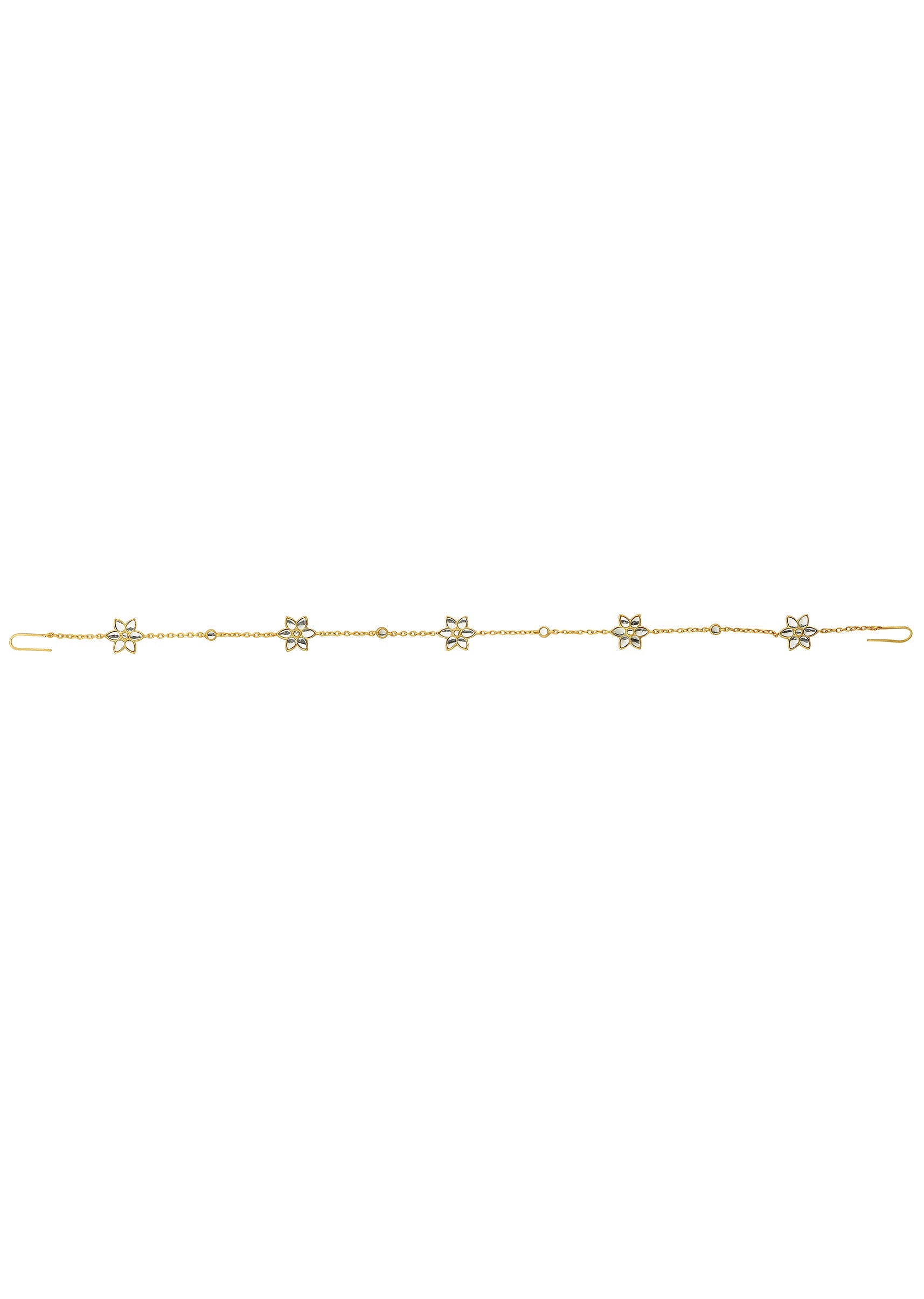 Enhance Your Mehendi Look With This Exquisite Gold Phool Sitara Maatha Patti Featuring Delicate Floral Motifs Adorned With Mirror Polki Details. Perfectly Blending Tradition And Elegance This Mixmetal Maatha Patti... More Product Details