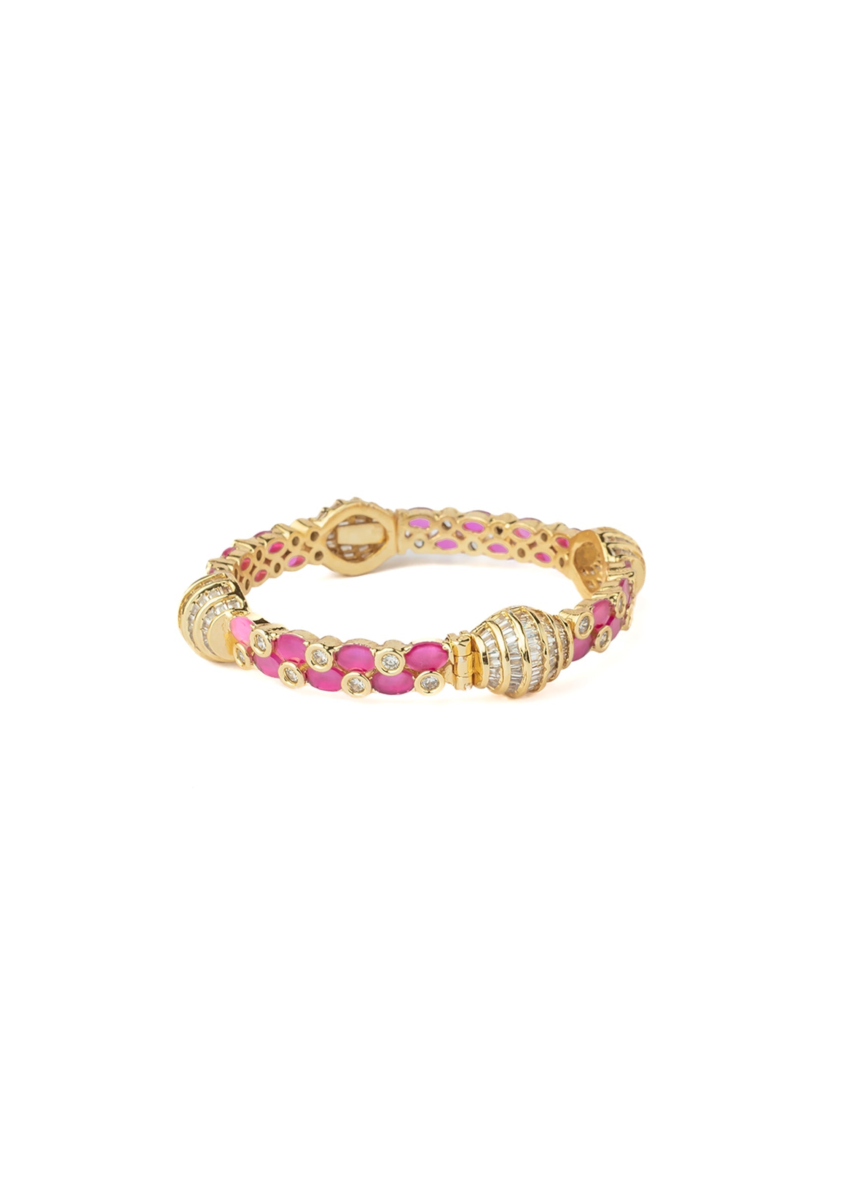 Gold Plated Dazzling White And Pink Synthetic Stone Bangles