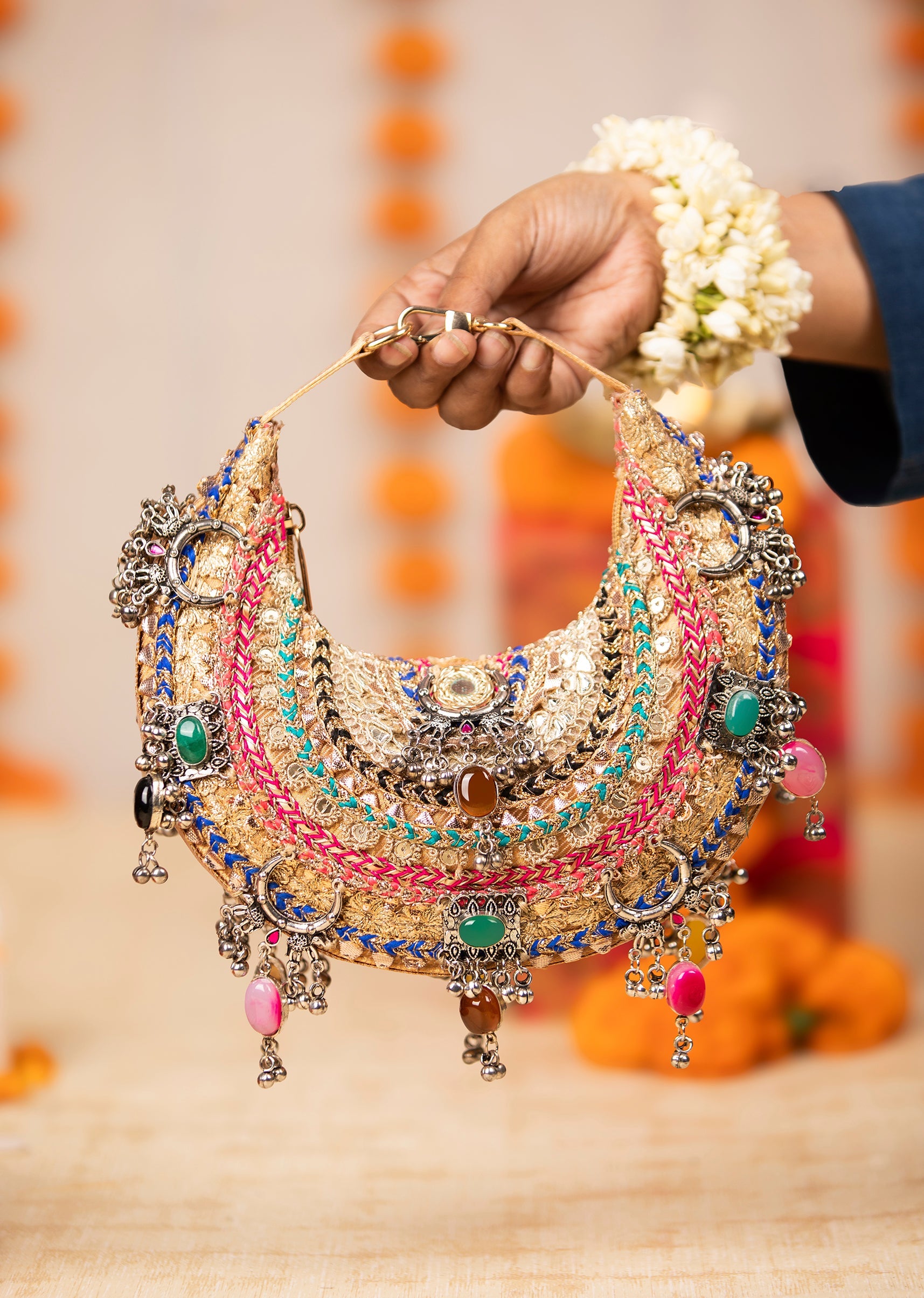 This gold silk bag shines with intricate hand embroidery, blending rich craftsmanship with a refined, festive glow. The embellished details and sleek front zip design make it both stylish and functional for celebrations and evening events. Lightweight and luxurious, it’s the perfect finishing touch to elevate any traditional or contemporary outfit. Awarded as the Most Trusted Brand, we're delivering styles you love, just as promised.