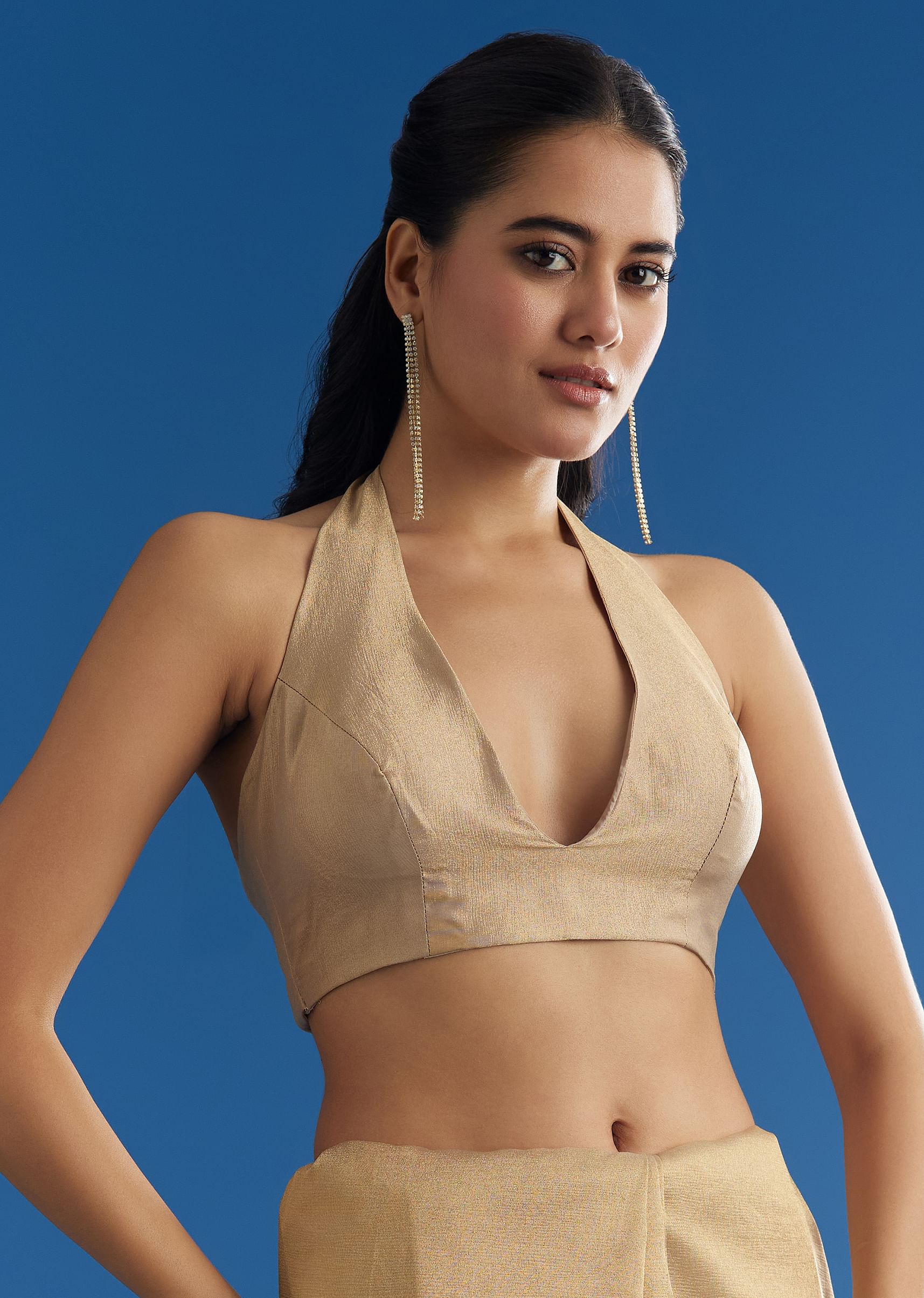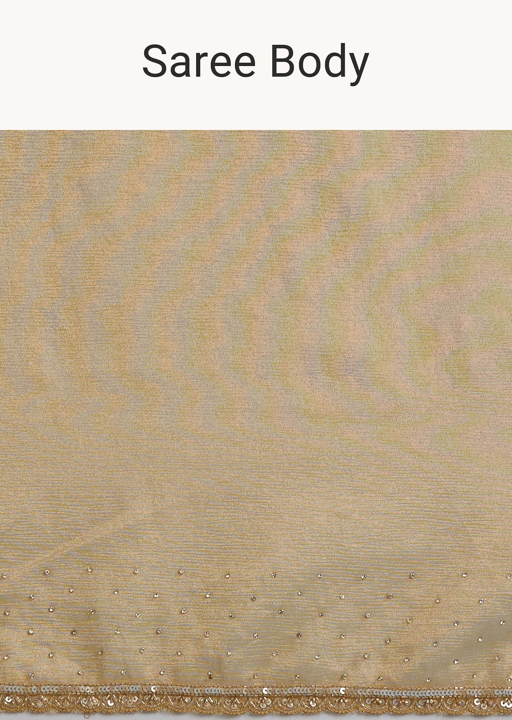 Gold Tissue Saree With Cutdana Sequins And Beads Embroidery