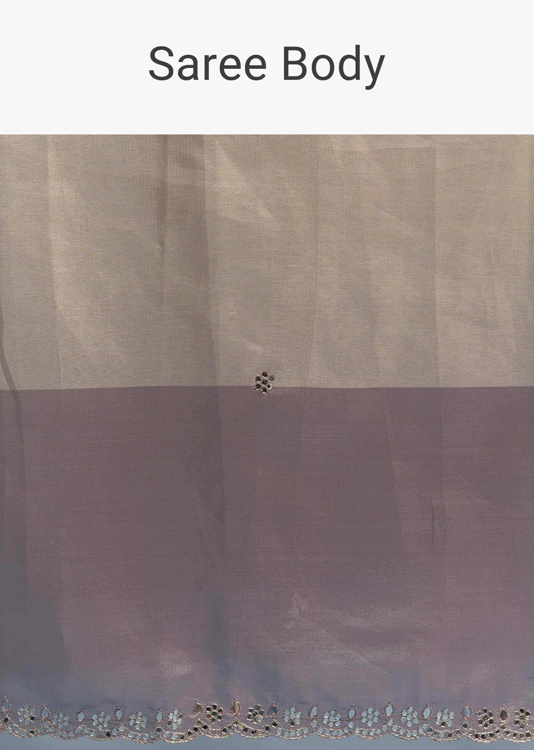 This gold-shaded tissue saree carries drama through every thread. The scalloped borders edged with gota, mirror, zari, and cutdana work create a look that celebrates festivity without screaming for it.... More Product Details
