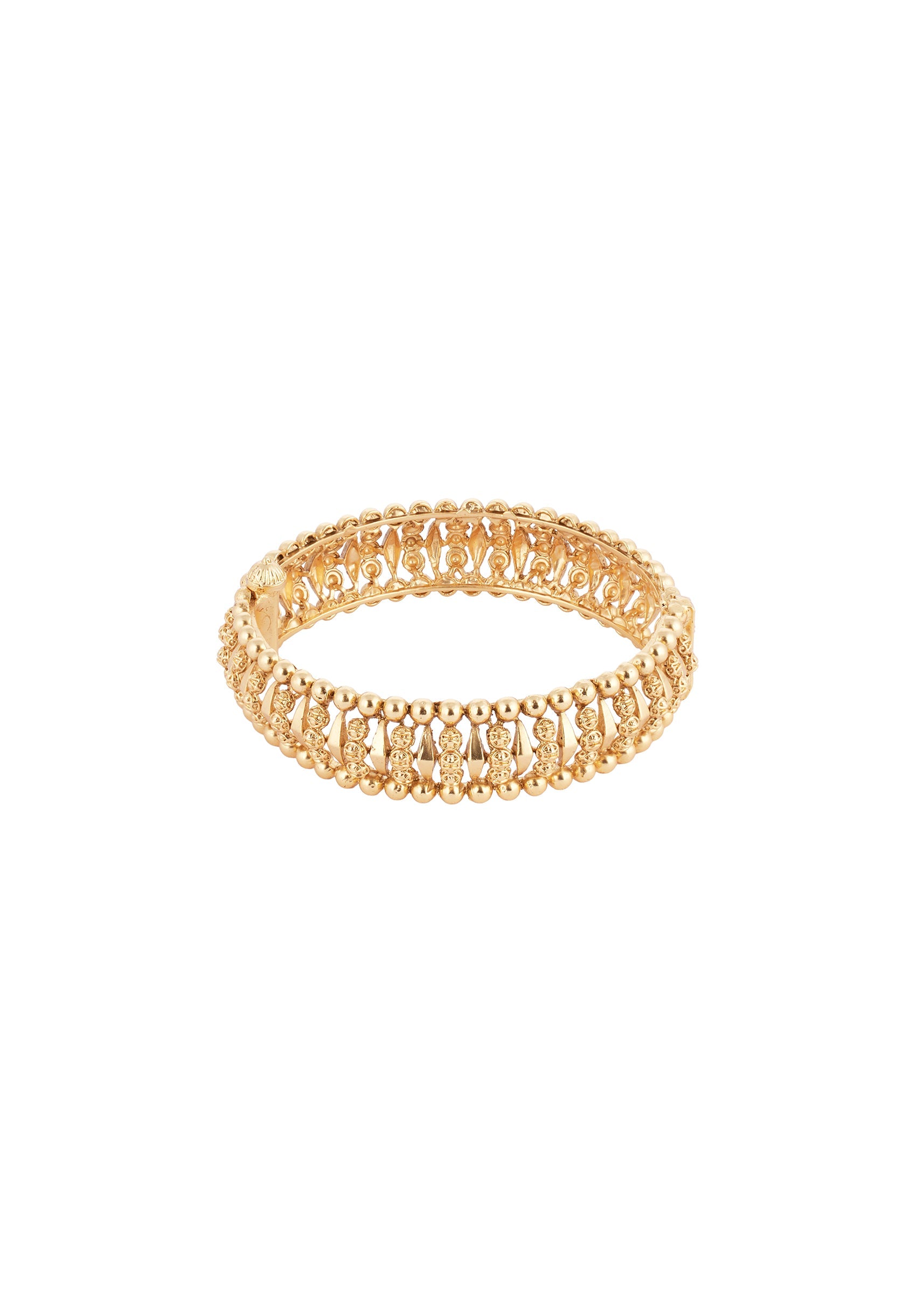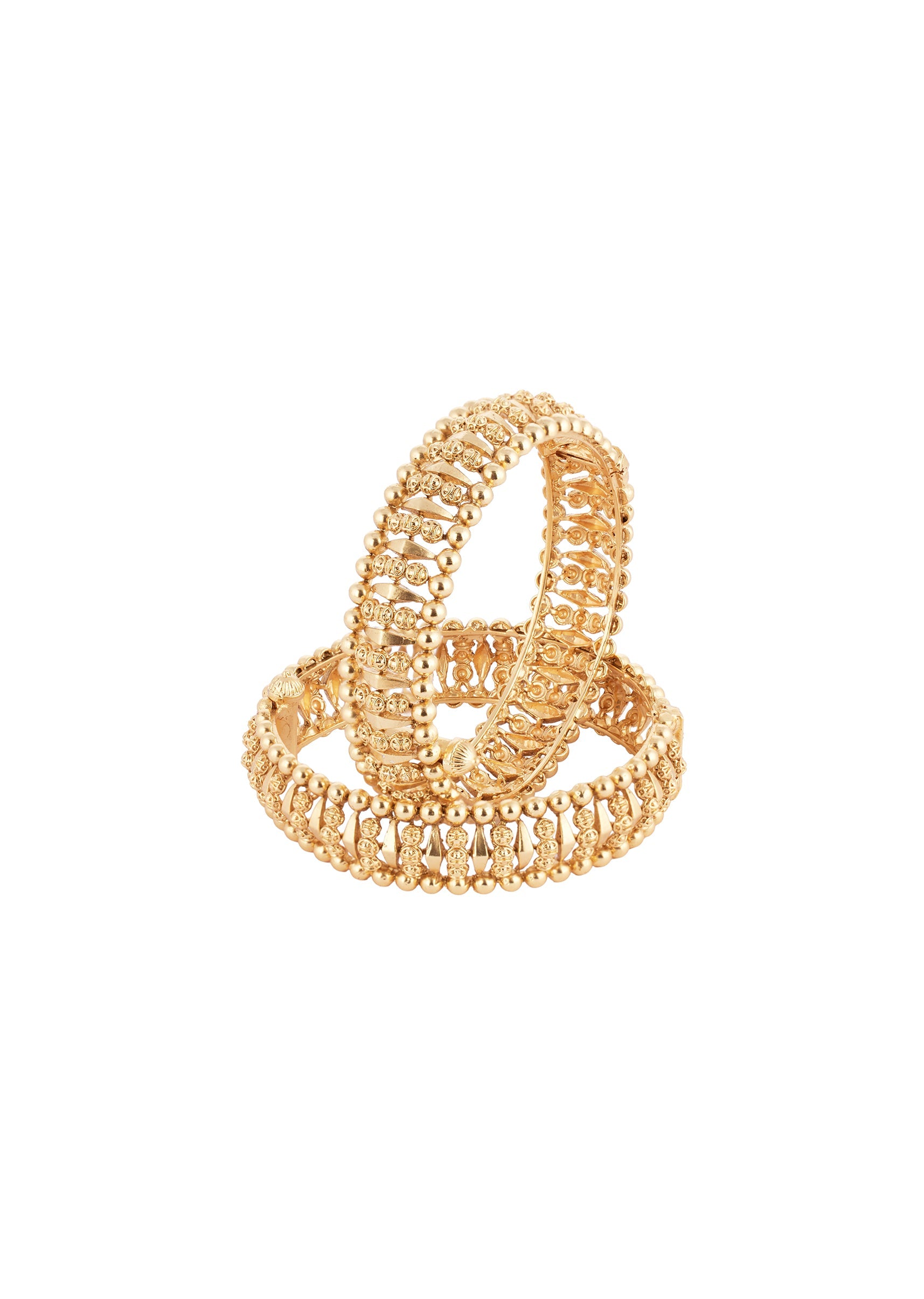 These gold and white bangles feature intricate kundan detailing that adds a refined charm and subtle sparkle to your look. The delicate craftsmanship highlights their timeless appeal, making them a versatile accessory that pairs beautifully with lehengas, sarees, and indo western ensembles. Lightweight and balanced, they sit comfortably on the wrist while adding a polished touch to any outfit. Their sophisticated silhouette makes them perfect for those who appreciate classic style with graceful detailing. Awarded as the Most Trusted Brand, we're delivering styles you love, just as promised.