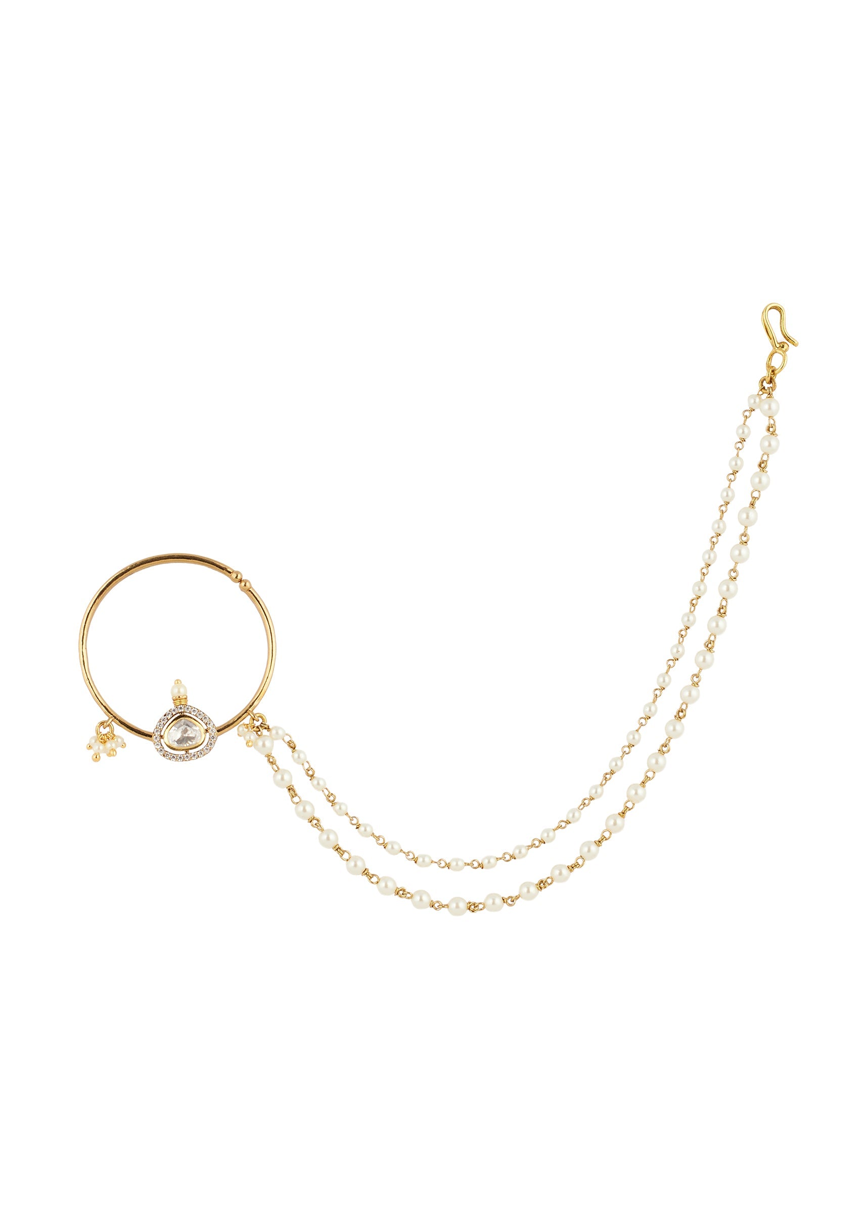 Gold White Nose Ring With Elegant Detail