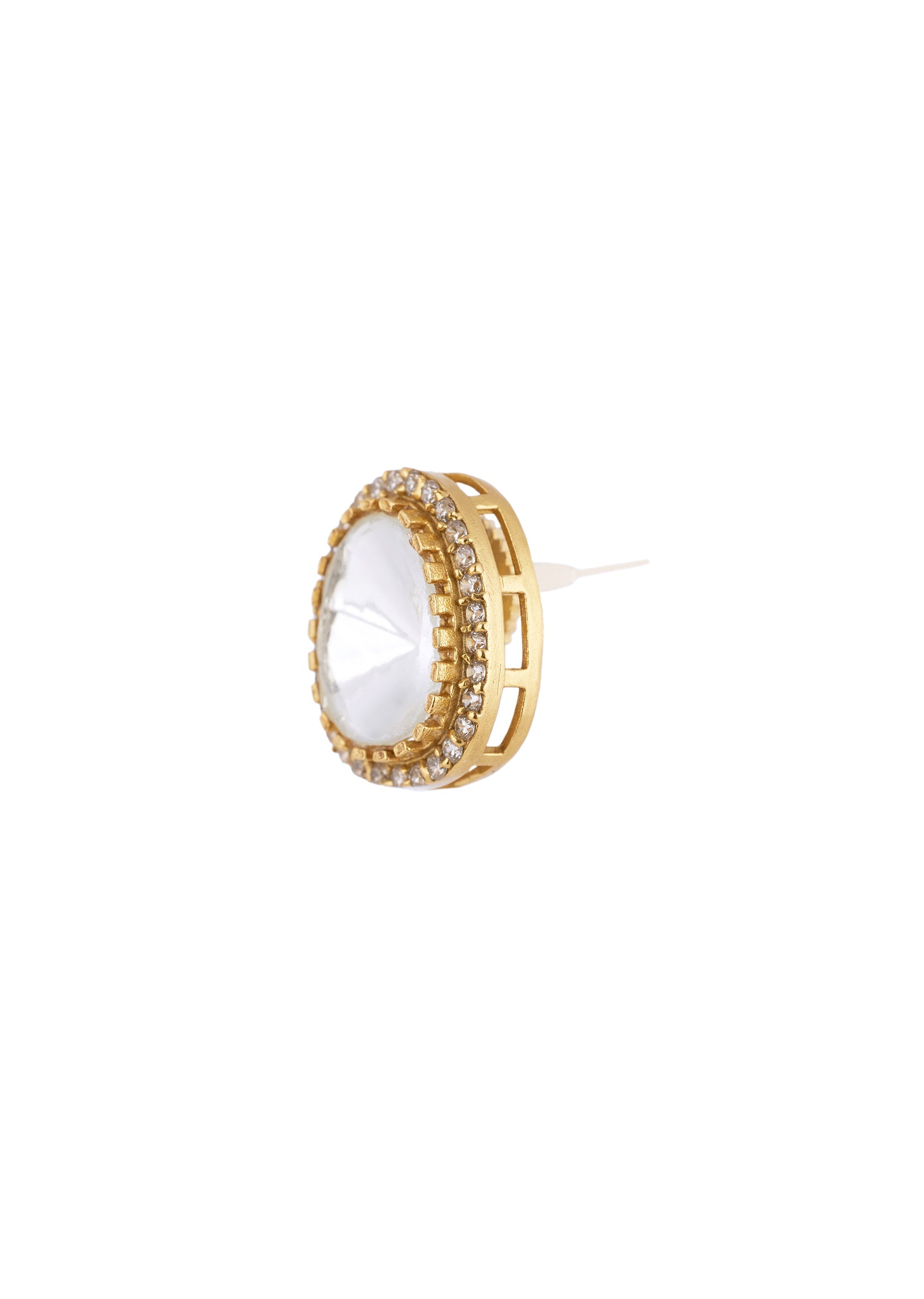 These gold and white earrings feature delicate polki inspired detailing that brings a soft traditional glow to any festive look. Perfect for pooja ceremonies and wedding functions, they offer an... More Product Details