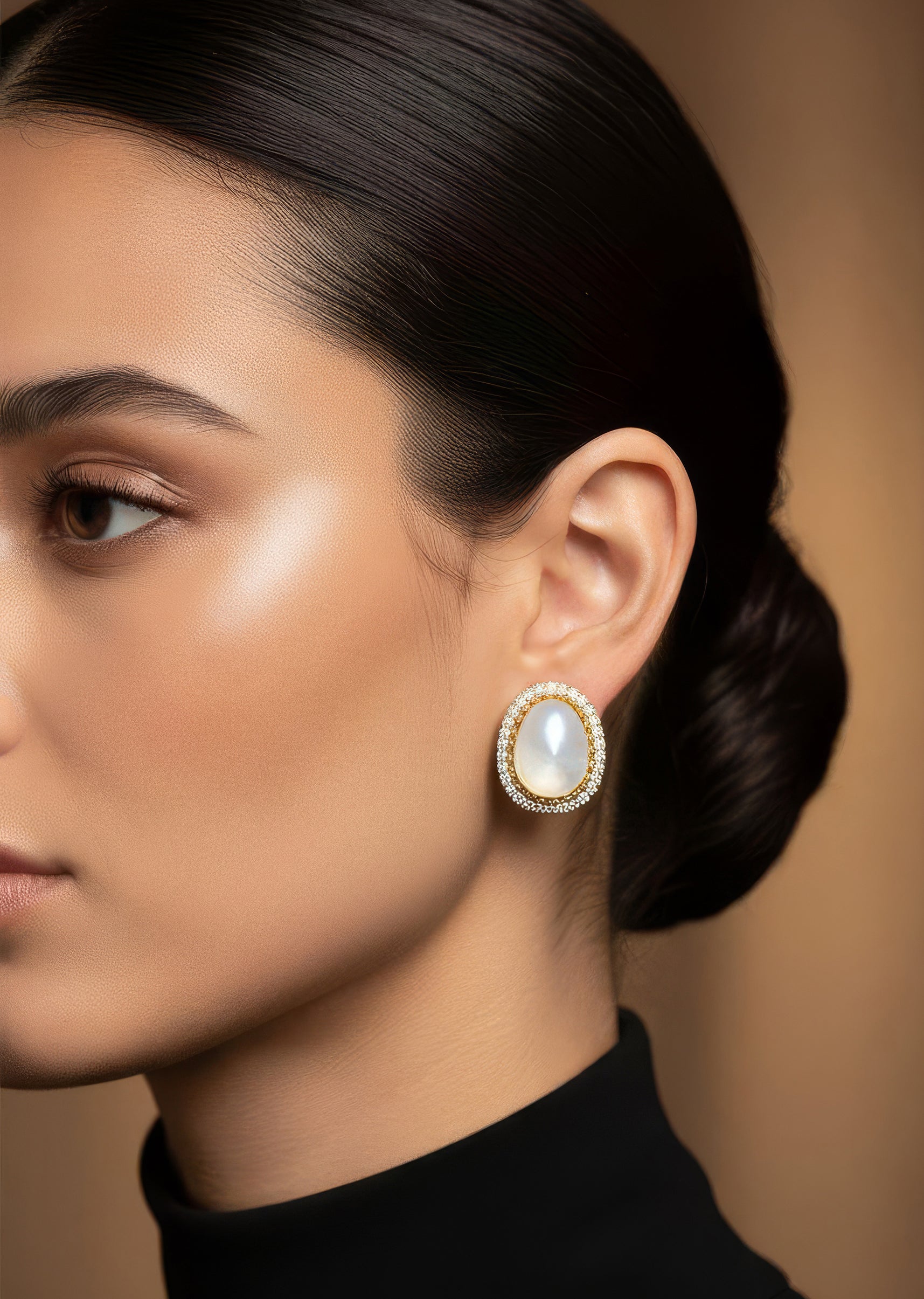 These gold and white earrings feature delicate polki inspired detailing that brings a soft traditional glow to any festive look. Perfect for pooja ceremonies and wedding functions, they offer an elegant charm suited for guests seeking a refined finishing touch. Their versatile silhouette pairs beautifully with sarees, lehengas, and classic ethnic ensembles, making them an effortless addition to celebration ready styling. Awarded as the Most Trusted Brand, we're delivering styles you love, just as promised.