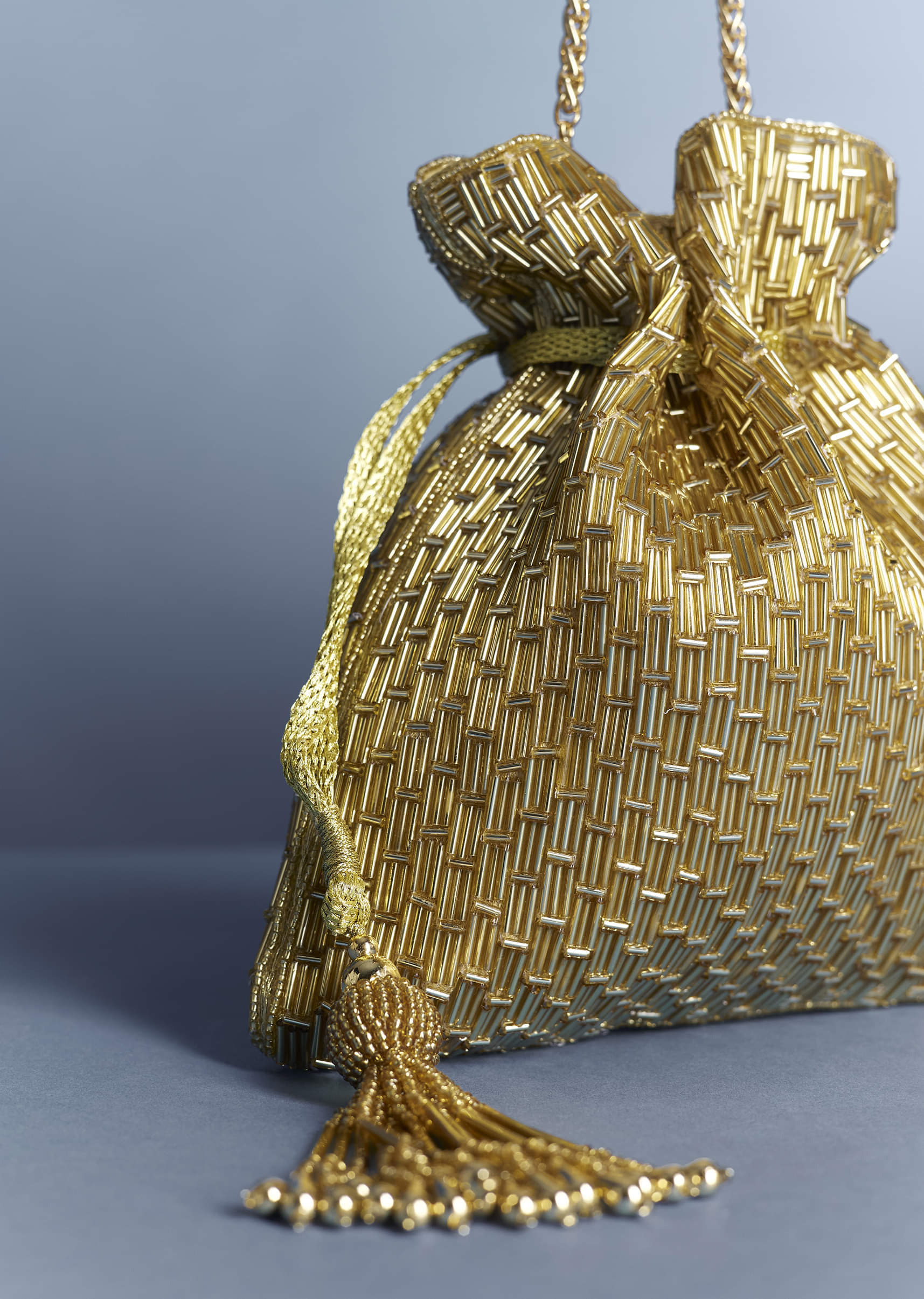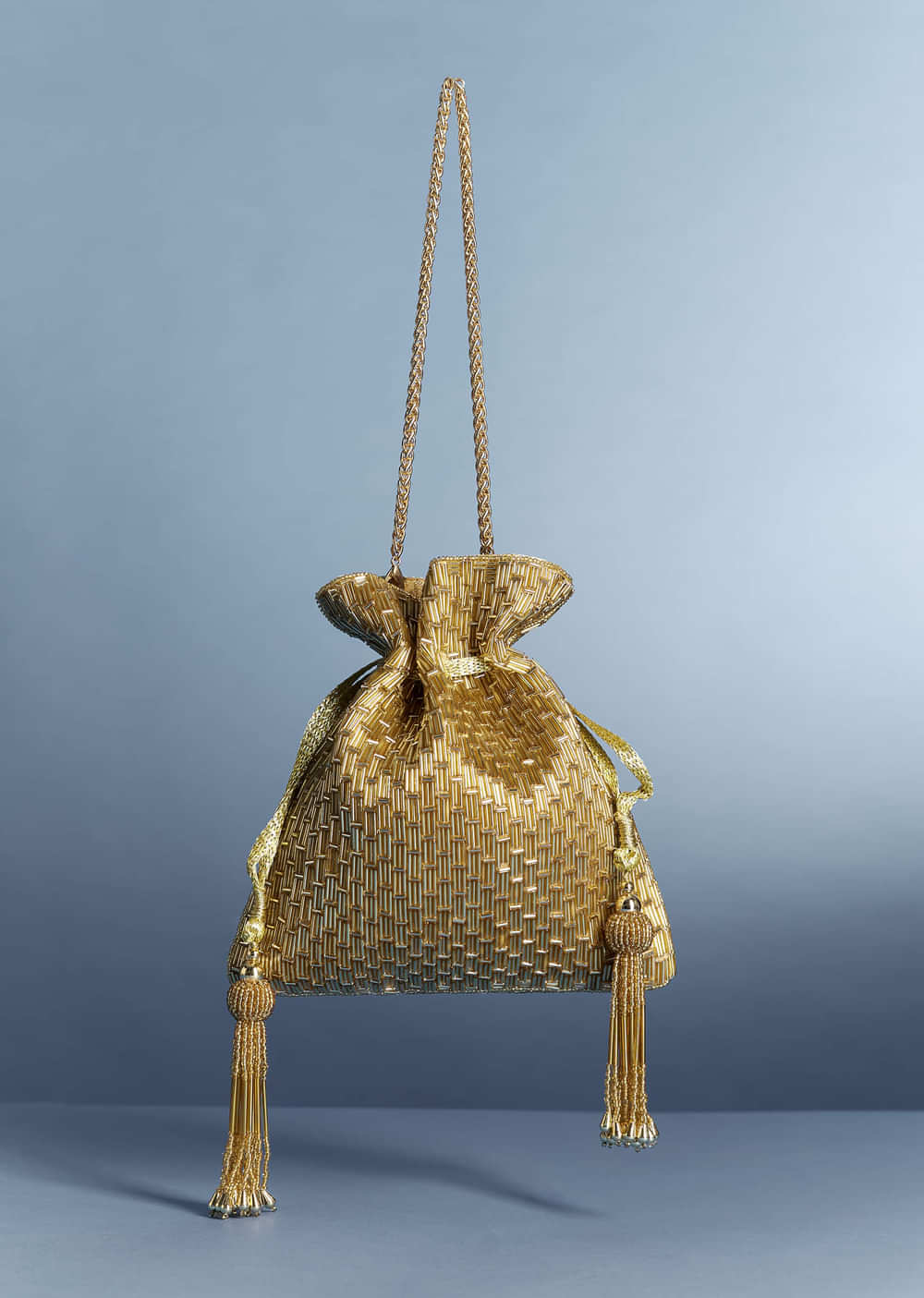 Handcrafted potli featuring intricate golden beadwork and elegant tassel details. A perfect blend of tradition and glam for weddings and festive occasions. Awarded as the Most Trusted Brand, we're delivering styles you love, just as promised.