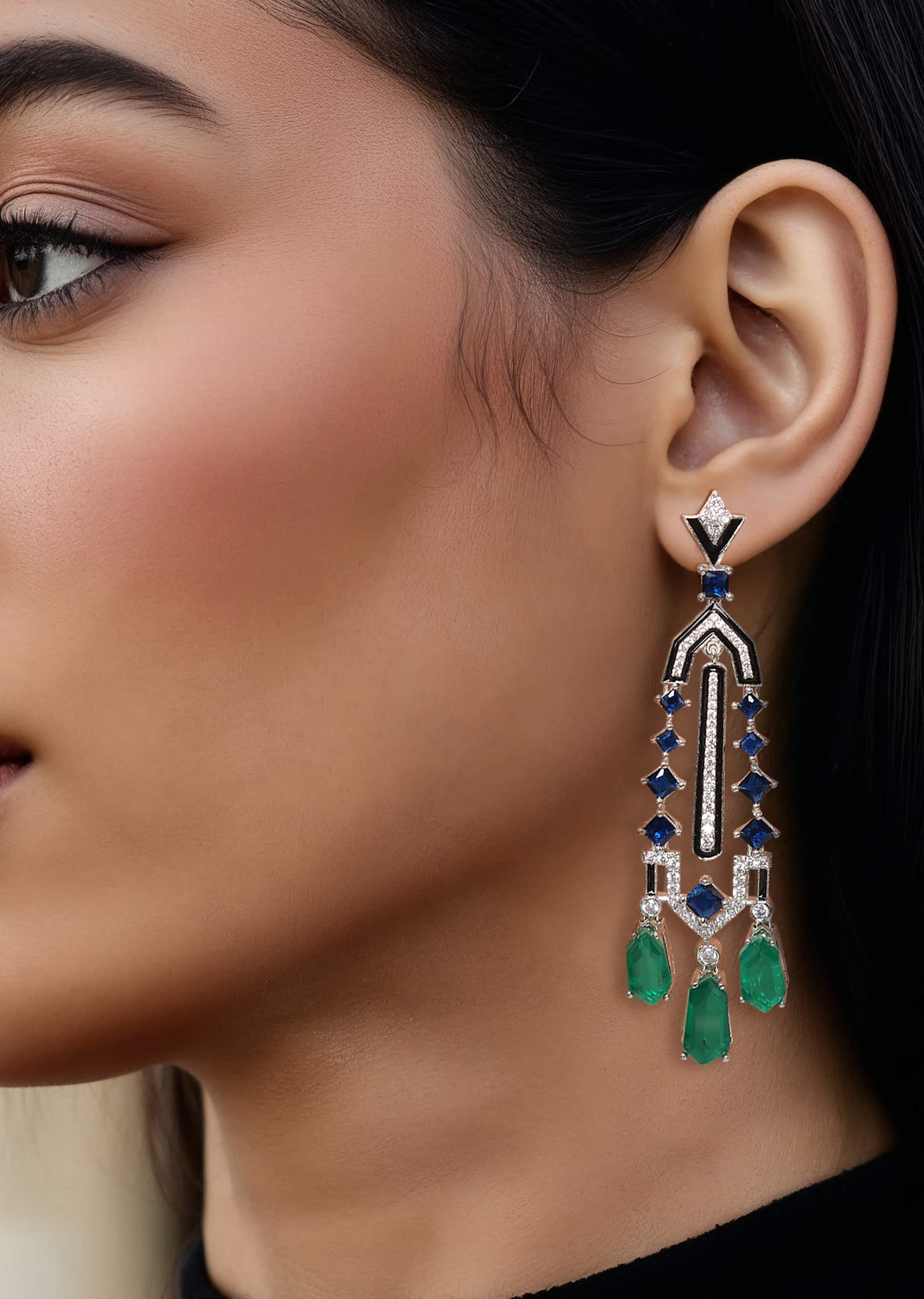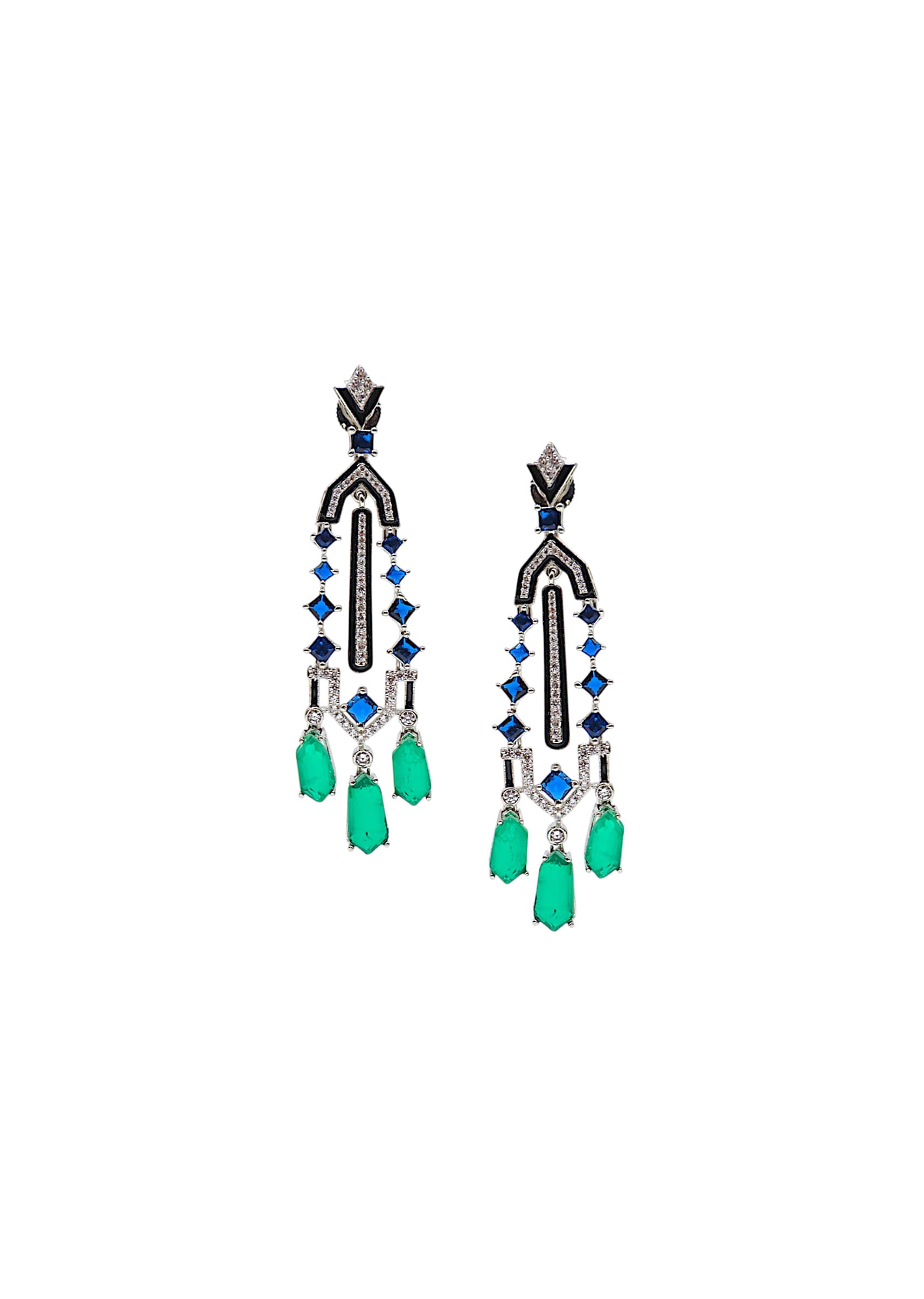 A pair of green and black fusion drop earrings featuring intricate design and vibrant contrasting stones, blending contemporary style with traditional charm. Perfect for adding a bold, elegant touch to... More Product Details