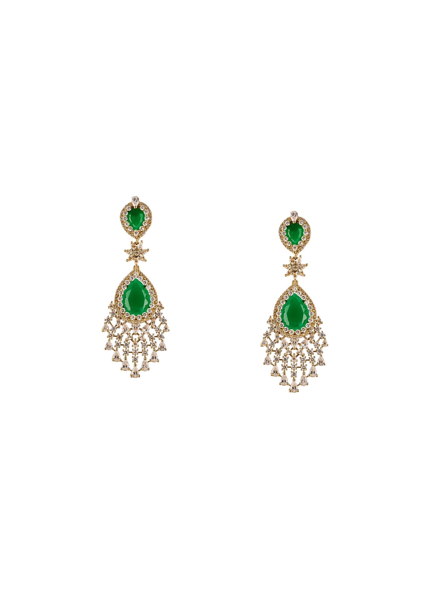 Rich and regal in appeal, this gold and green CZ diamond look necklace set captures timeless elegance with a touch of royal charm. The deep green stones paired with a... More Product Details