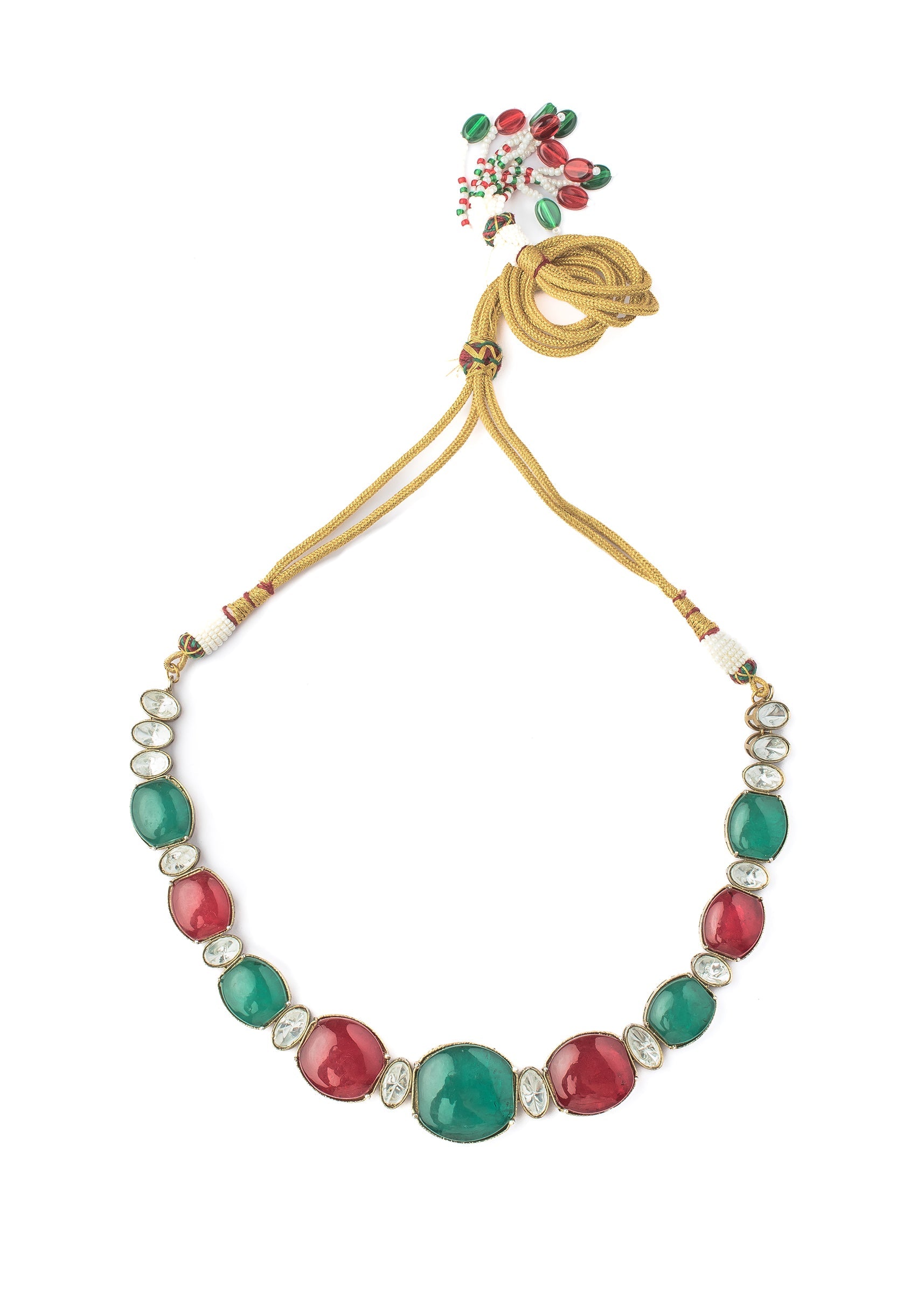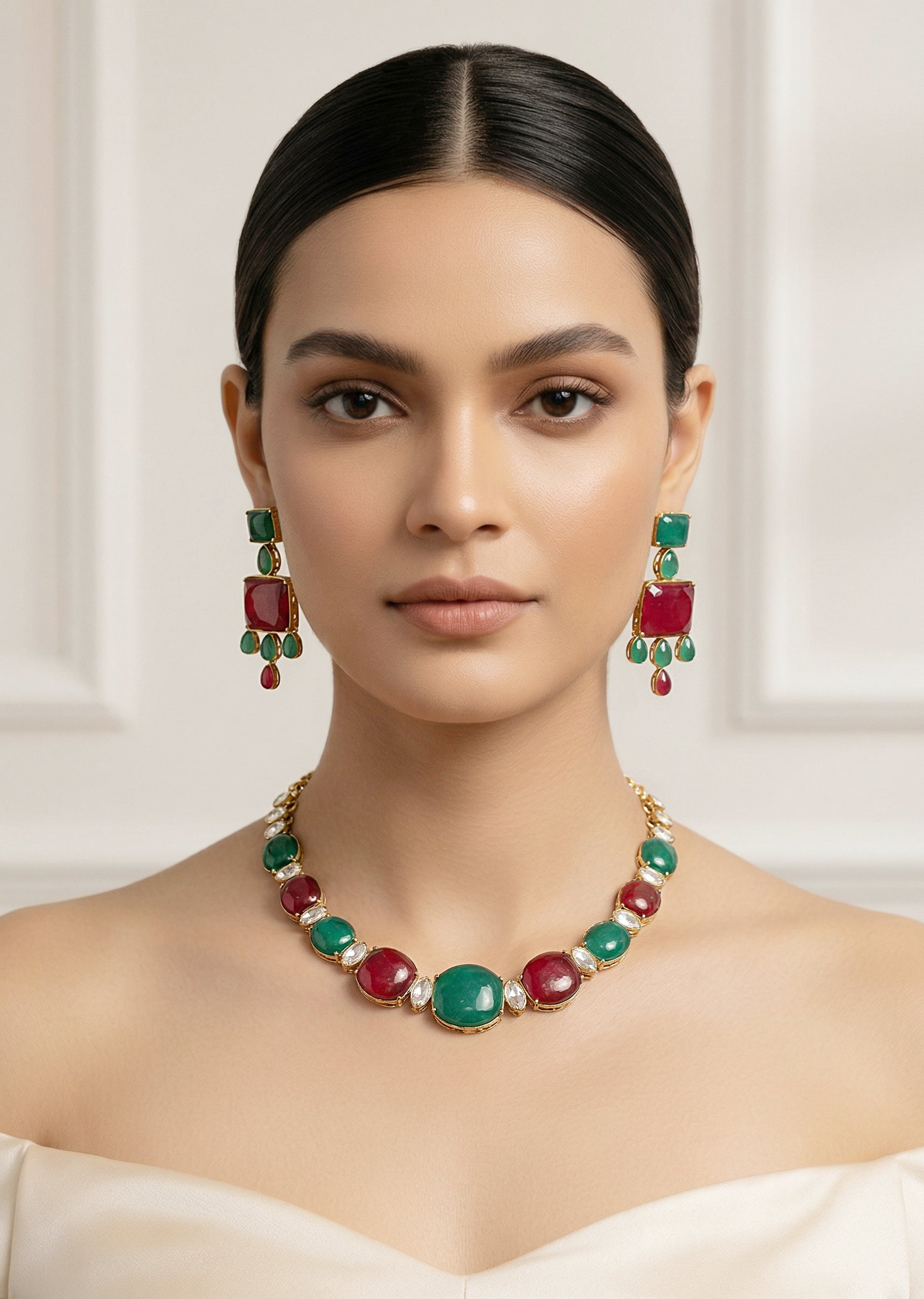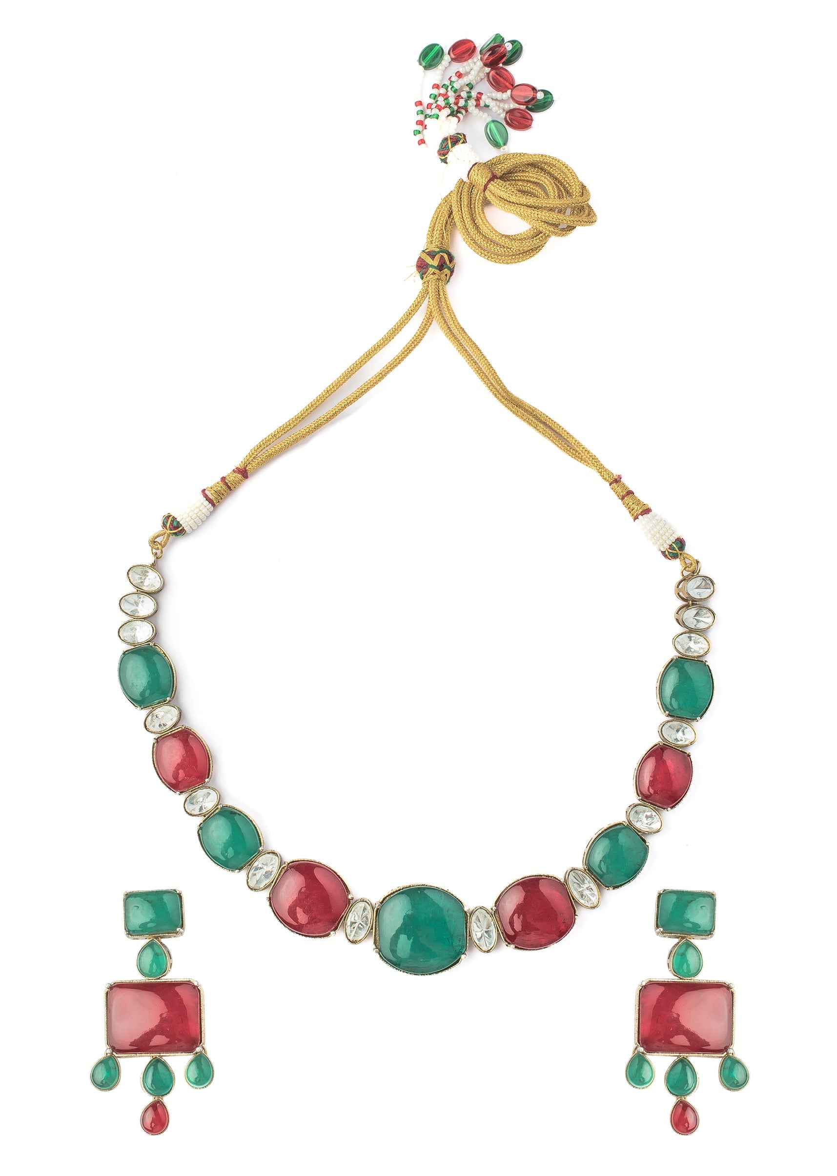 Green And Red Contemporary Choker Necklace Set With Earrings