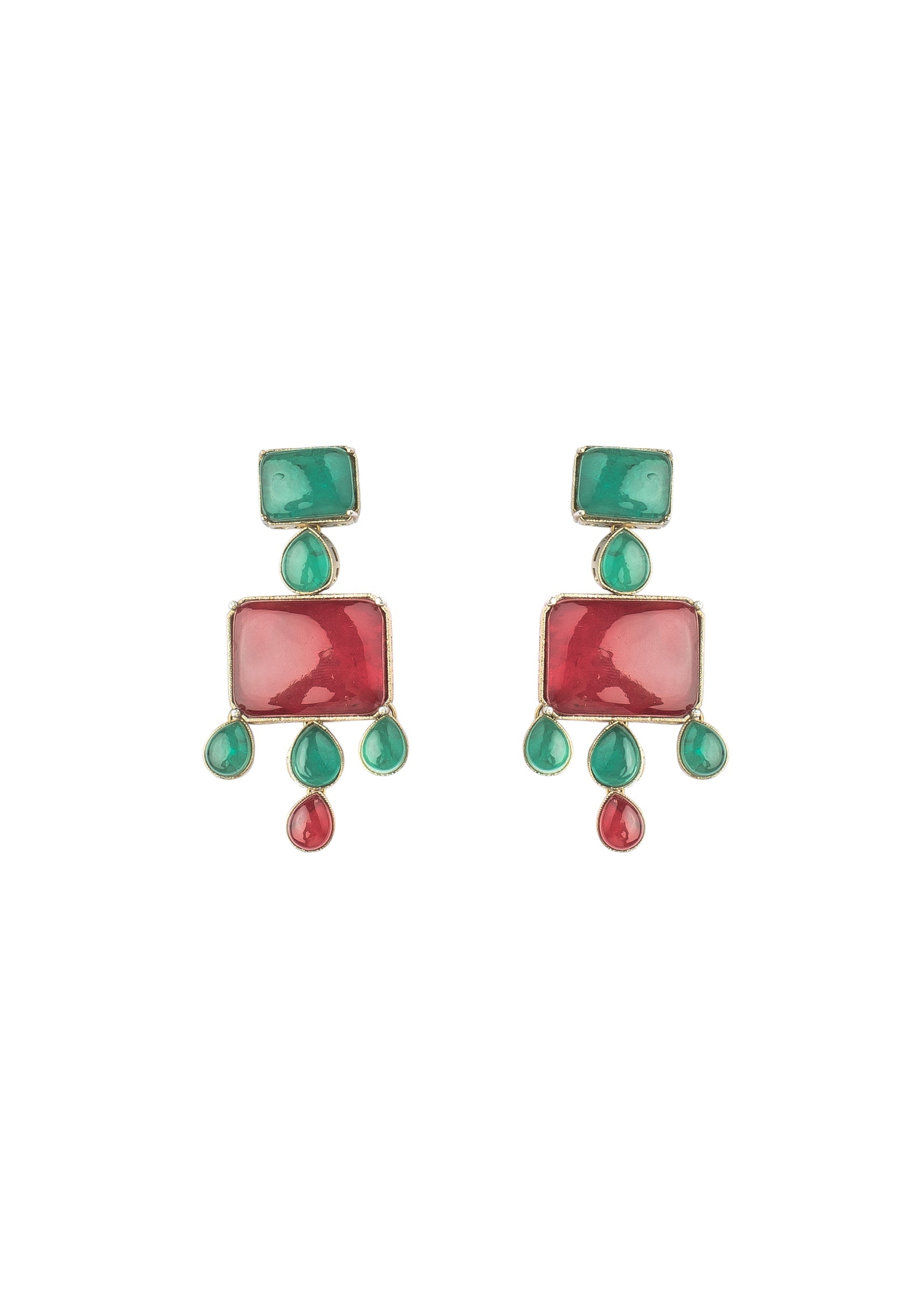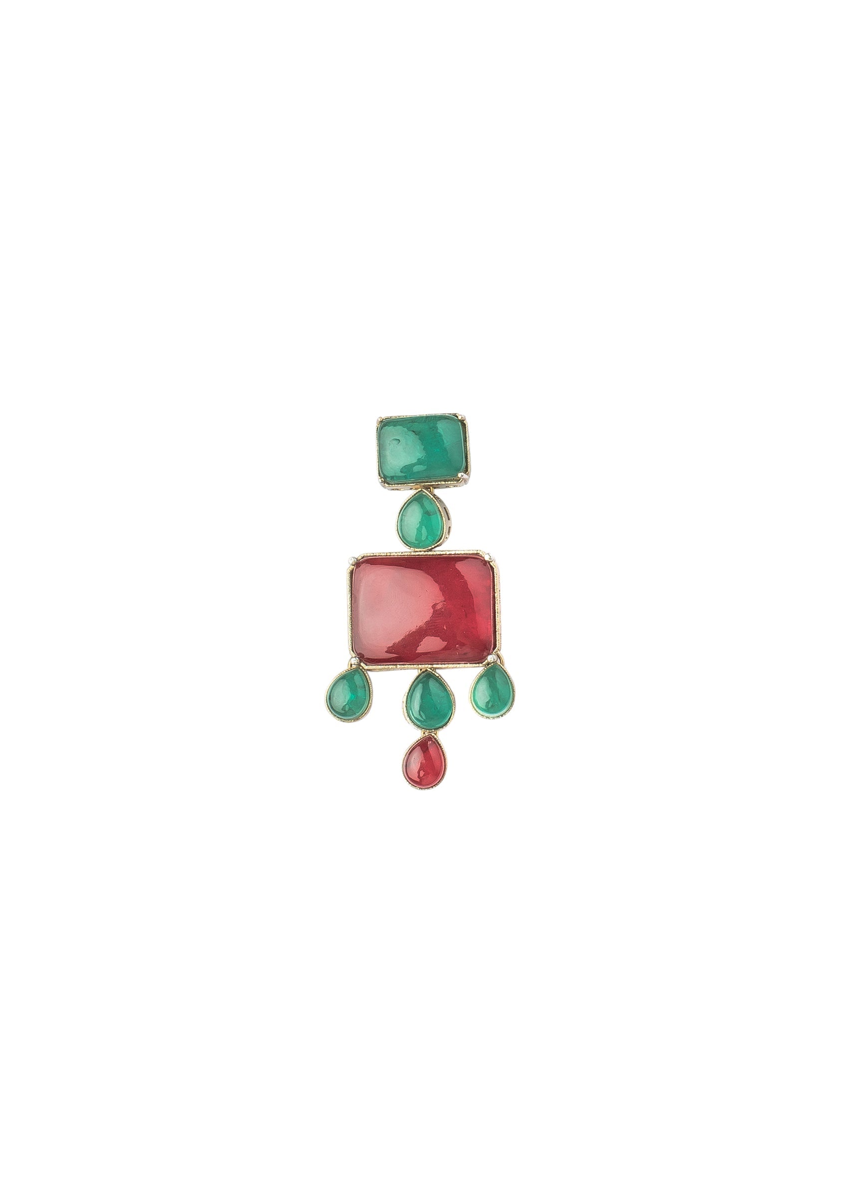 This stunning jewelry set includes a vibrant necklace with red, green & clear gemstones, complemented by matching drop earrings. Perfect for festive occasions, it exudes elegance and charm. Product dimensions... More Product Details