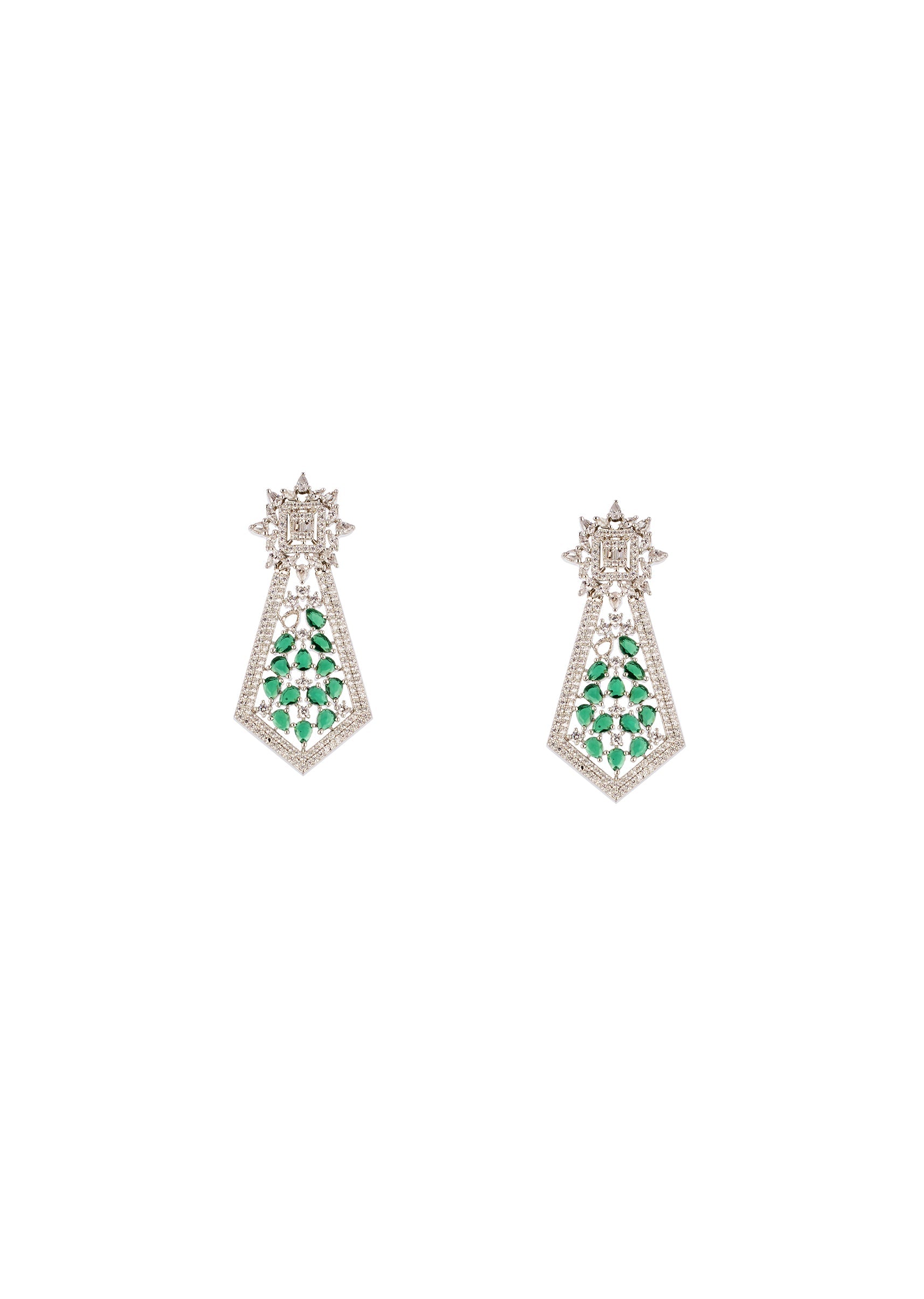 Green and Silver Anti Tarnish Rhodium Plated Long Necklace Set with CZ Diamond