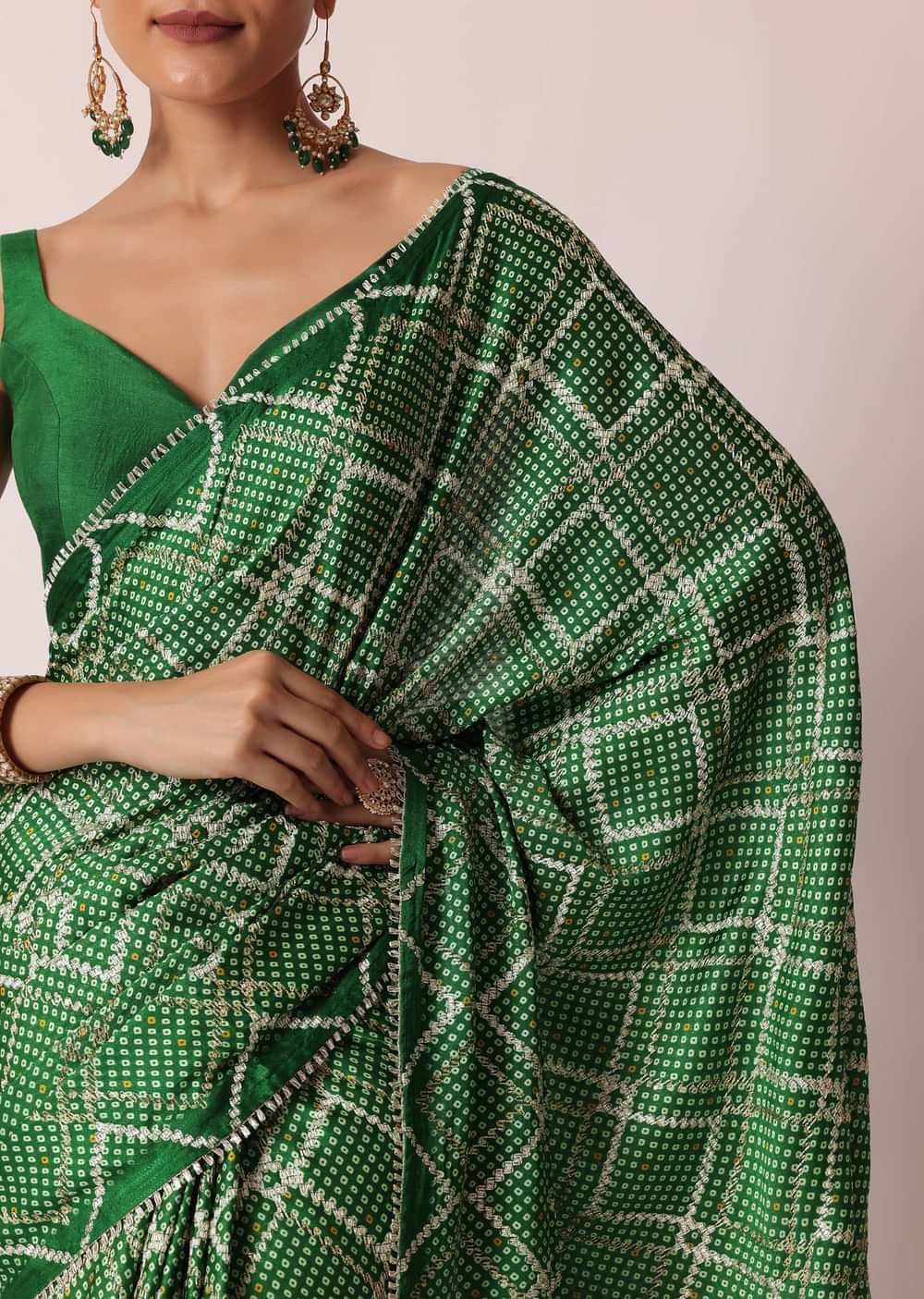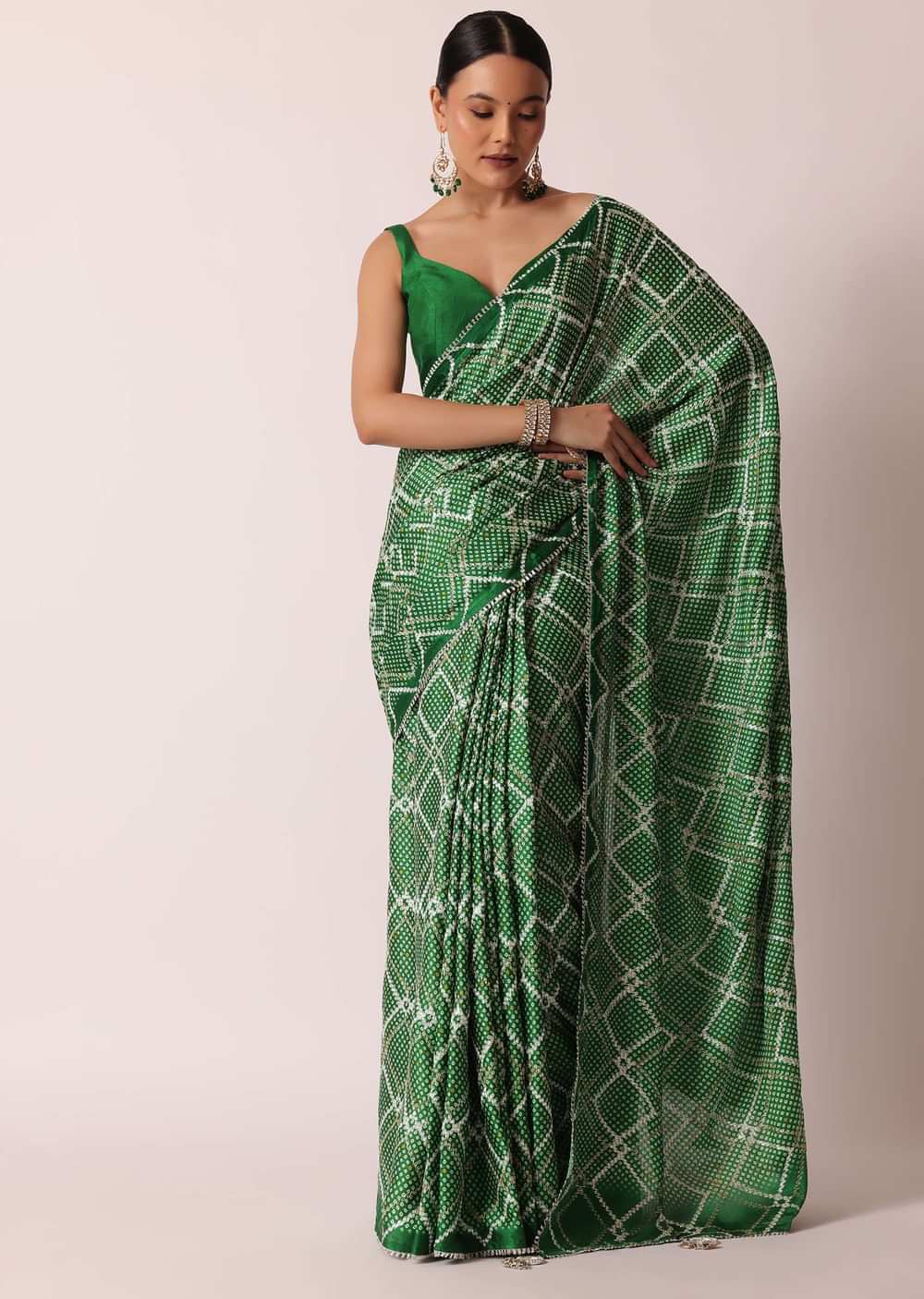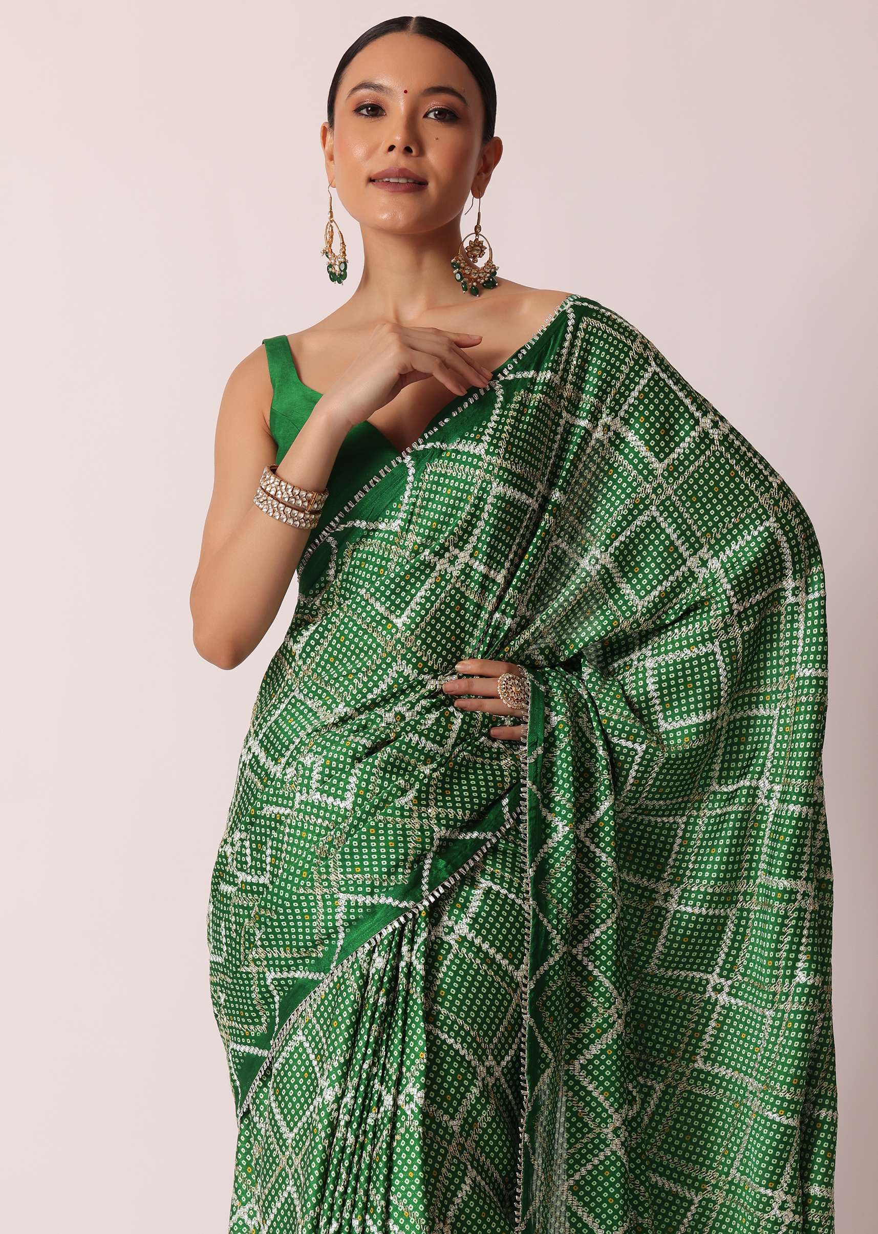 Green Bandhani Silk Saree With Gota Work And Unstitched Blouse Piece