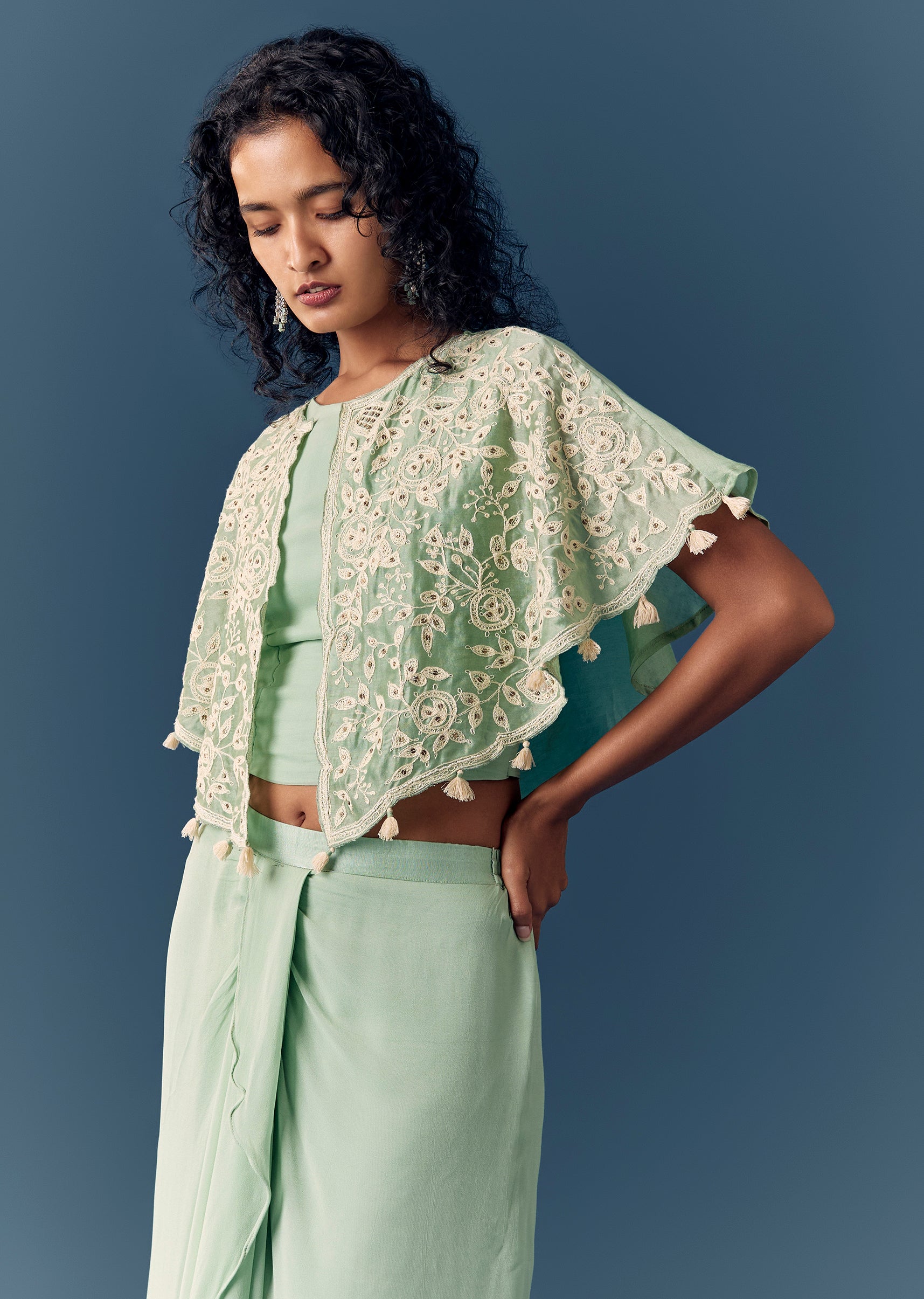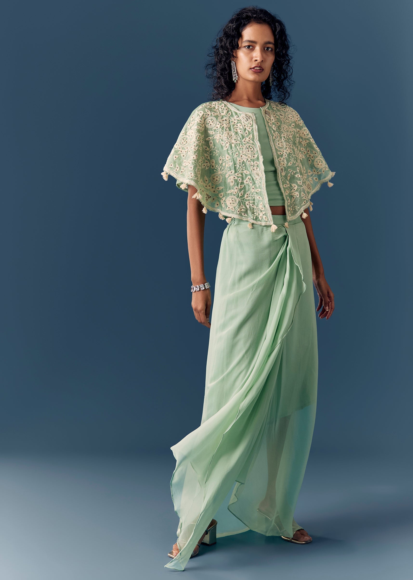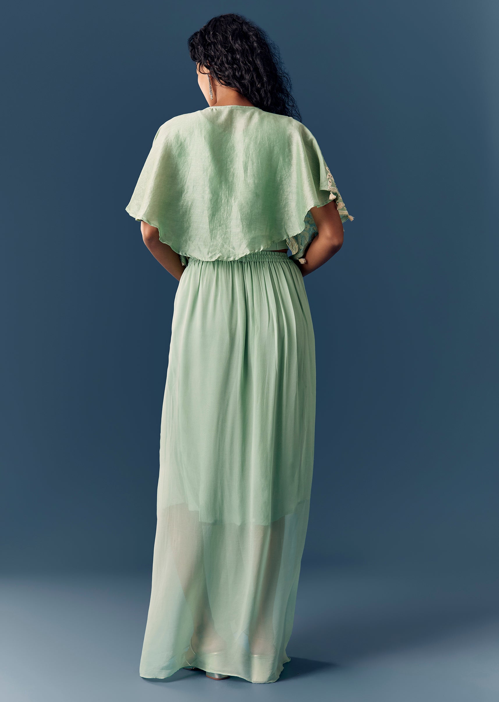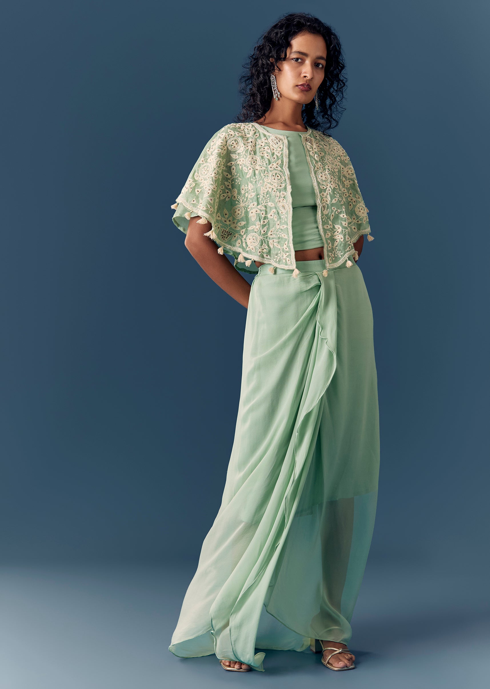 Green Cape Drape Skirt Set