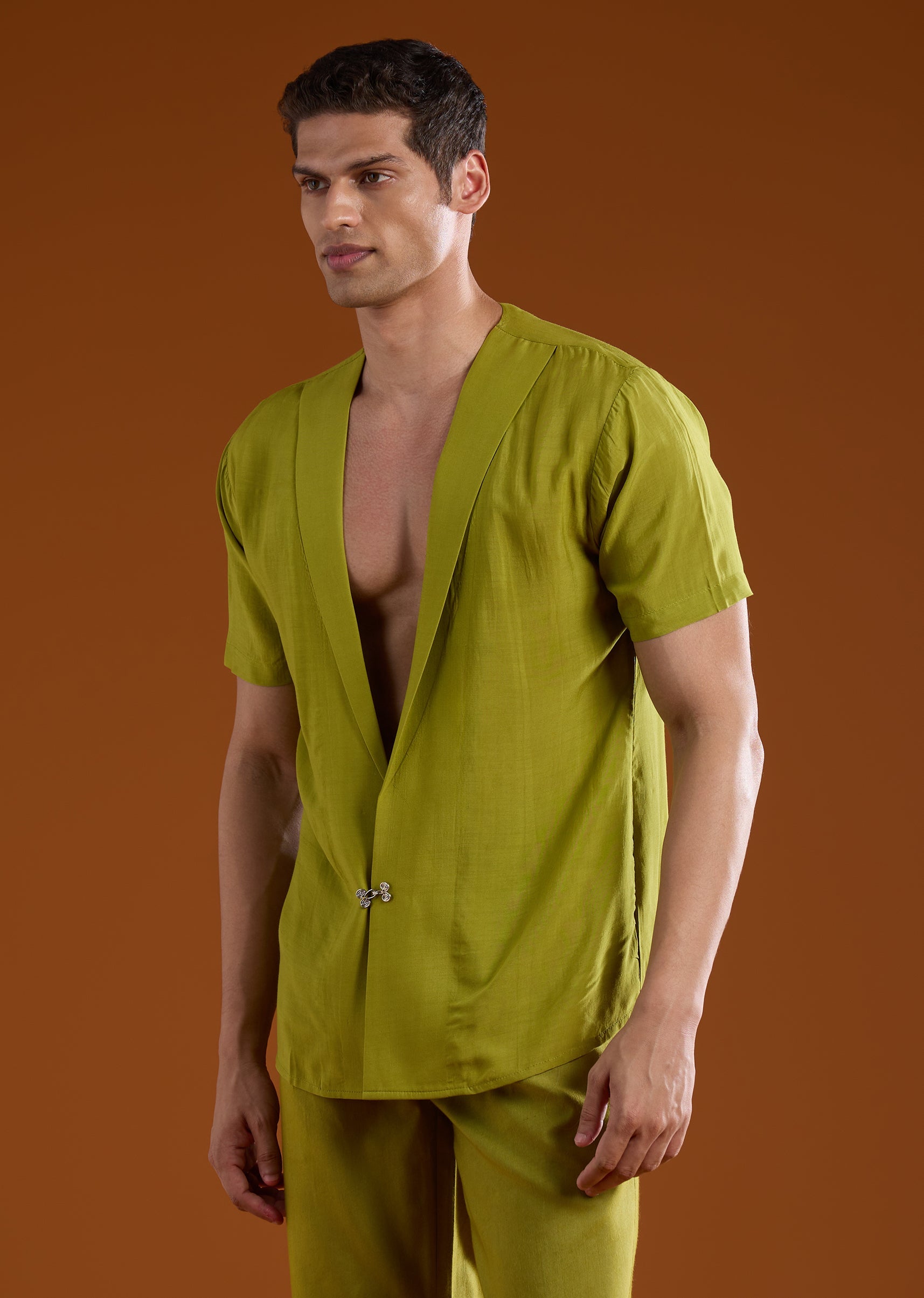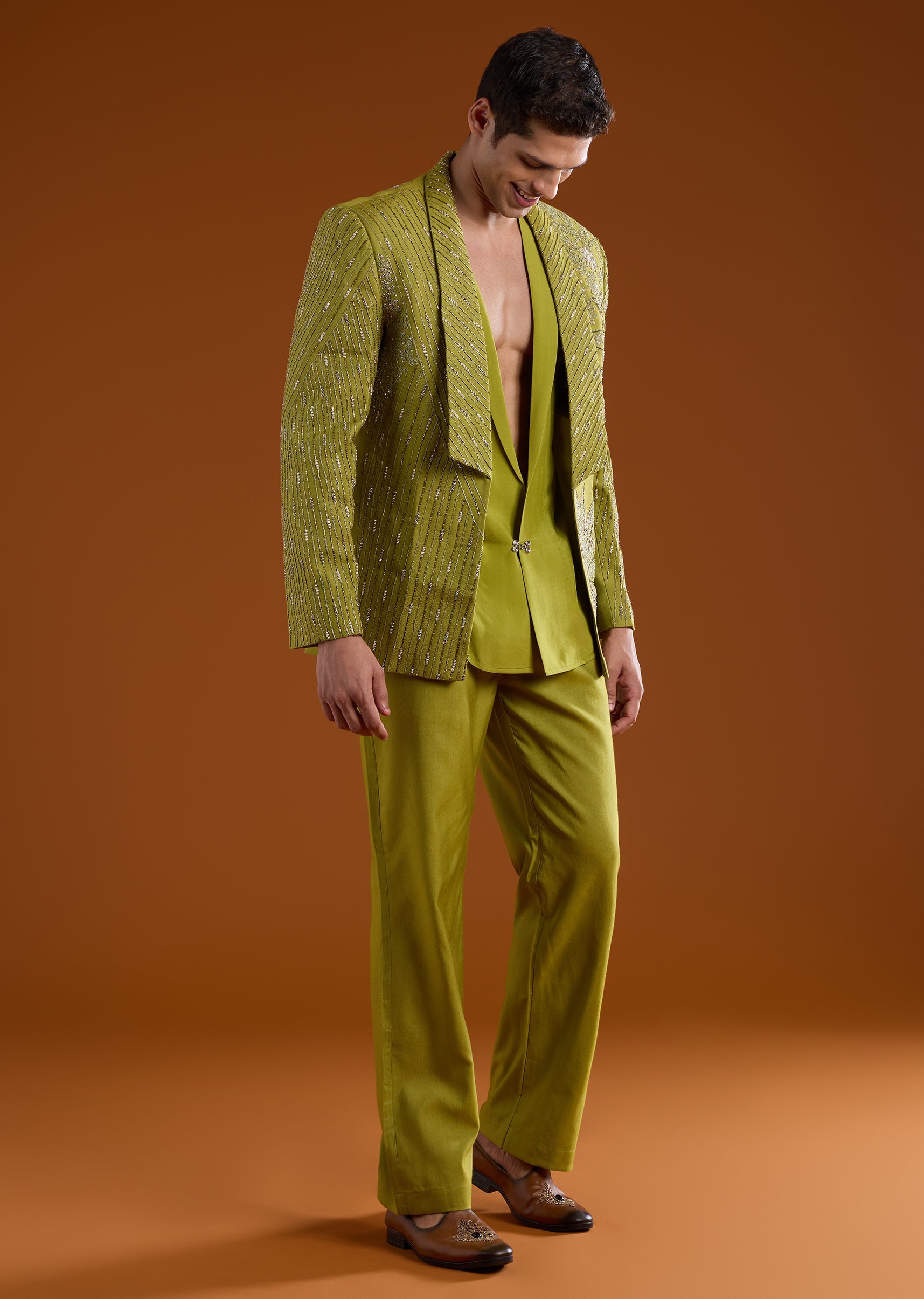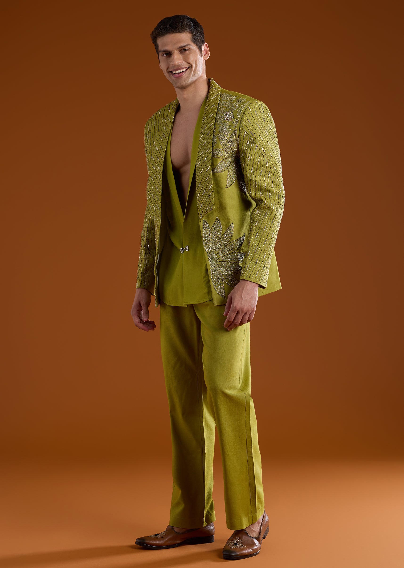 Green Chanderi Embroidered Tuxedo Set with Dori Work