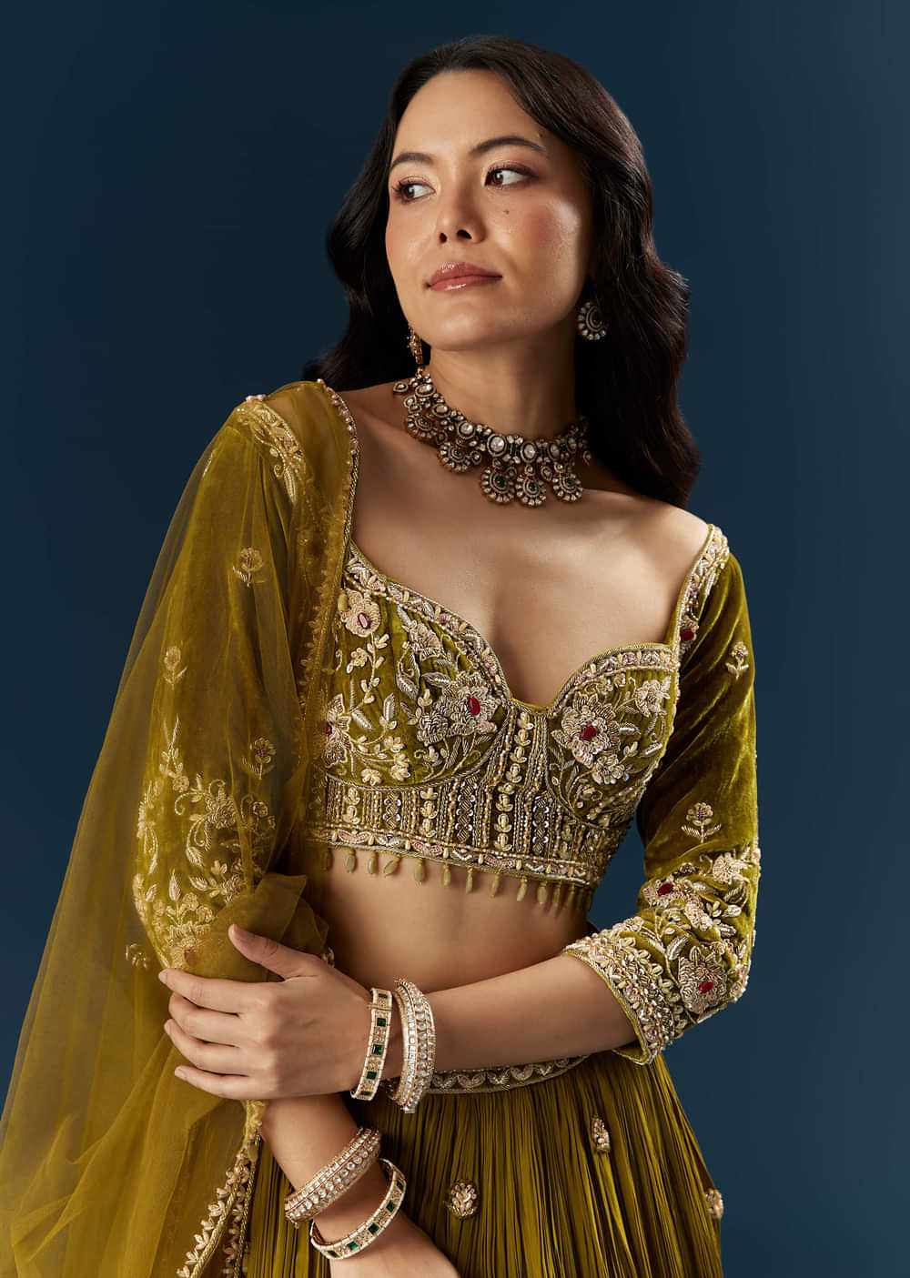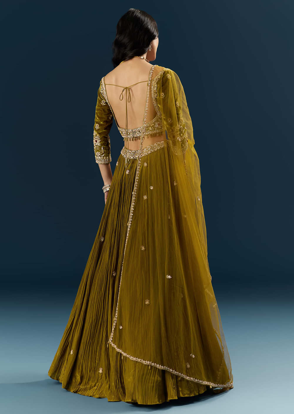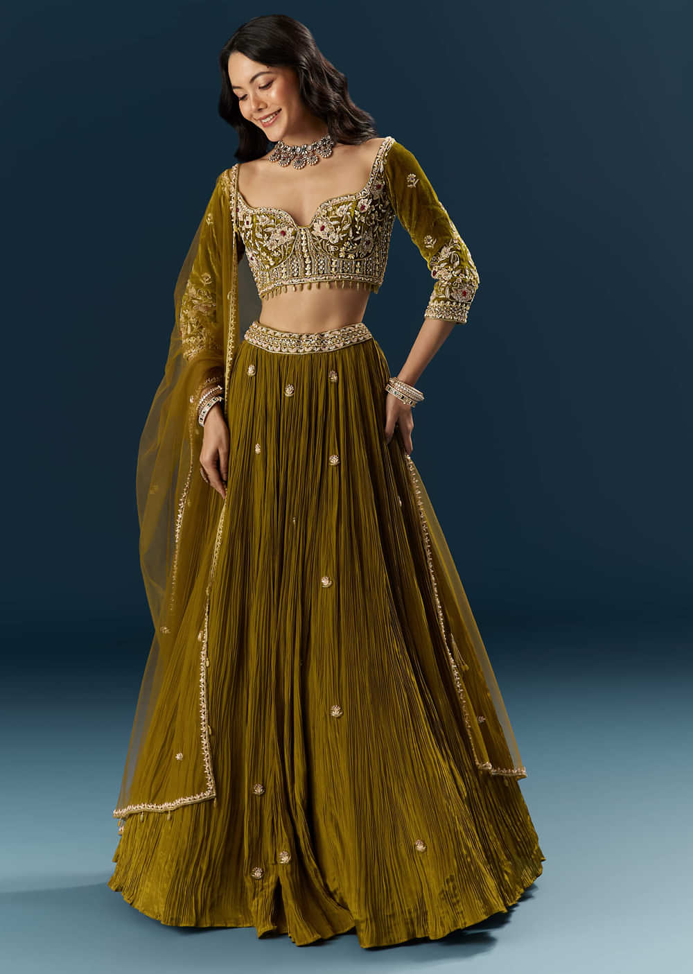 Green Crepe Bridal Lehenga With Cutdana Embroidery