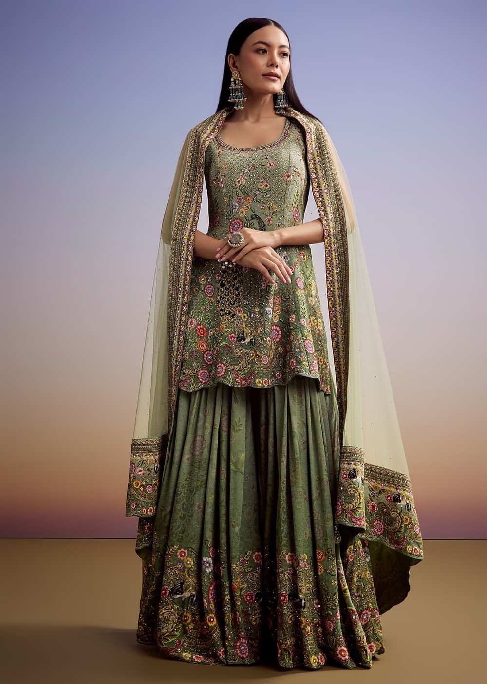 Infused with summery charm, this green palazzo suit in crepe fabric is both playful and graceful. The kurta features a floral print highlighted with subtle stone work, creating an easy... More Product Details