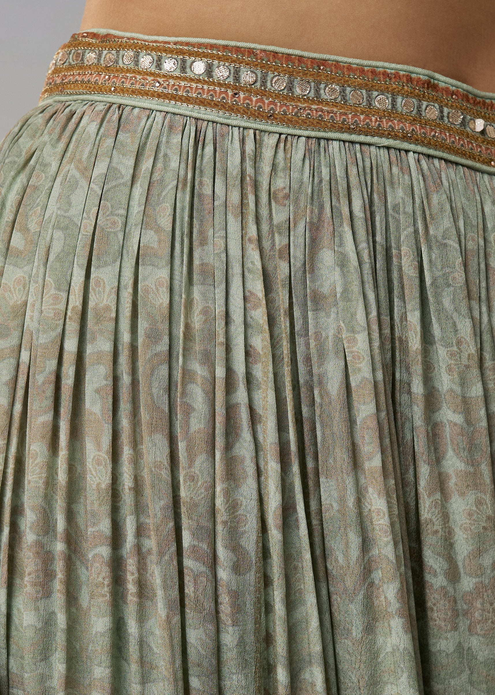 Green Crepe Palazzo Suits with Gotta Lace Work