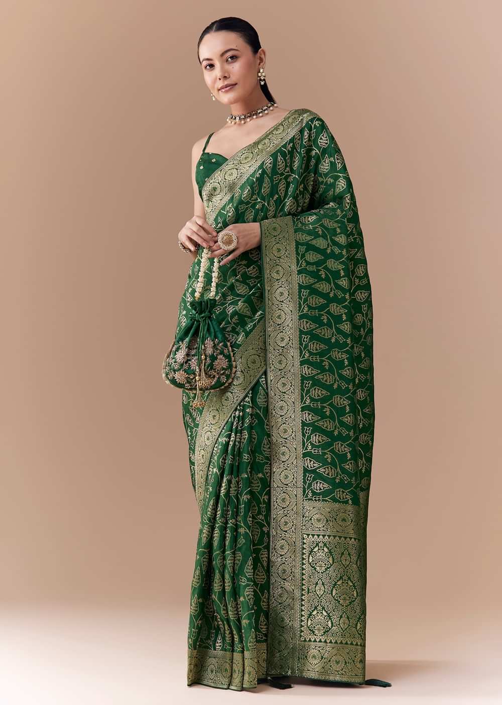 Step into classic elegance with this green dola silk saree, featuring an intricately woven jaal pattern all over and complemented by a beautifully crafted floral border and pallu. The rich texture of dola silk adds a luxurious sheen, making it ideal for weddings, festive occasions, or cultural celebrations. This saree perfectly captures the essence of traditional craftsmanship with timeless sophistication. Awarded as the Most Trusted Brand, we're delivering styles you love, just as promised.
