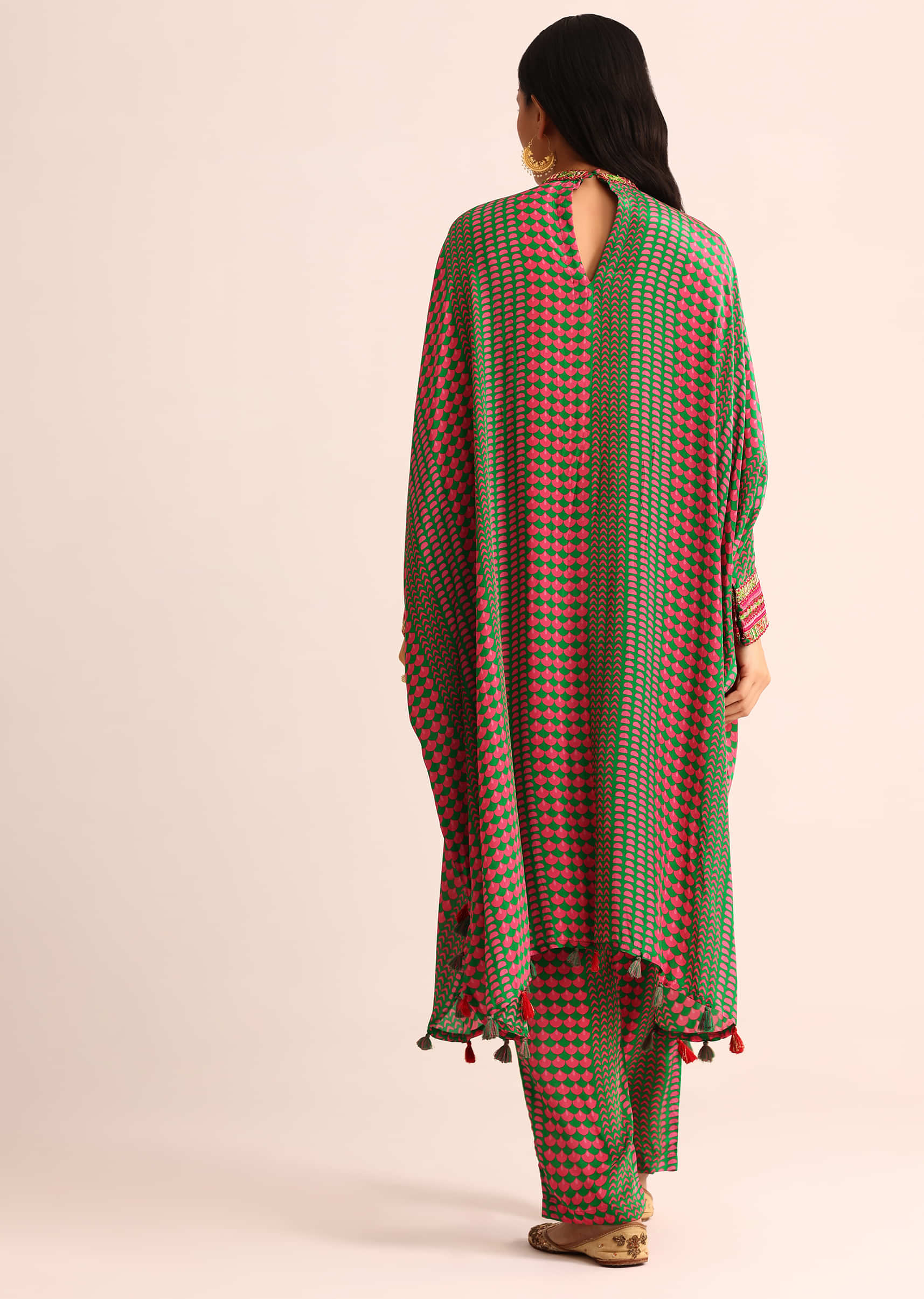 Green Embroidered Crepe Kaftan Kurti And Pant