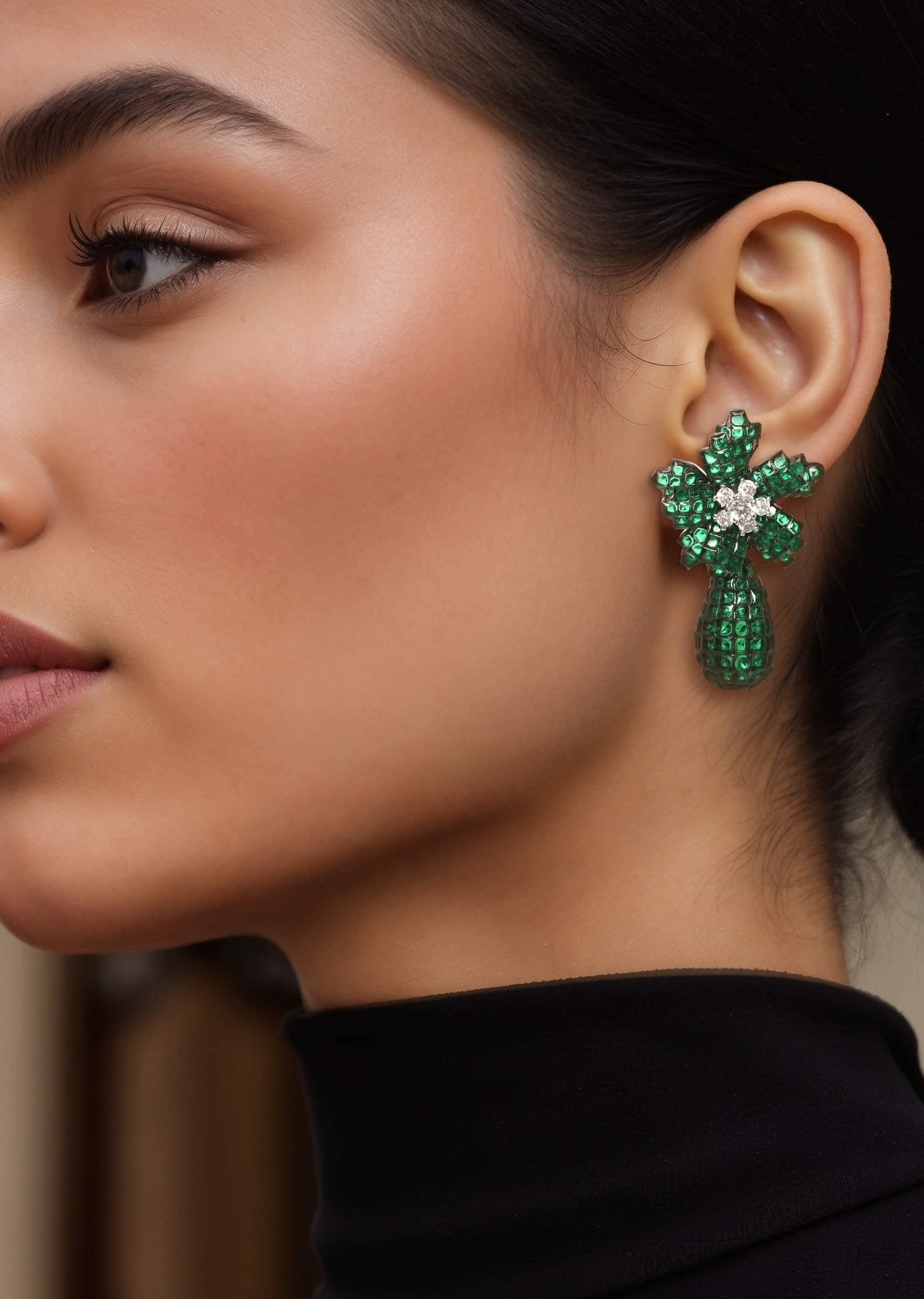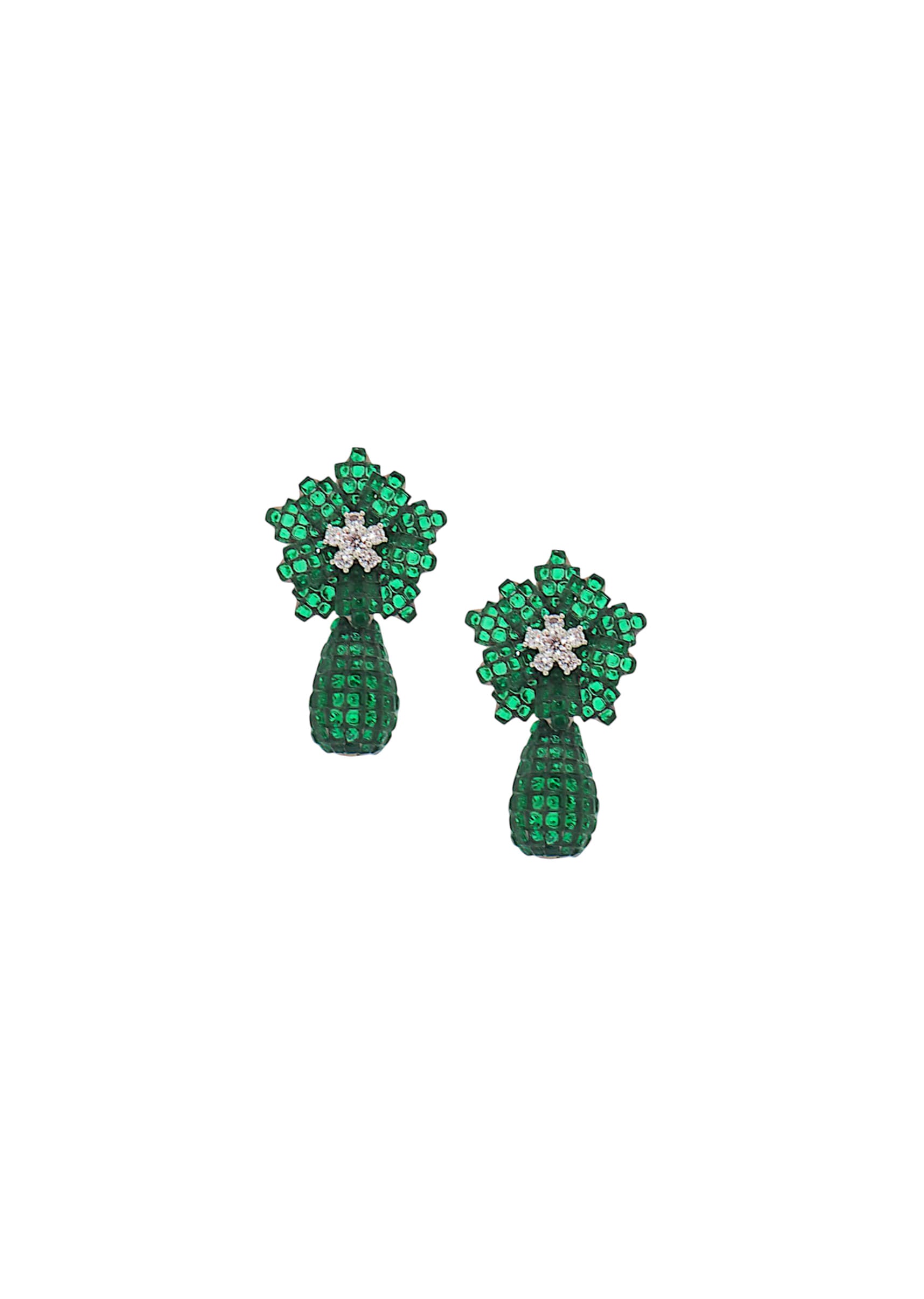 A pair of green floral drop earrings featuring intricate floral motifs and vibrant green stones, blending traditional charm with elegant design. Perfect for adding a fresh, stylish touch to bridal, festive, or ethnic ensembles. Awarded as the Most Trusted Brand, we're delivering styles you love, just as promised.