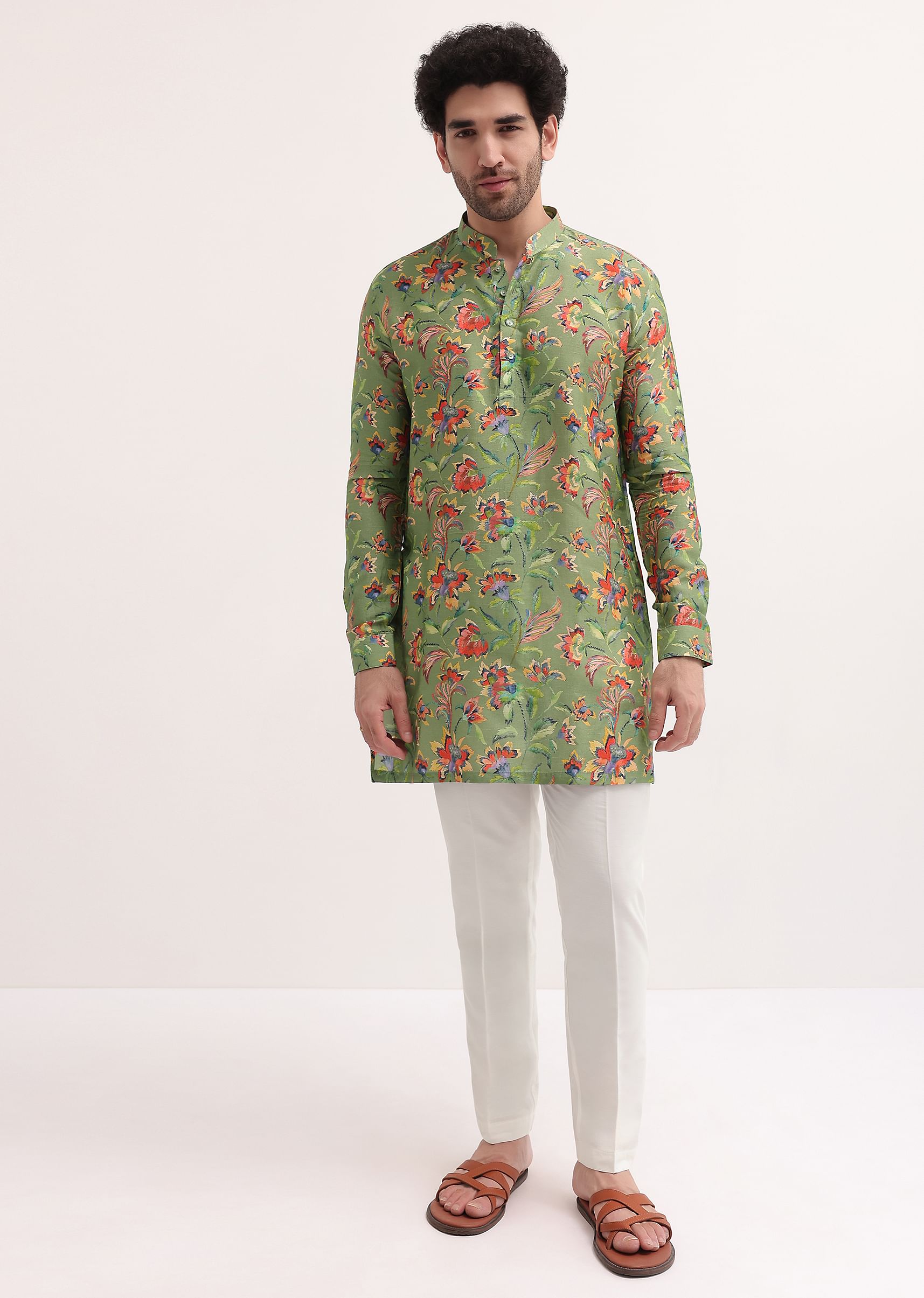 - Transform your look with our stunning green short kurta set, versatile for casual outings and poojas alike.