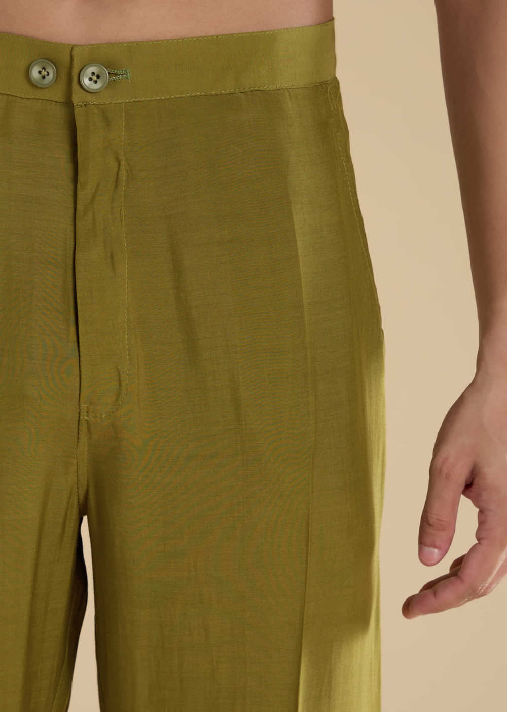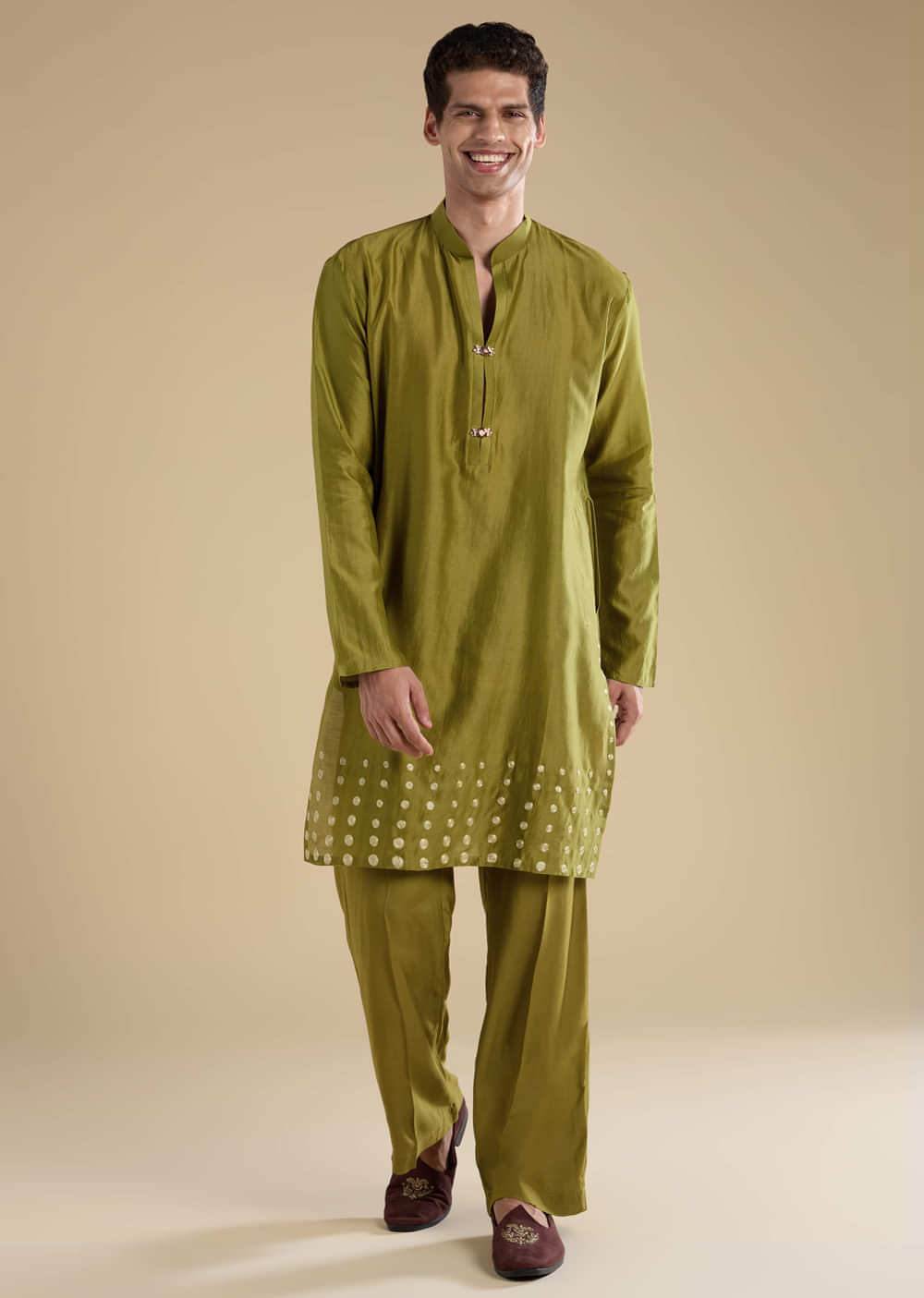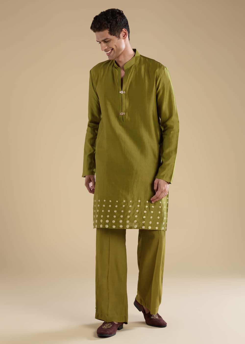 Green Foil Applique Chanderi Work Straight Mens Kurta Set