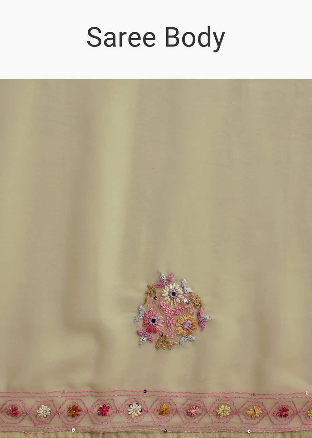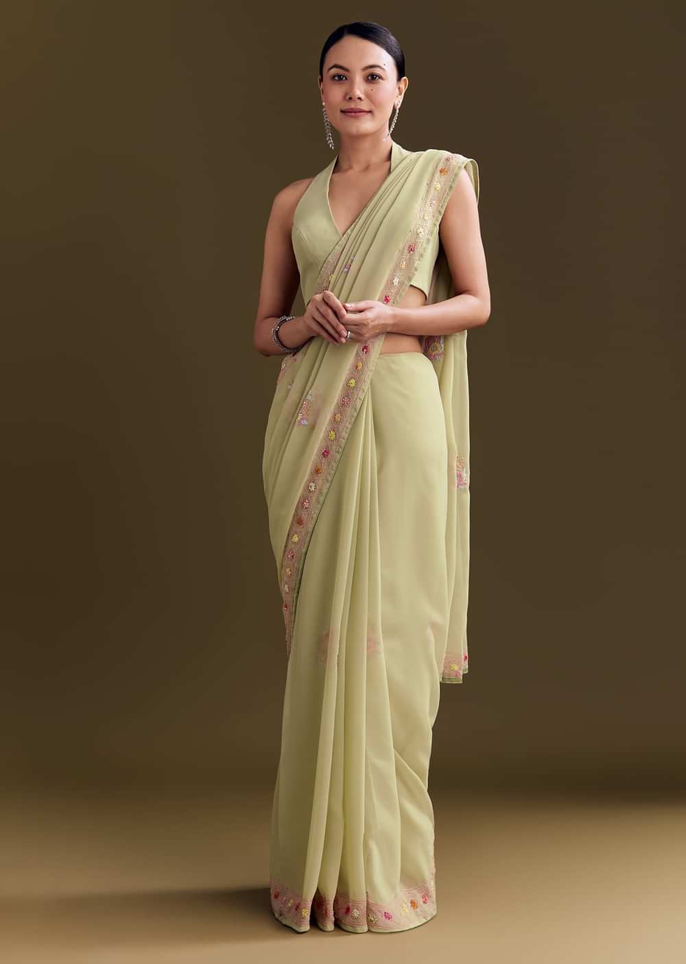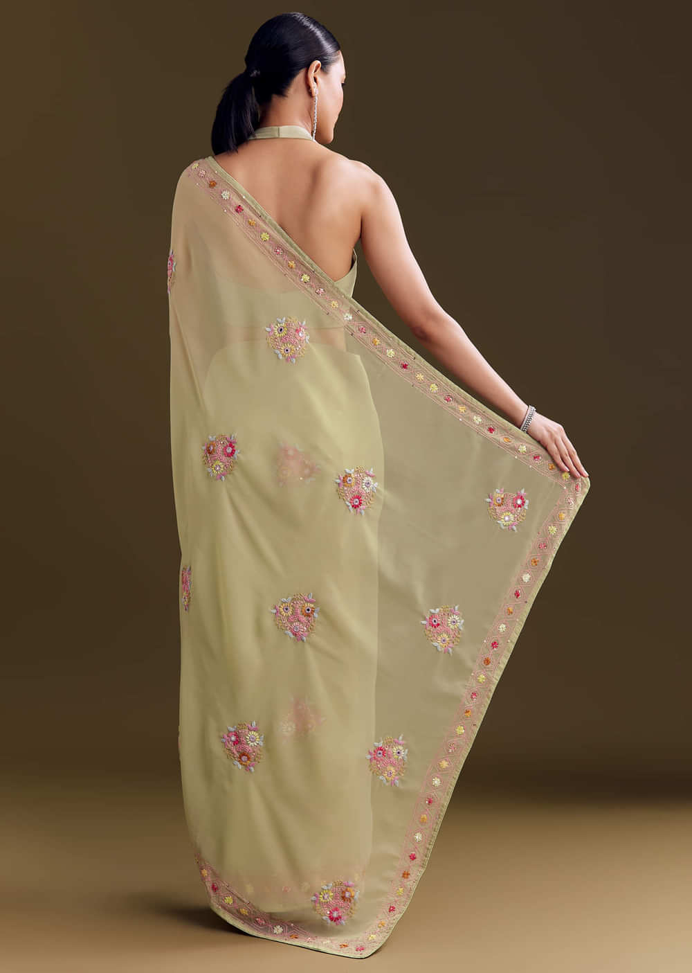 Green Georgette Saree With Kashmiri Bud Embroidery