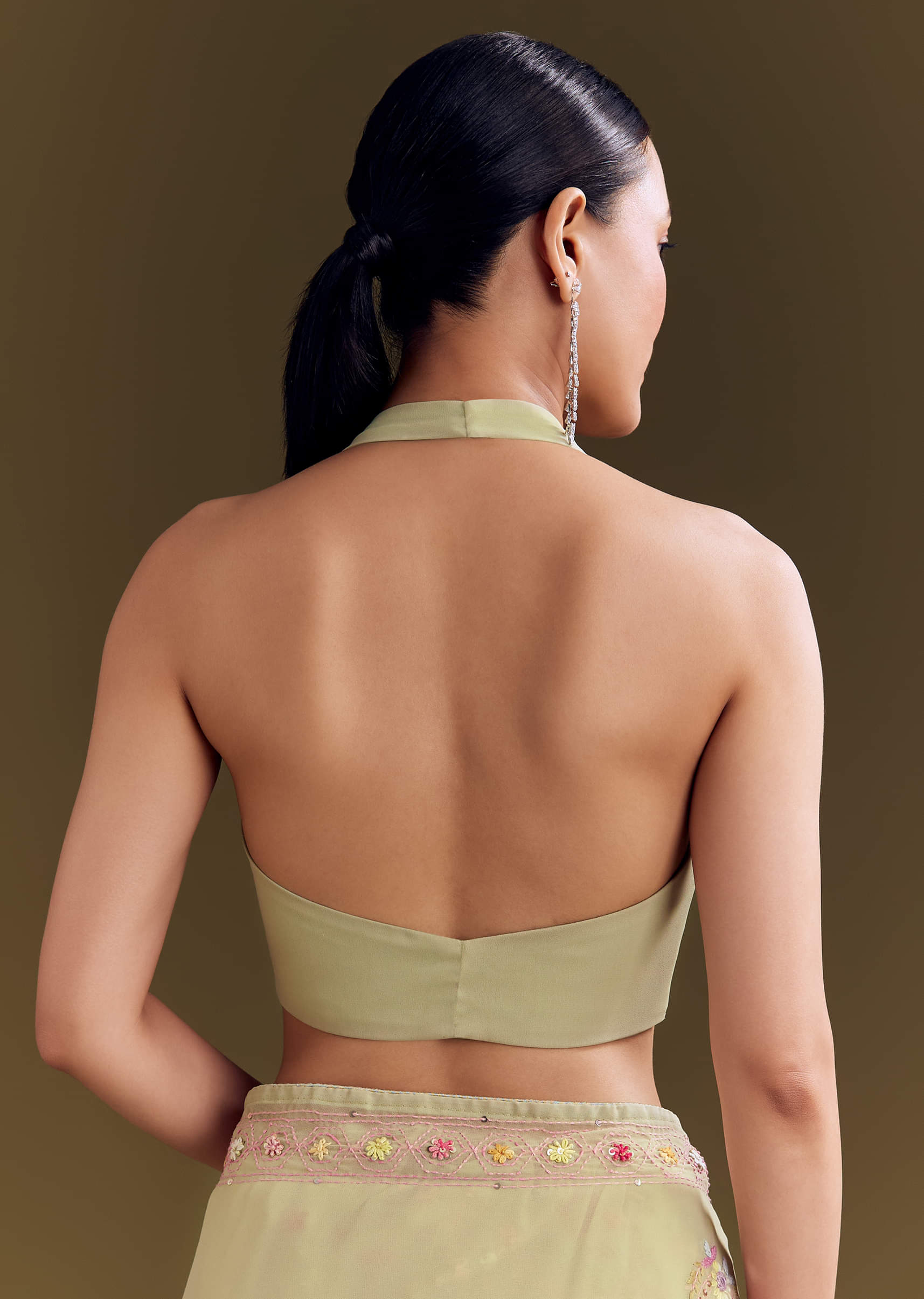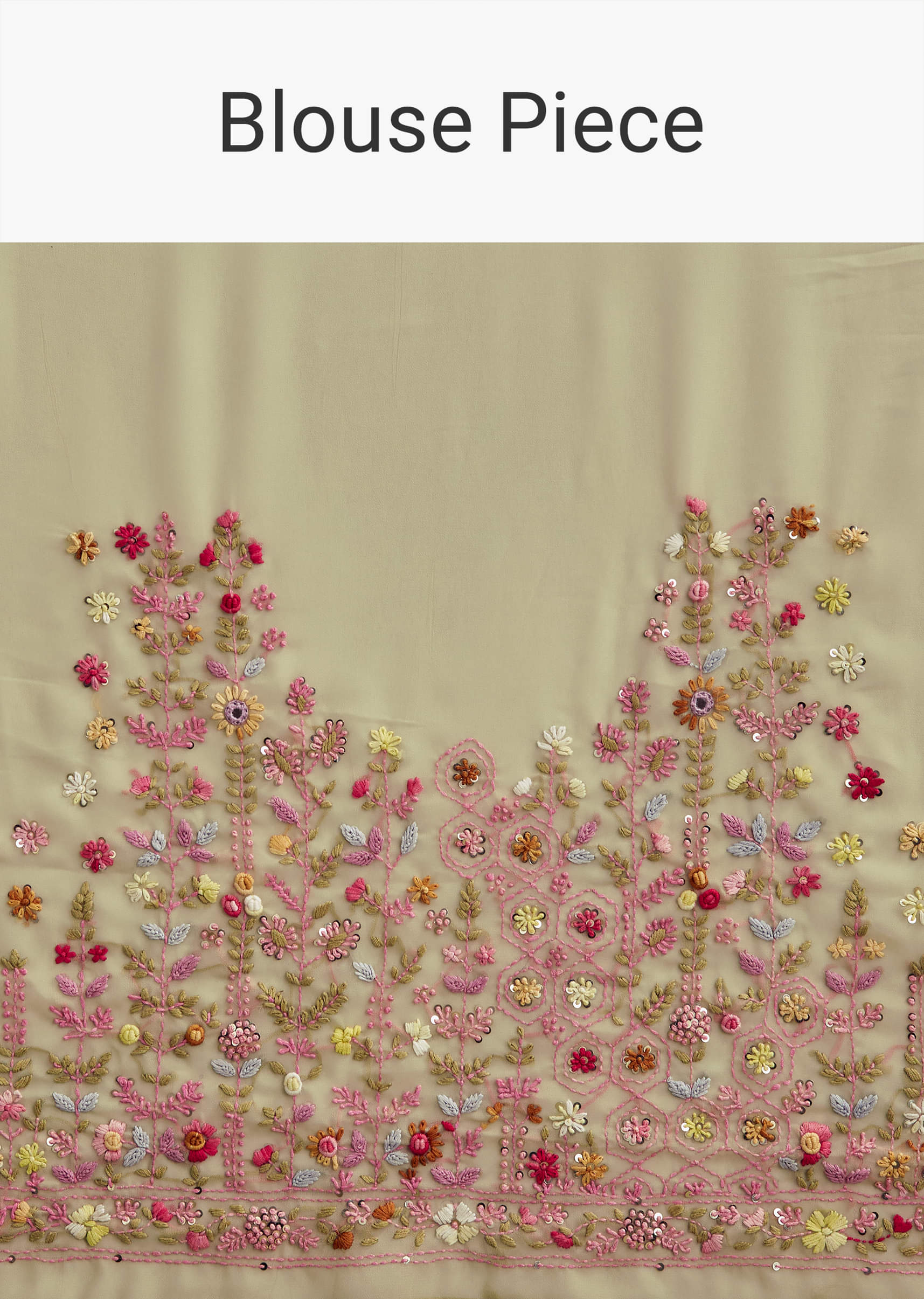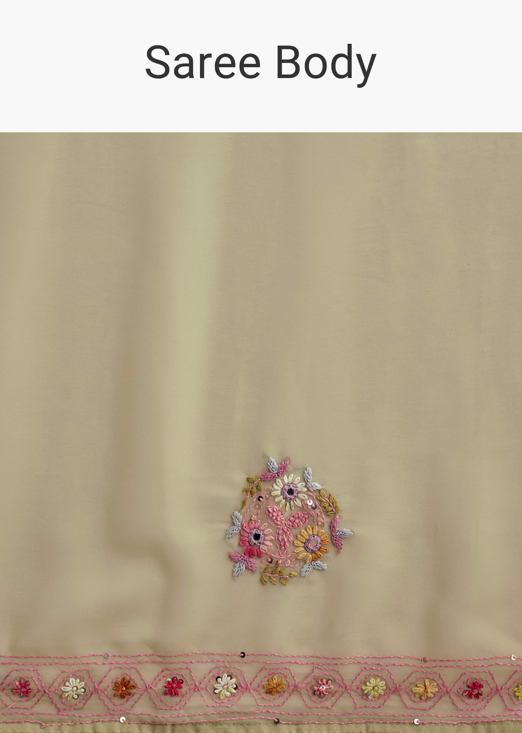 Green Georgette Saree With Kashmiri Bud Embroidery