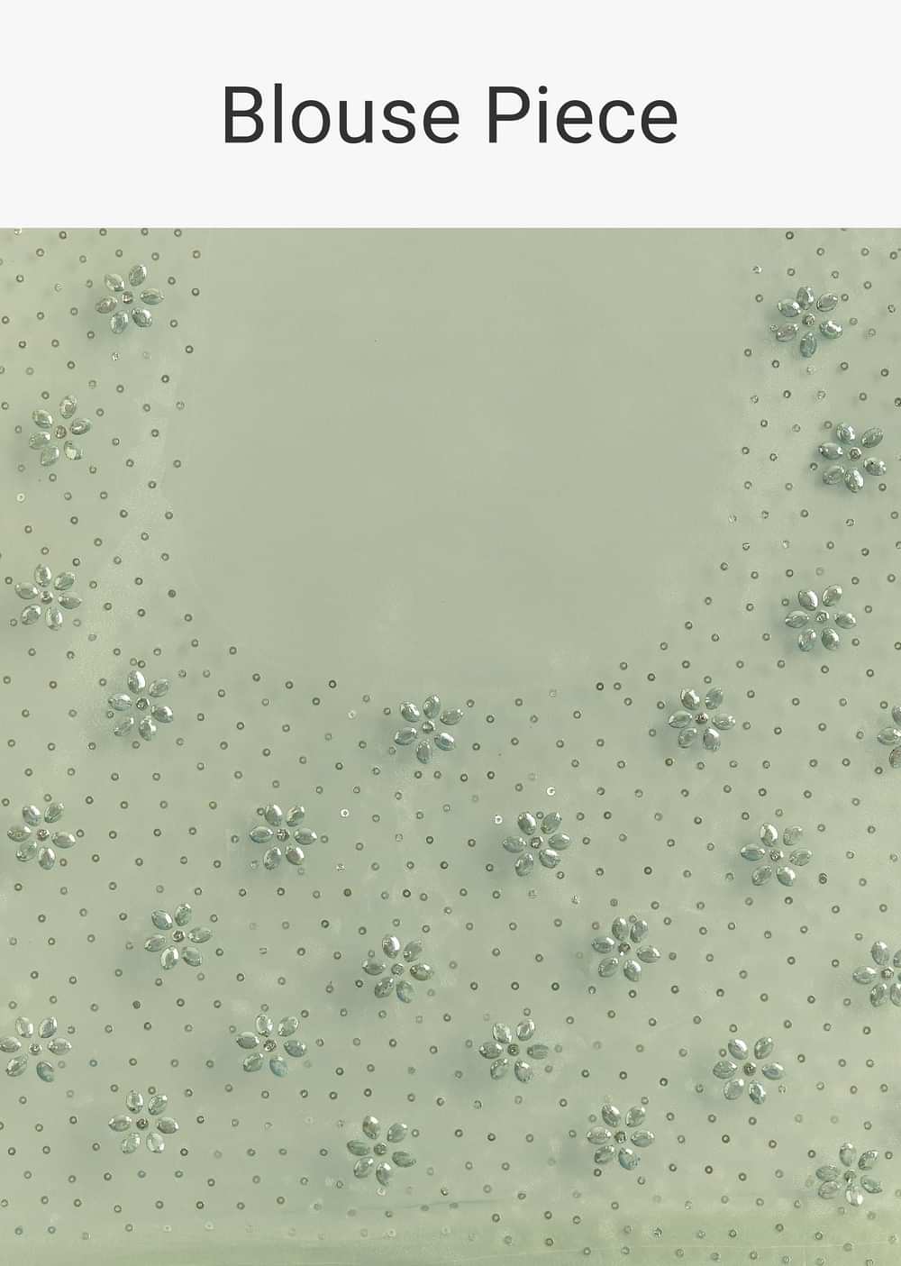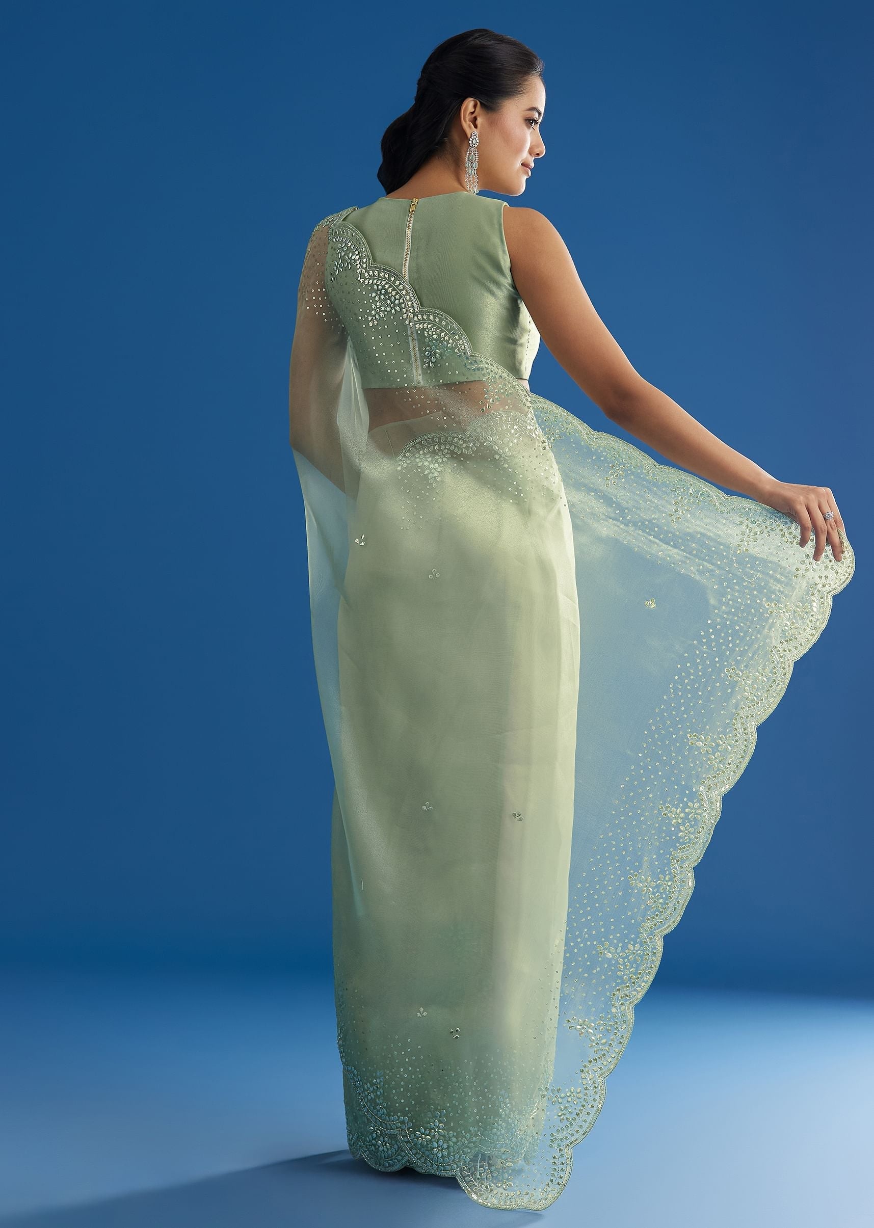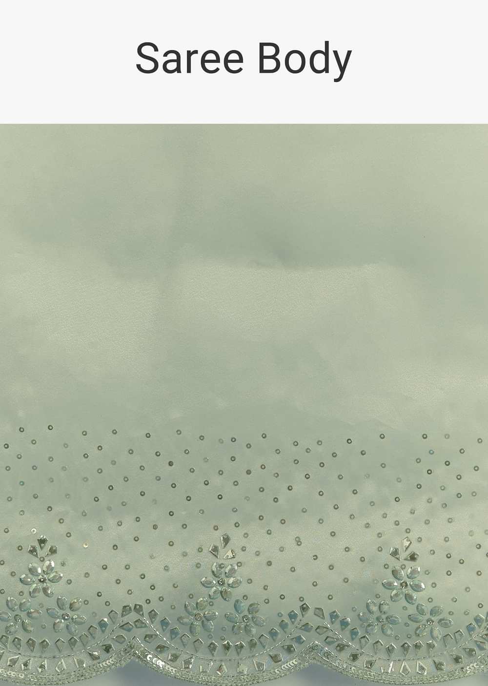 Green Glass Tissue Saree With All Over Cutdana And Sequins Embroidery