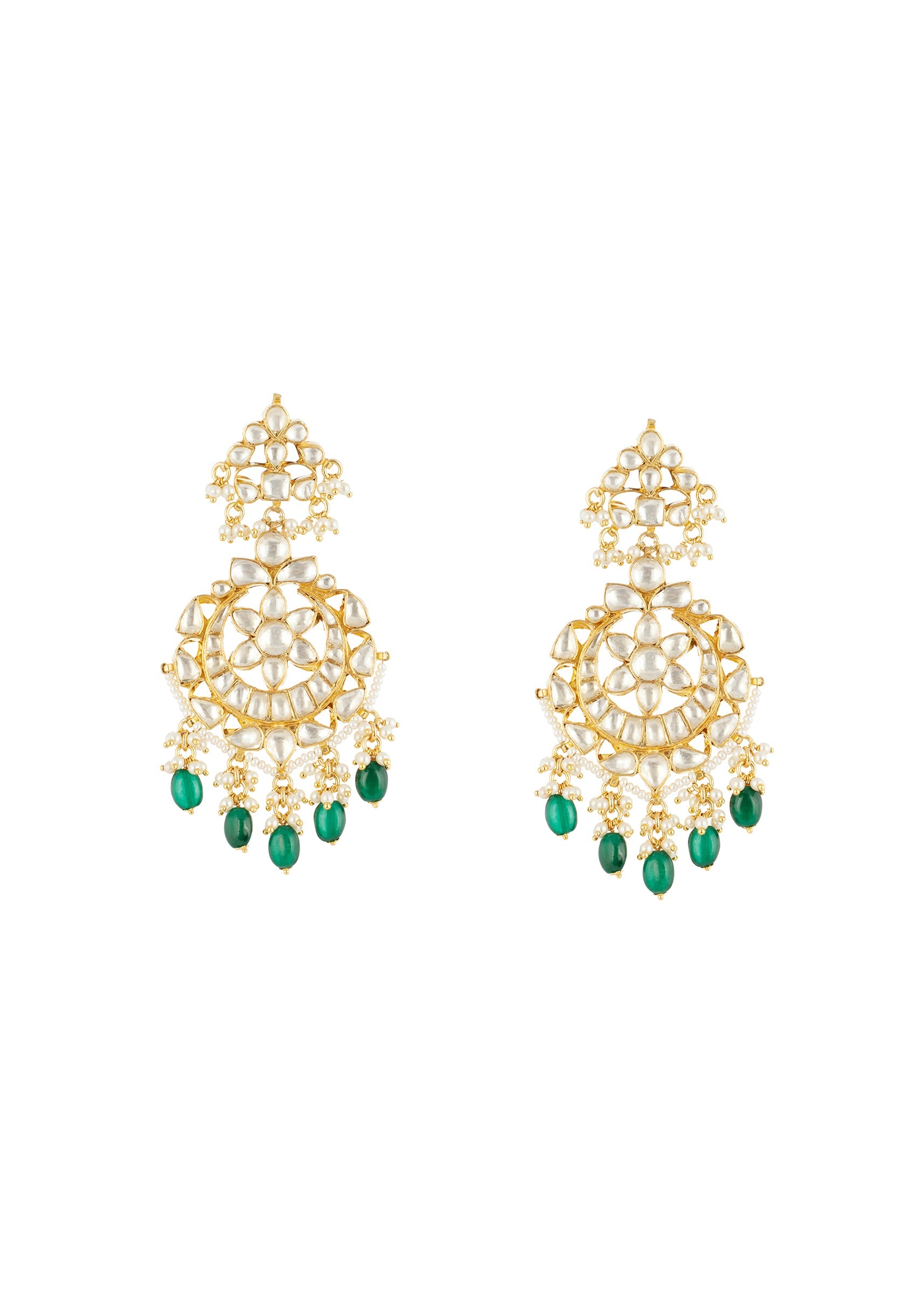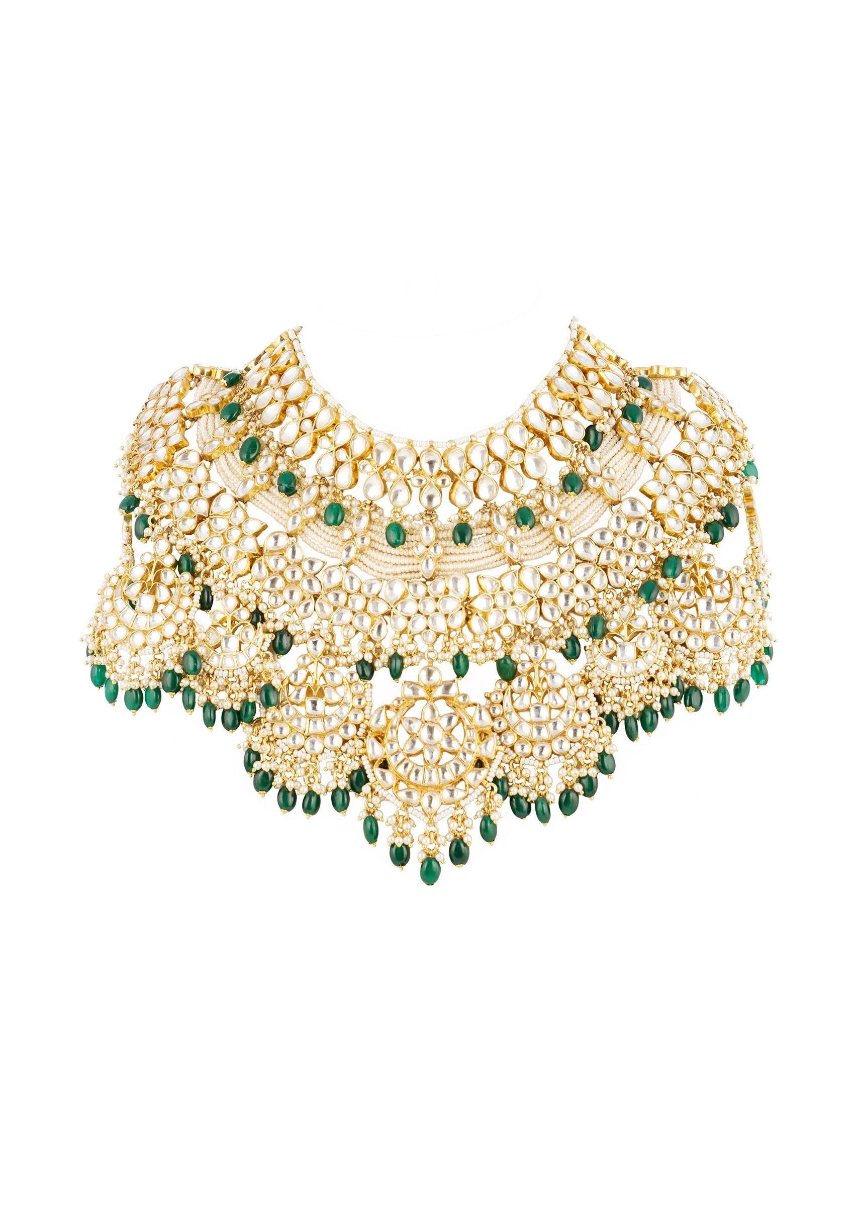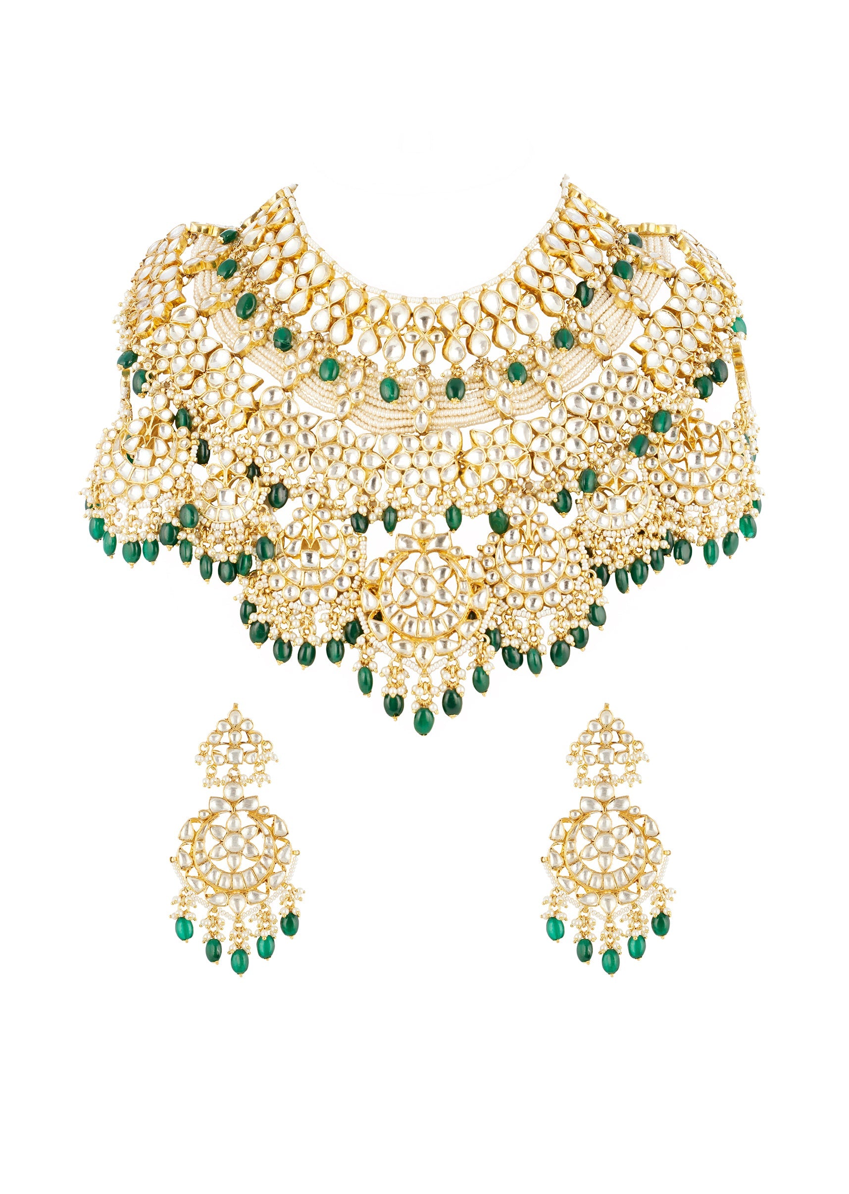 Green Gold Necklace Set With Intricate Kundan Details