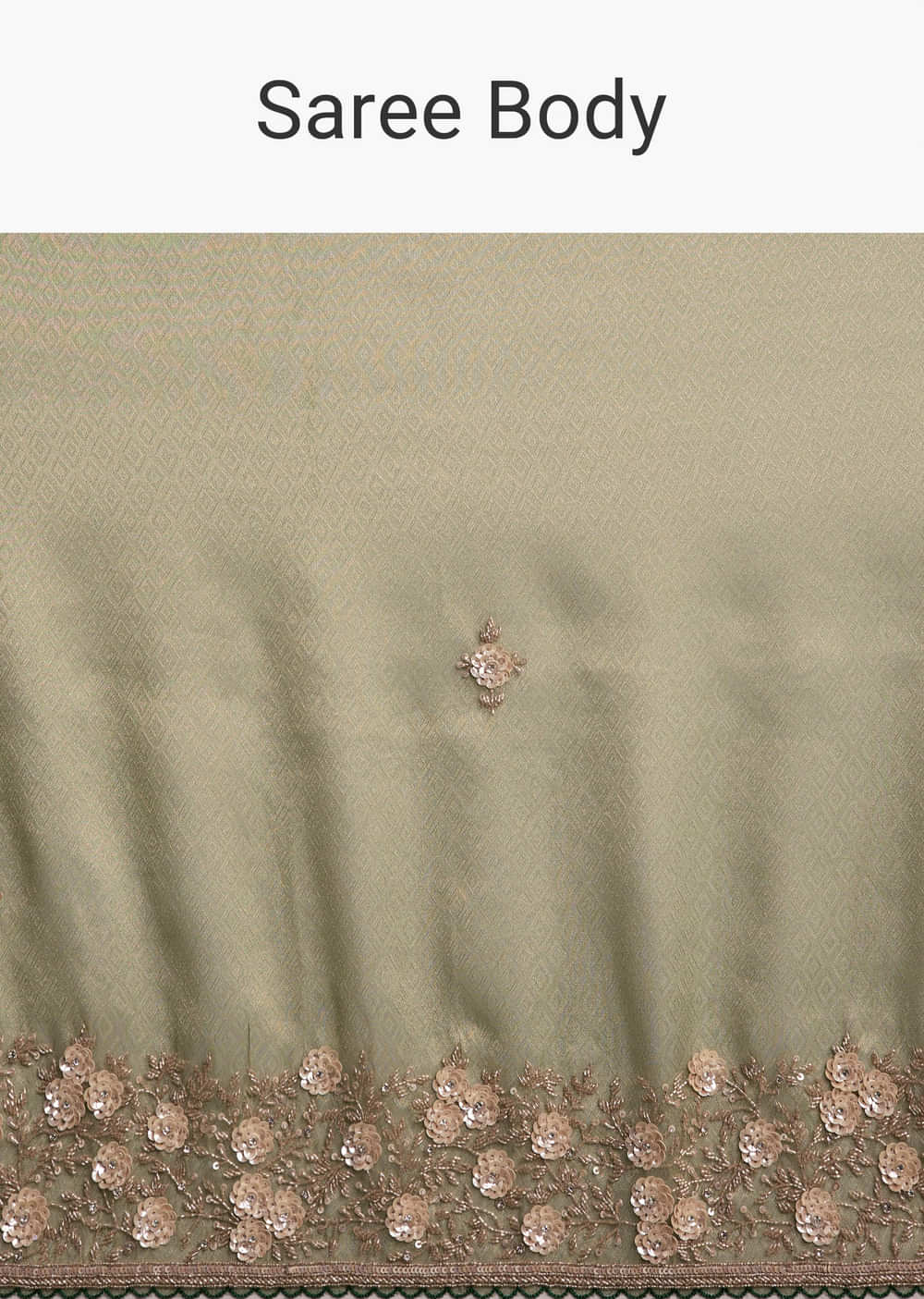 Green Jacquard Tissue Saree With Heavy Hand Embroidery