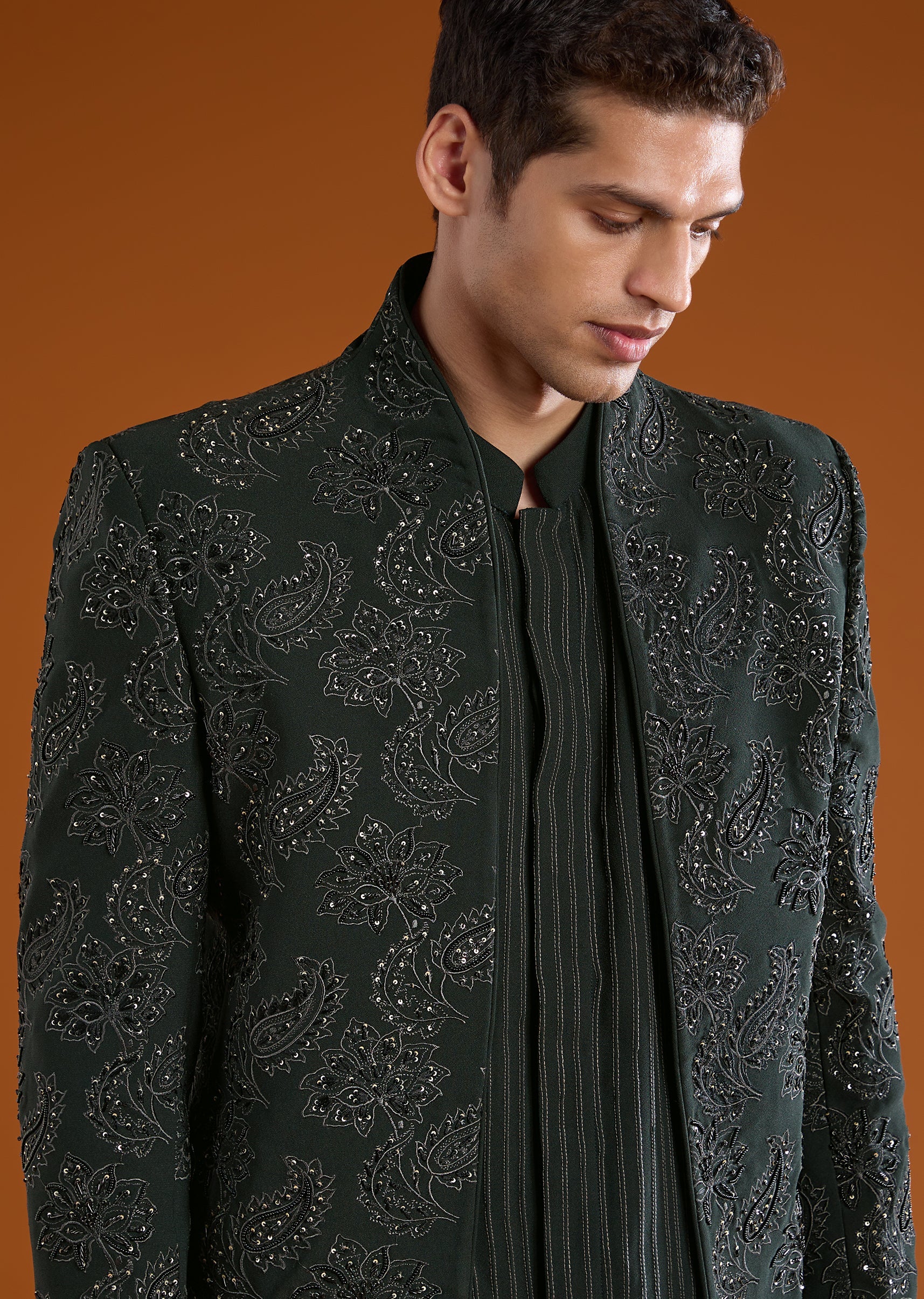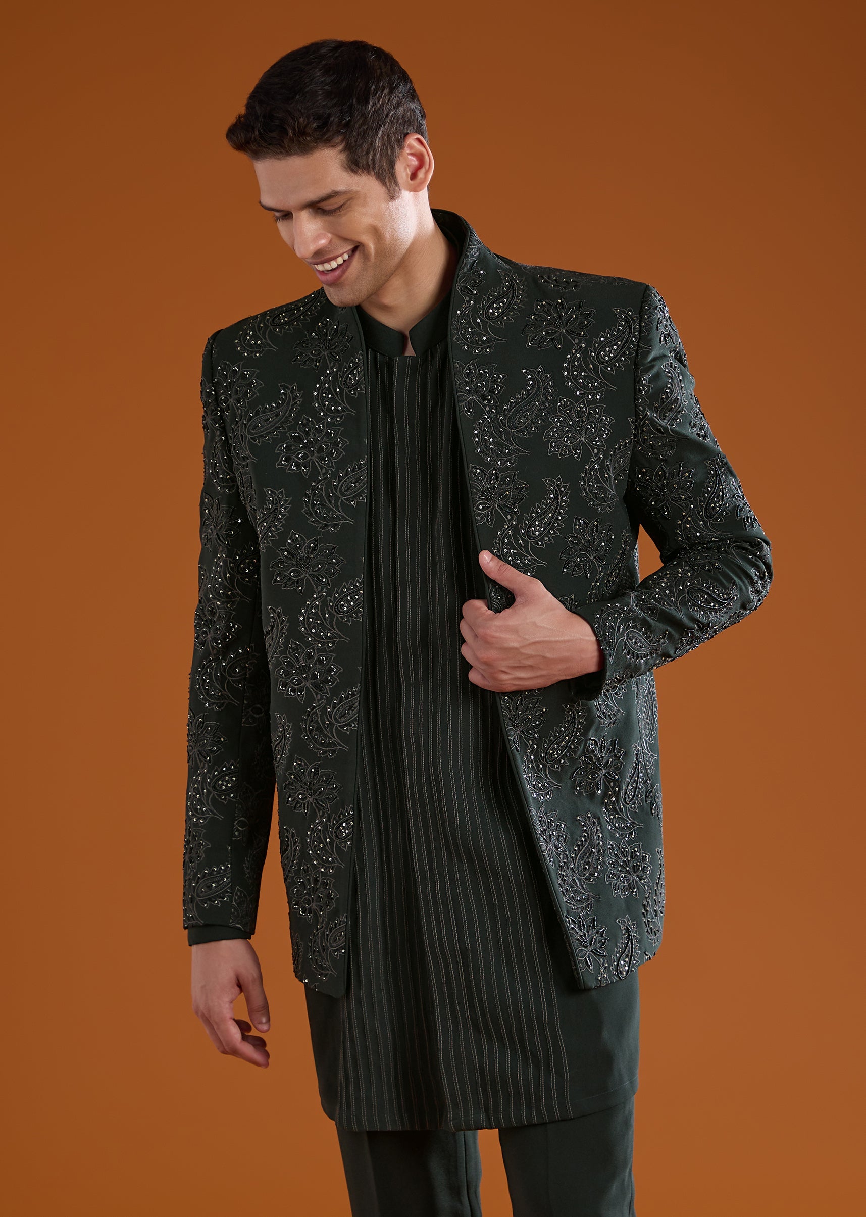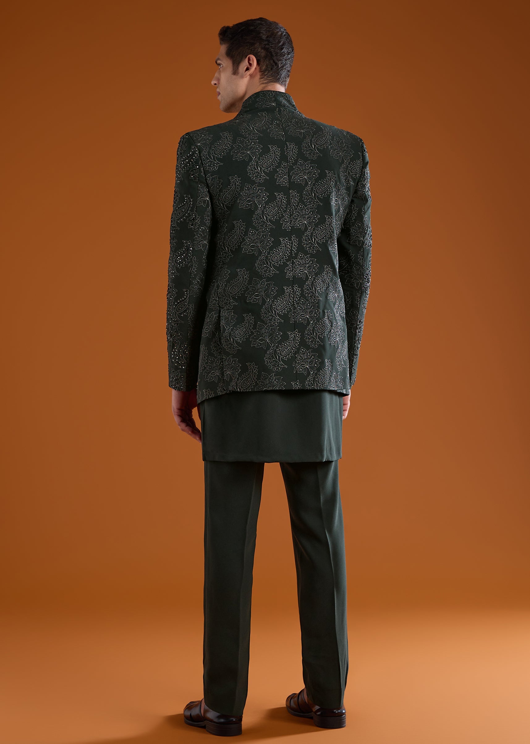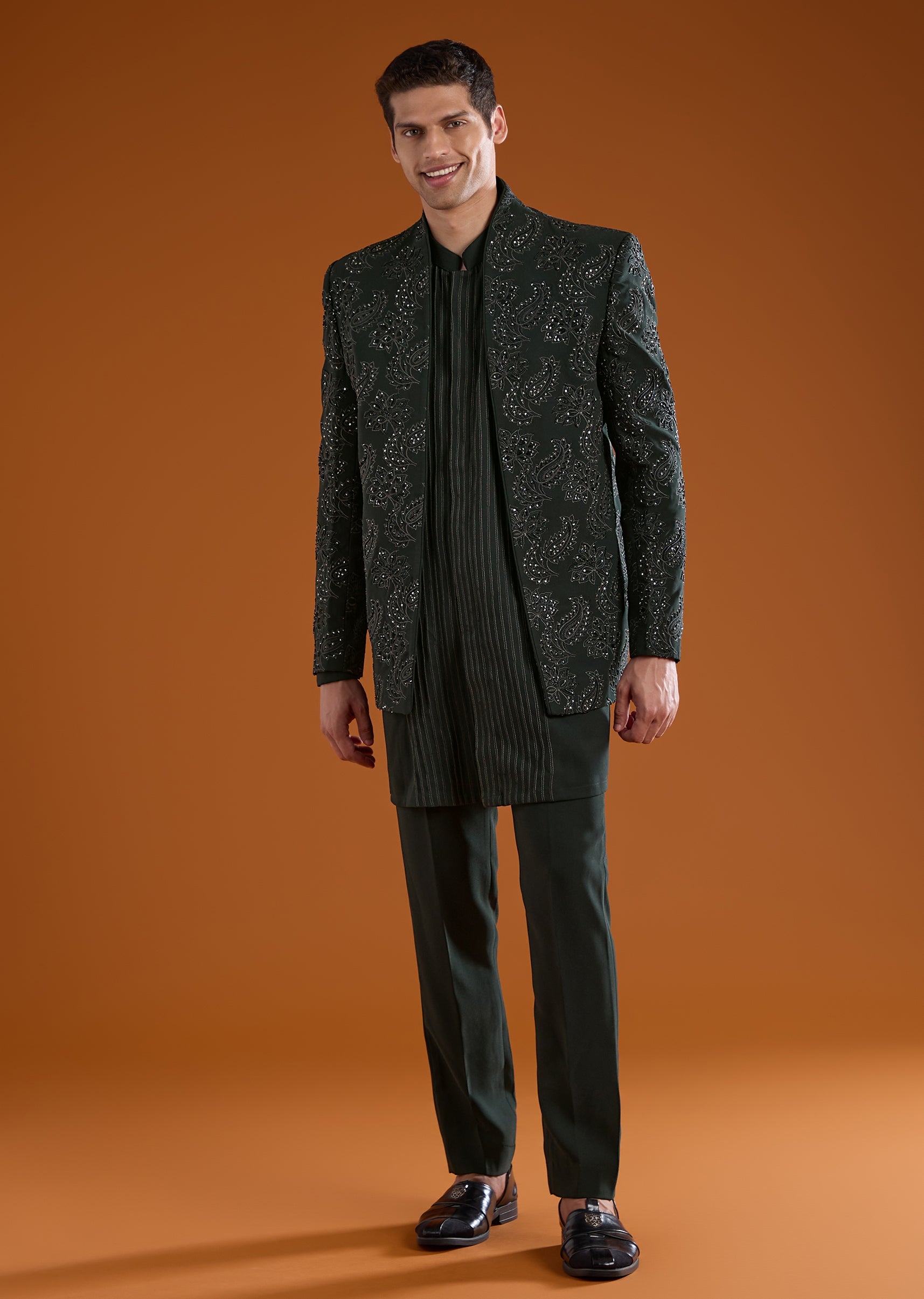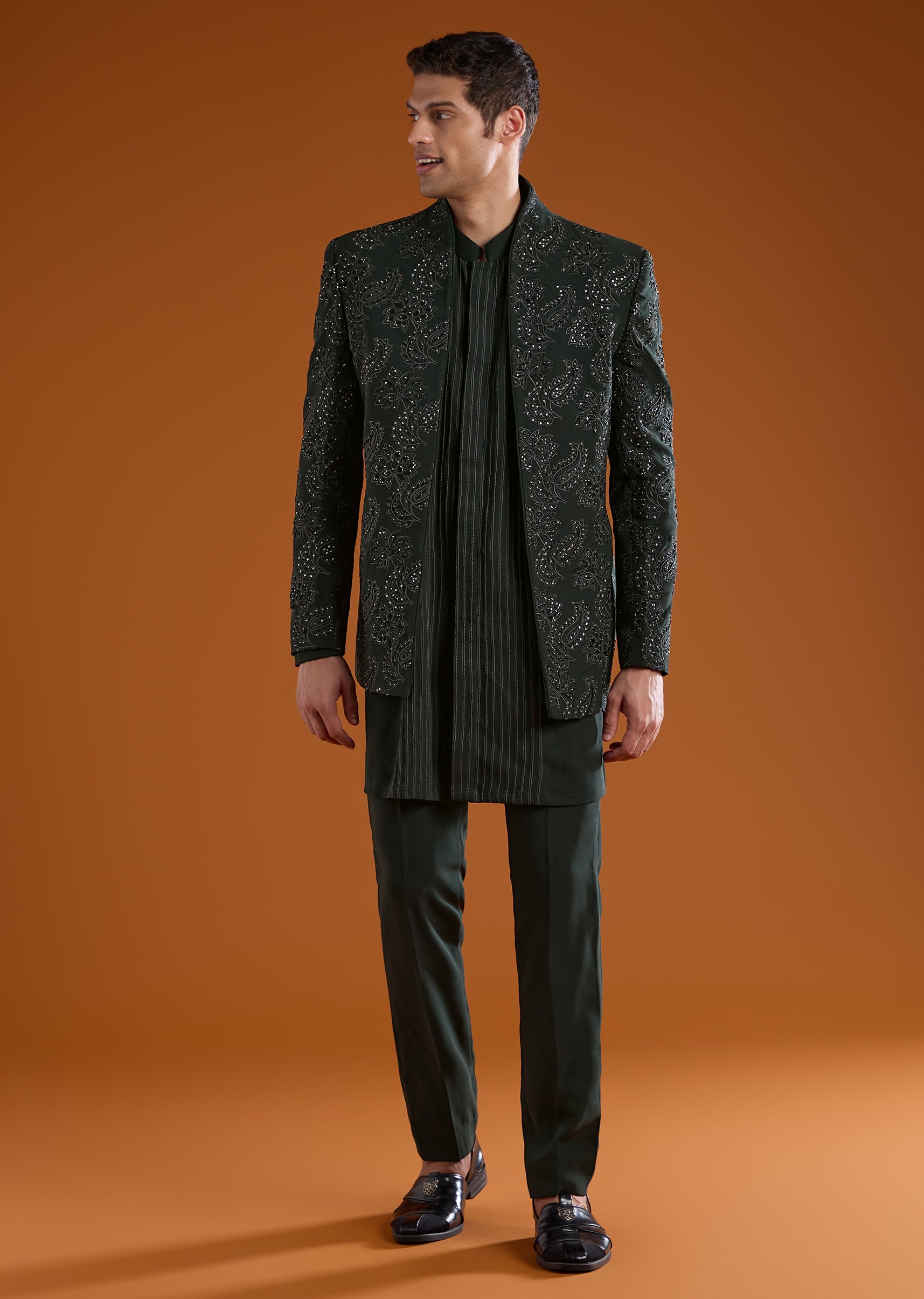 Green Jodhpuri Kurta Set with Sequin Work
